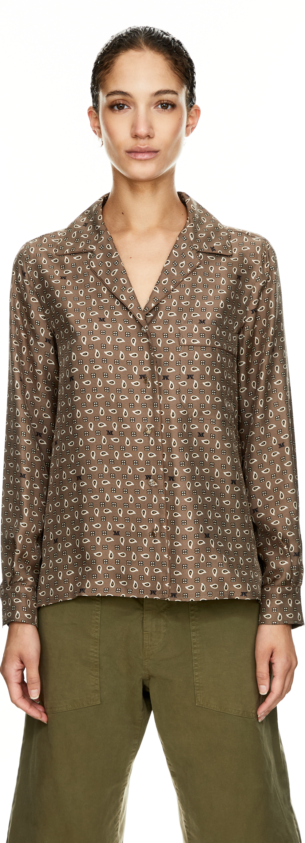 The 'Disco' blouse in brown by Max Mara is made from pure silk twill and impresses with its slim fit. The open bowling collar, the low-set sleeves with cuff and side button and the button placket create an elegant accent.