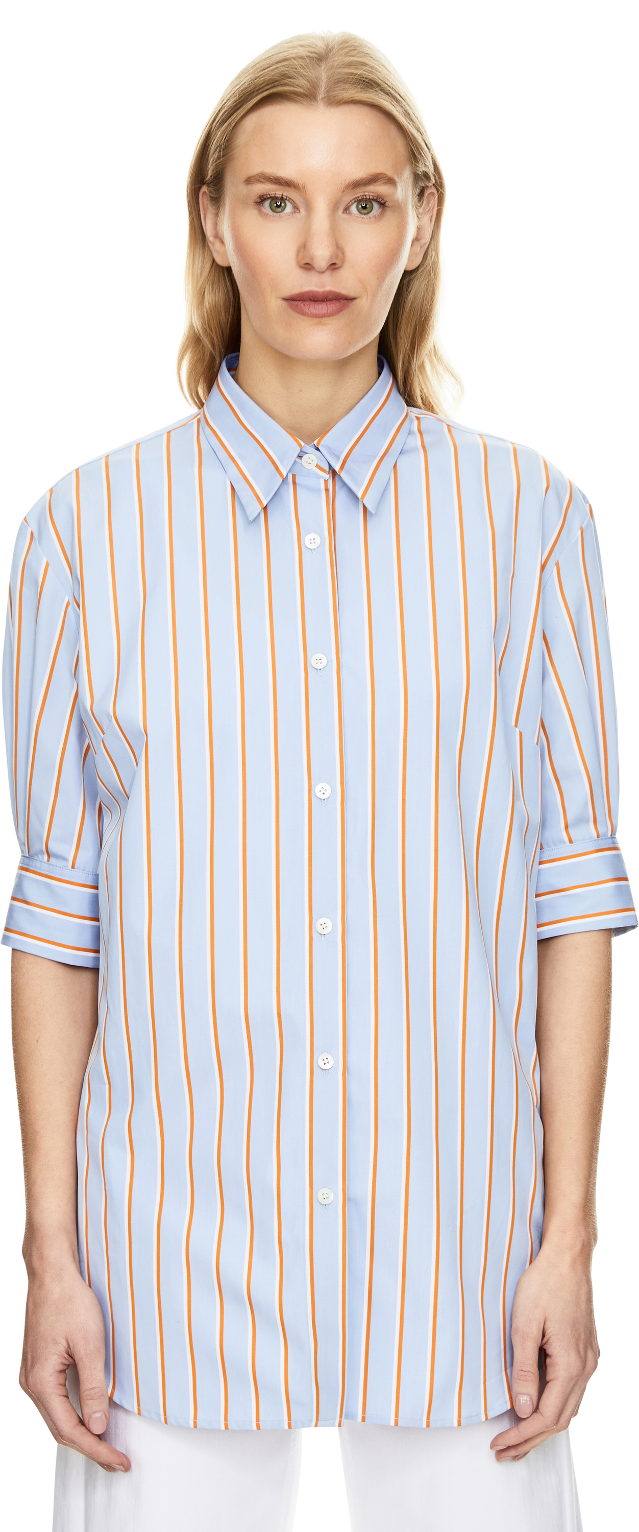 The 'Celindo' blouse in light blue by Dries Van Noten is made from pure cotton and impresses with its straight fit. The classic collar, full-length button placket, striped pattern and cuffs with button fastening give the blouse a summery, elegant look.