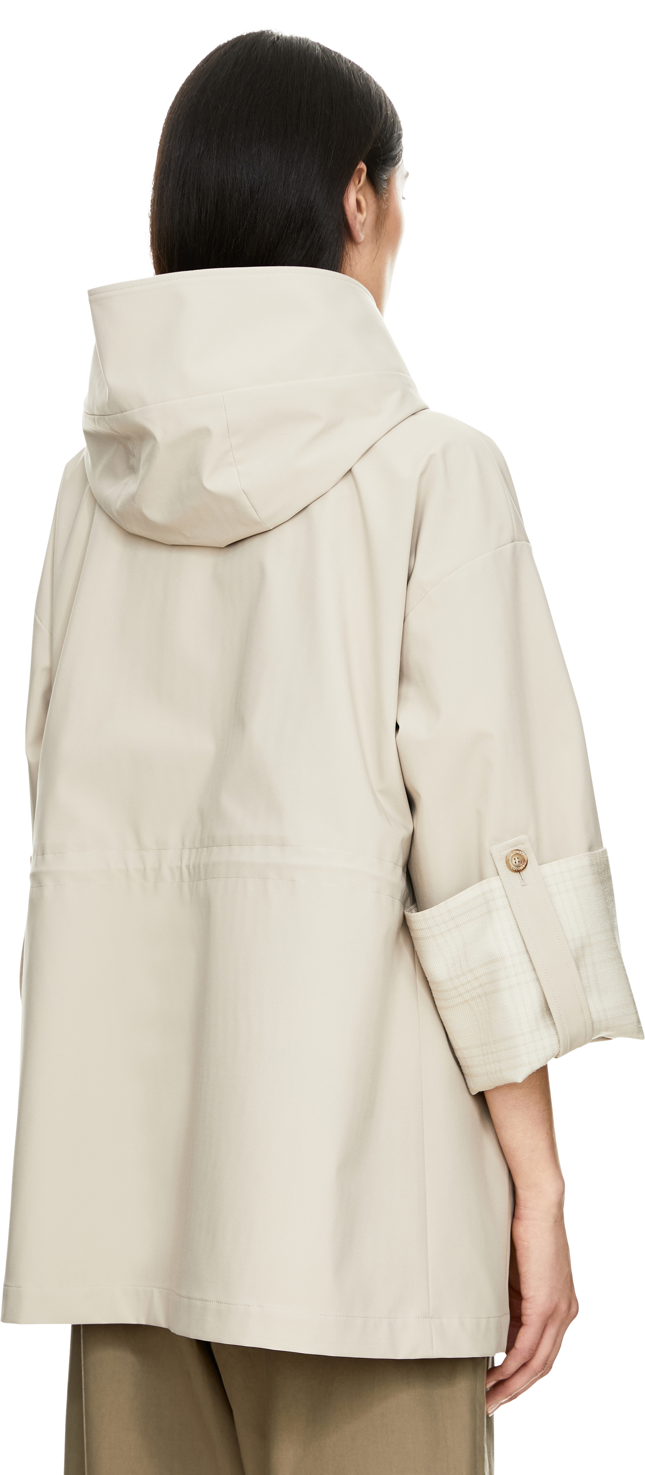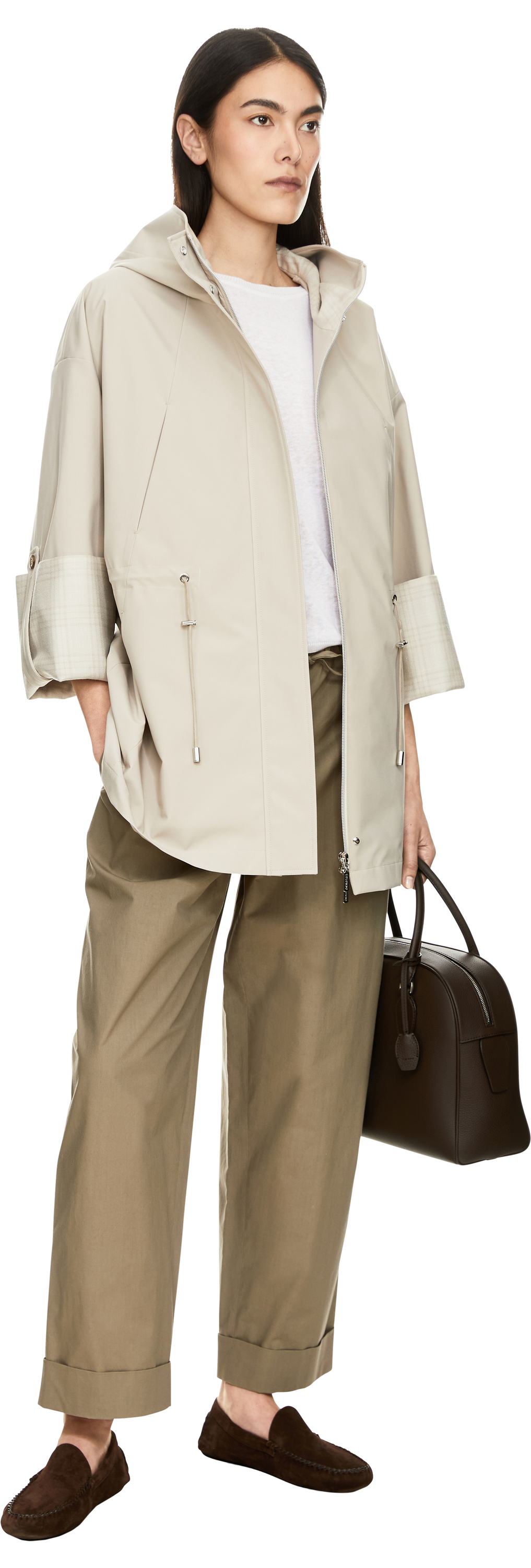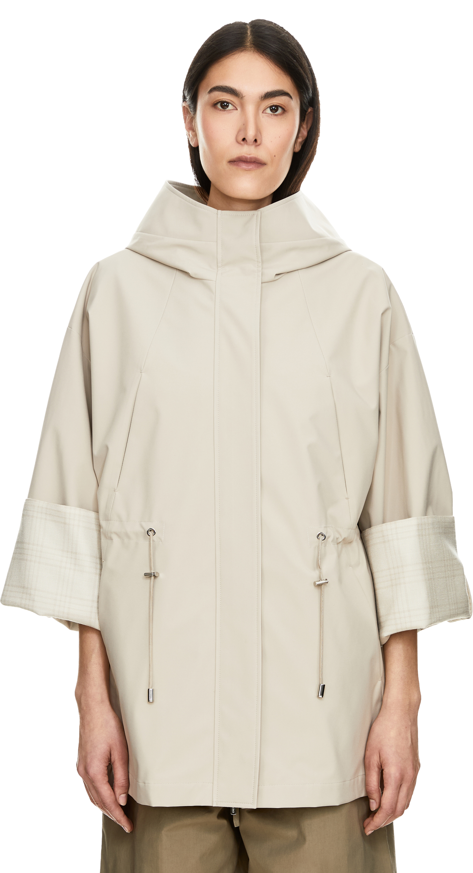 This parka in cream from Colombo is made from high-quality materials and impresses with its technical 20 KNOTS fabric, which is lined with cashmere. The hood, concealed zip with press studs, two side pockets and adjustable waist drawstring emphasise the high-quality design.