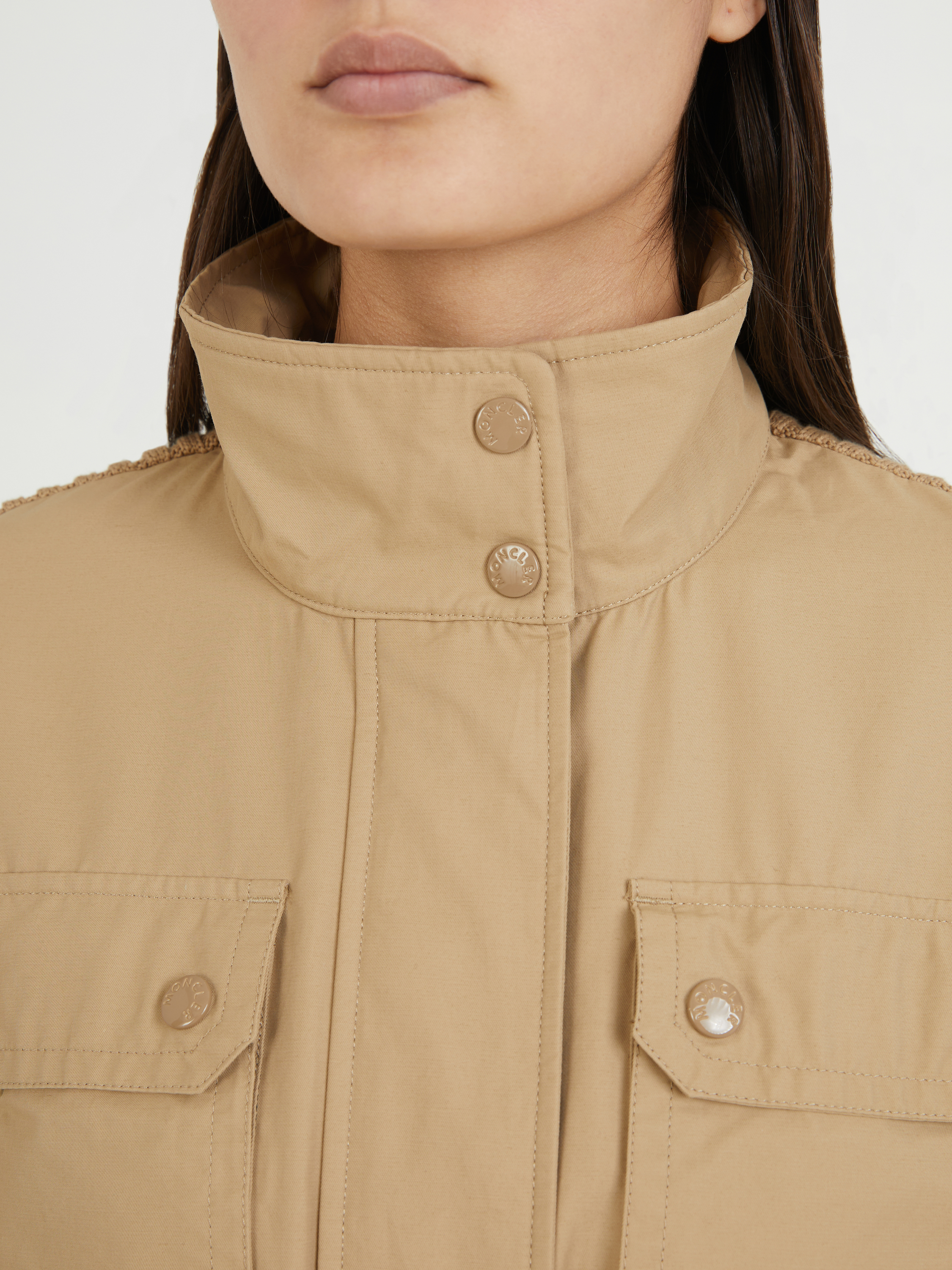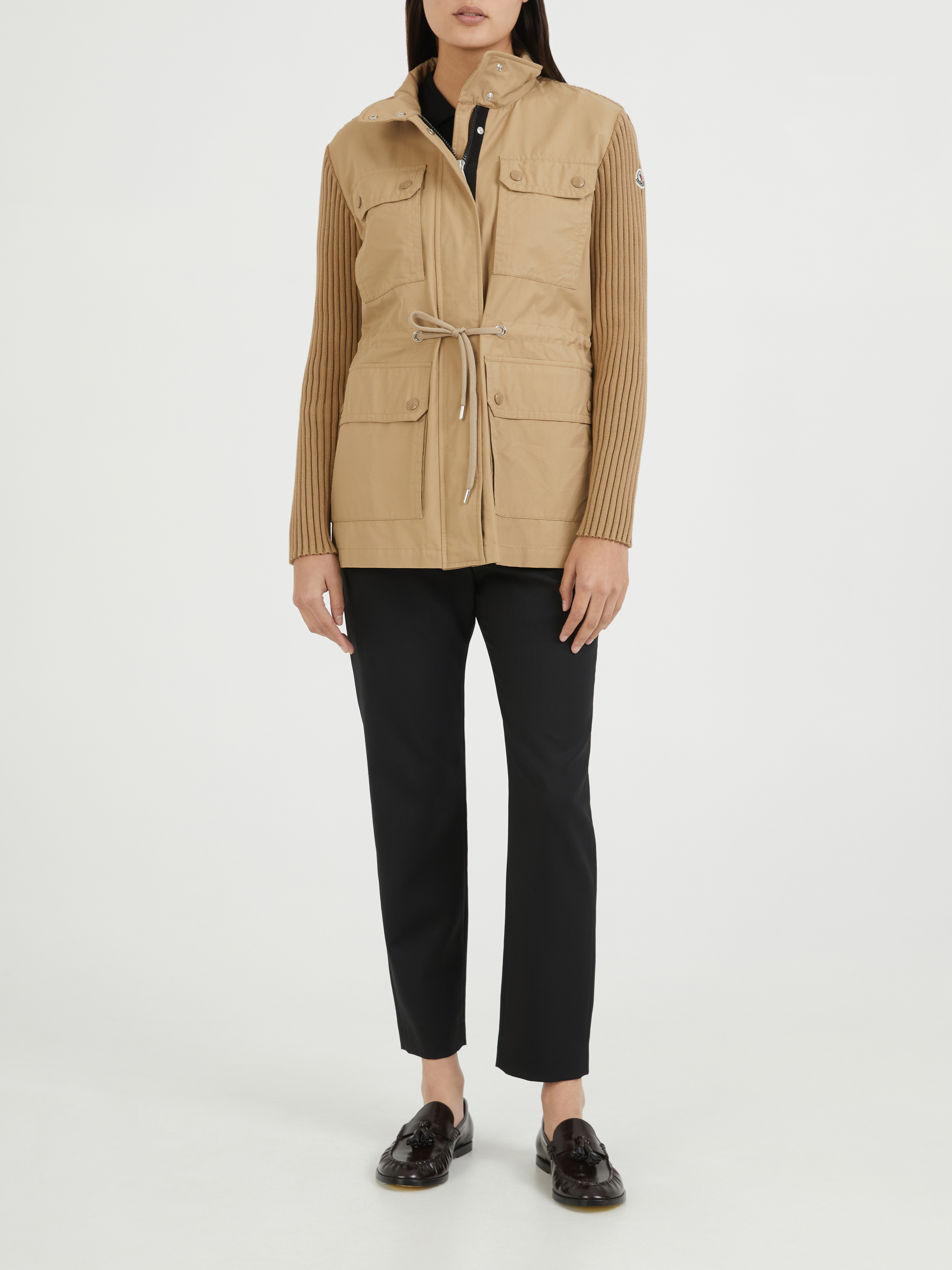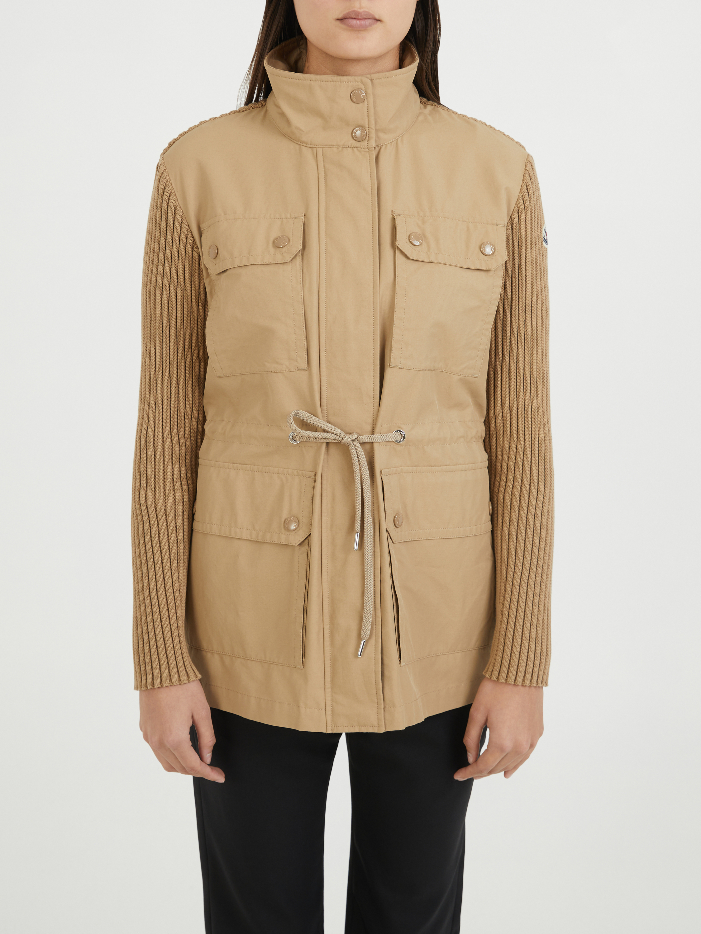 Parka jacket with knitted insert Beige