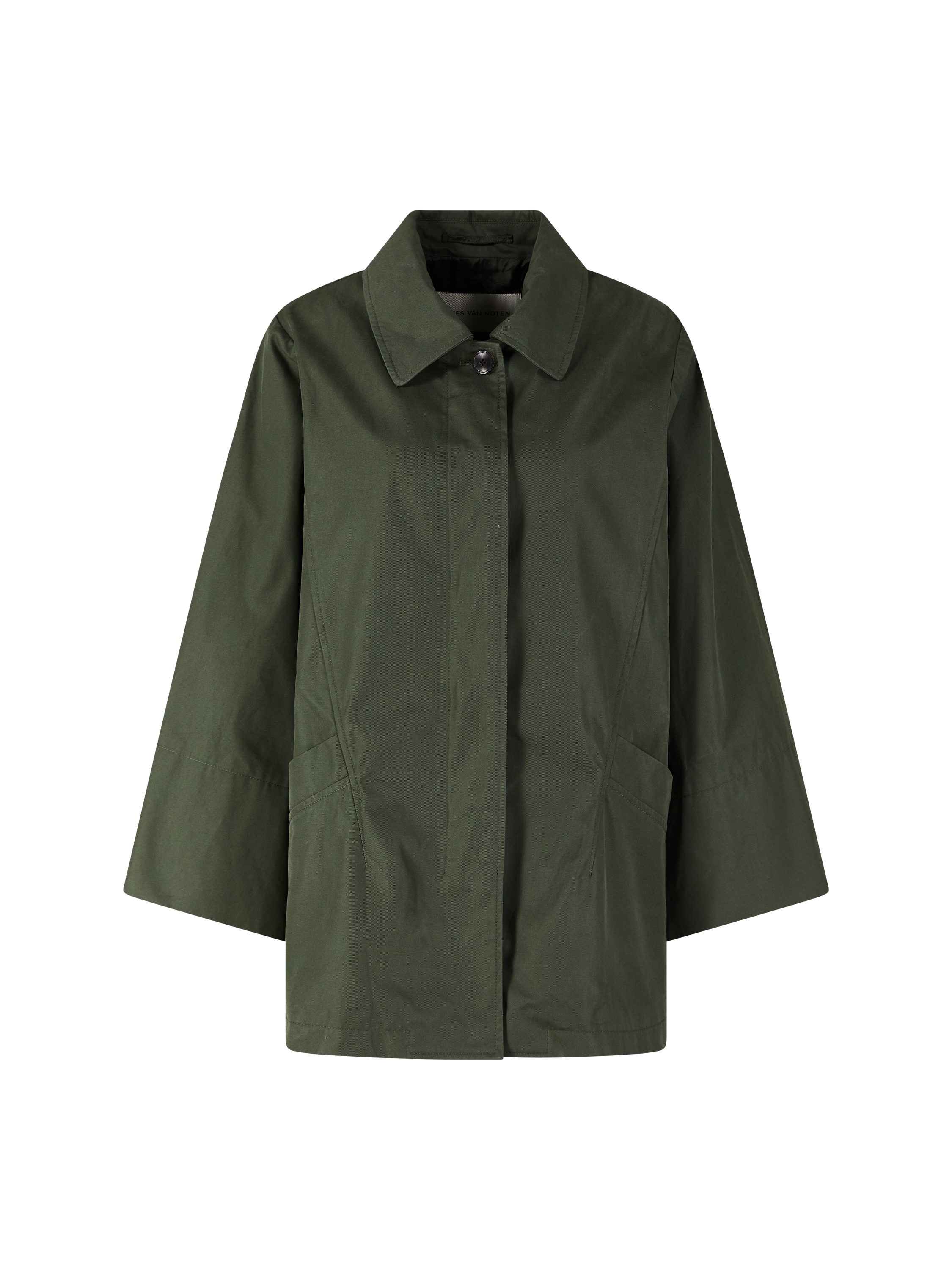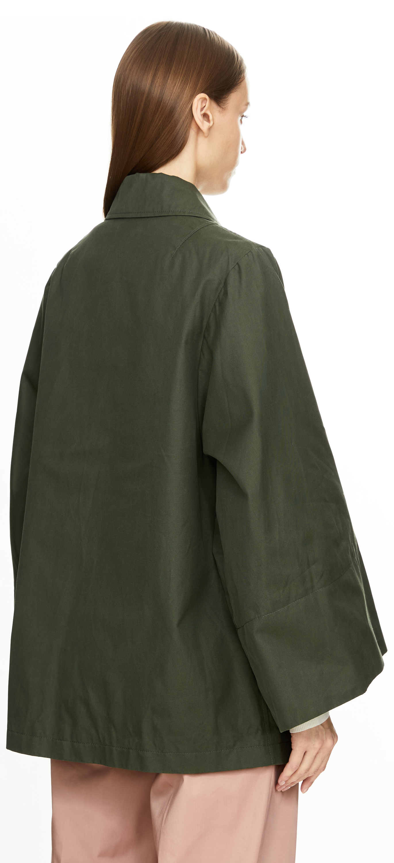 The 'Ricce' parka in khaki by Dries van Noten is made from high-quality cotton and impresses with its timeless design. The wide sleeves emphasise the casual silhouette of the style. Two slit pockets on the front offer practical storage space and harmoniously round off the look.