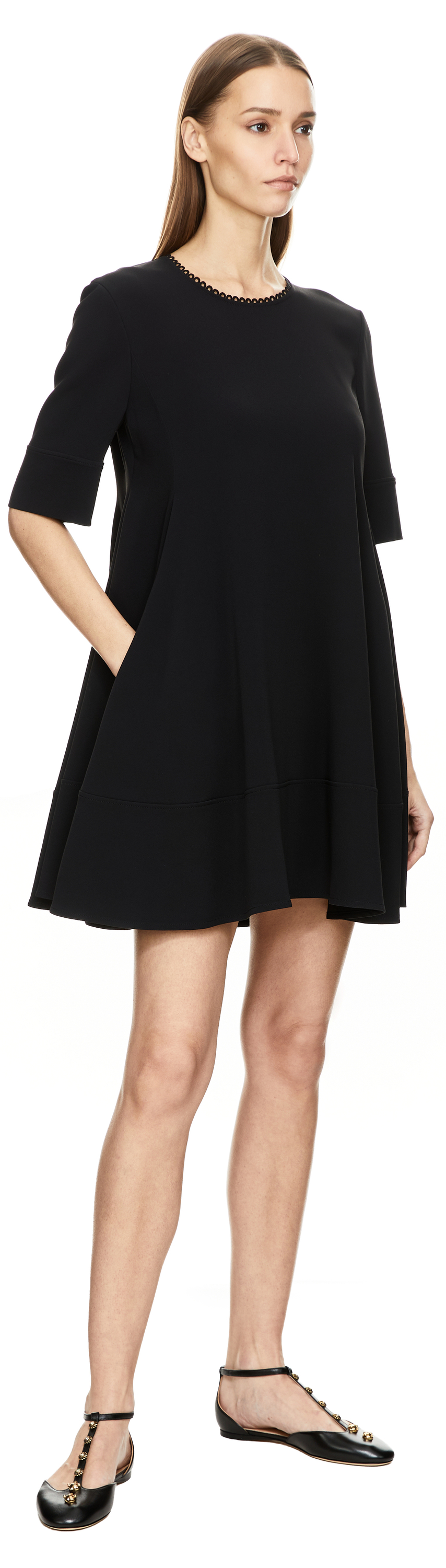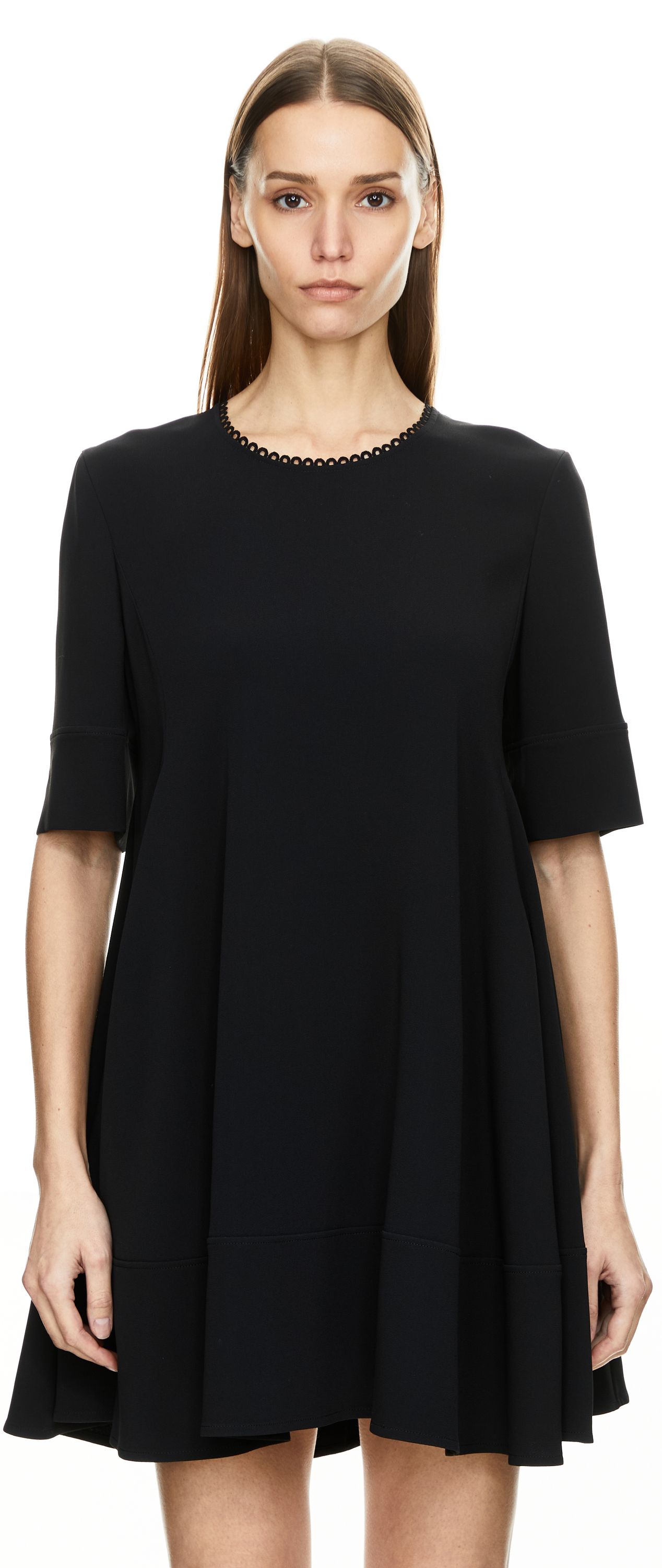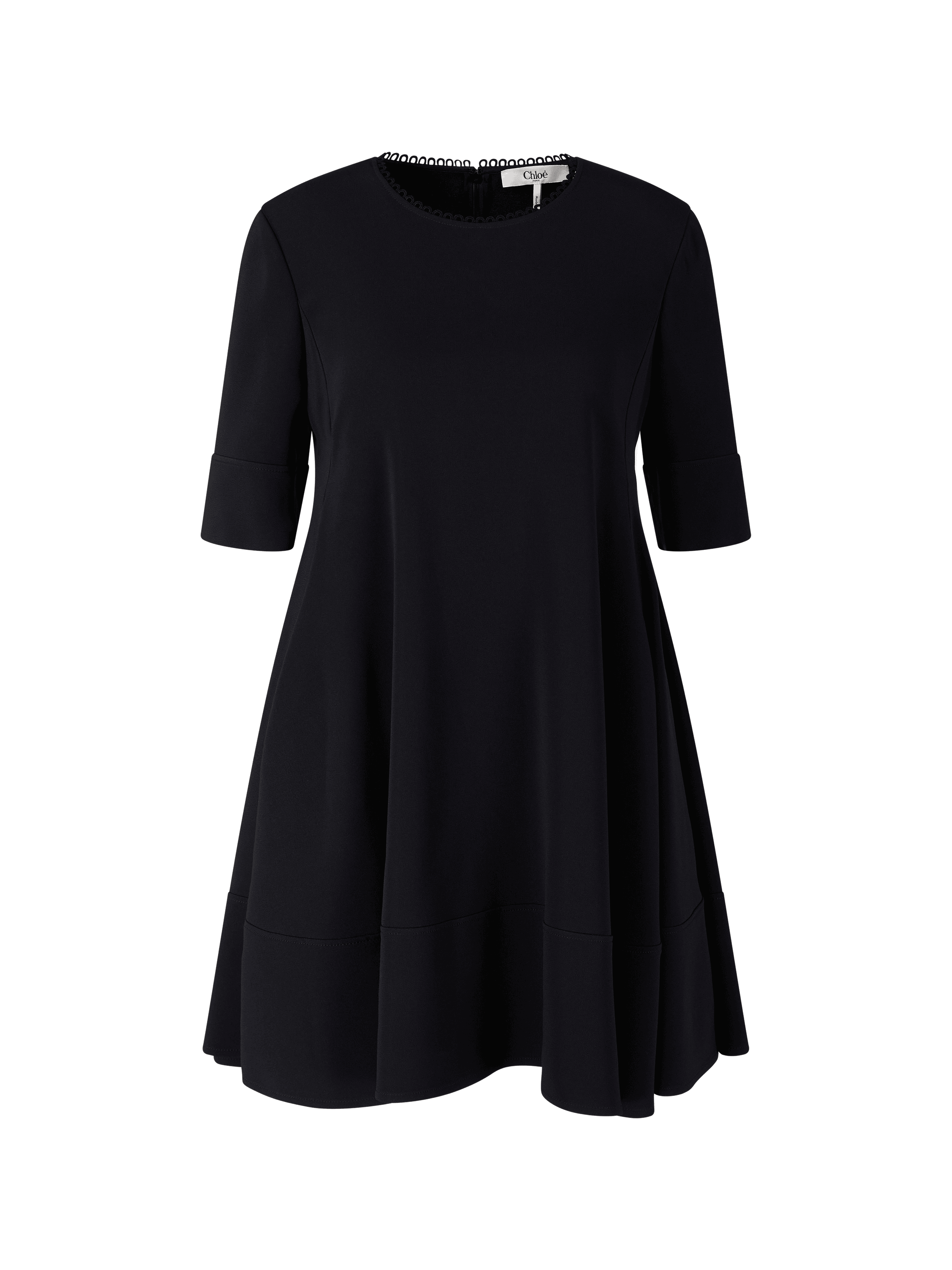 This black dress by Chloé is made from high-quality materials and features a flared silhouette that creates an elegant and feminine line. The round neckline, short sleeves and fine box pleats harmoniously round off the design. The back zip and two concealed slit pockets at the front combine style with functionality.
