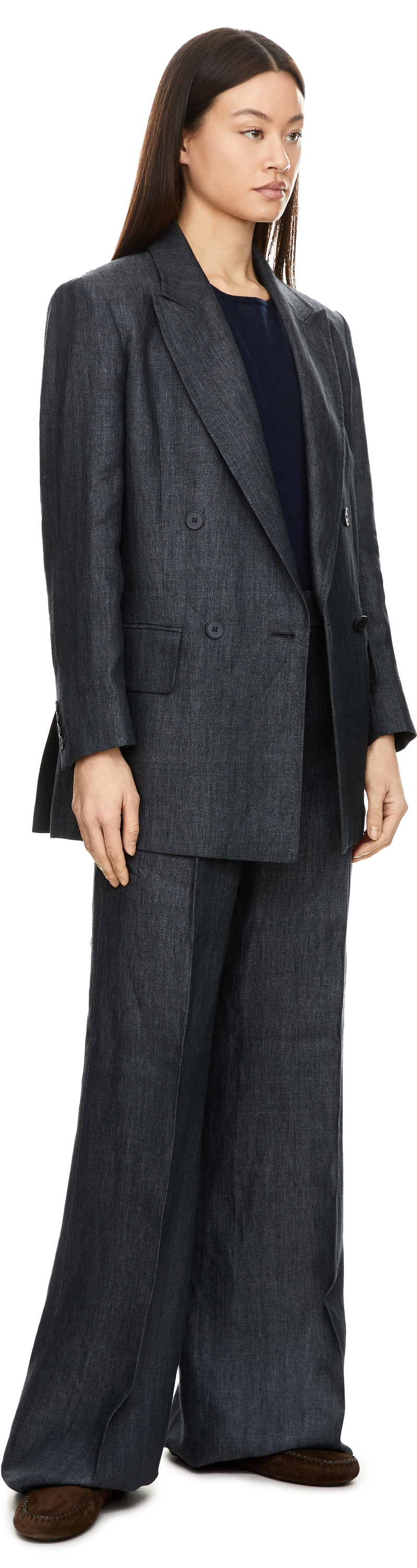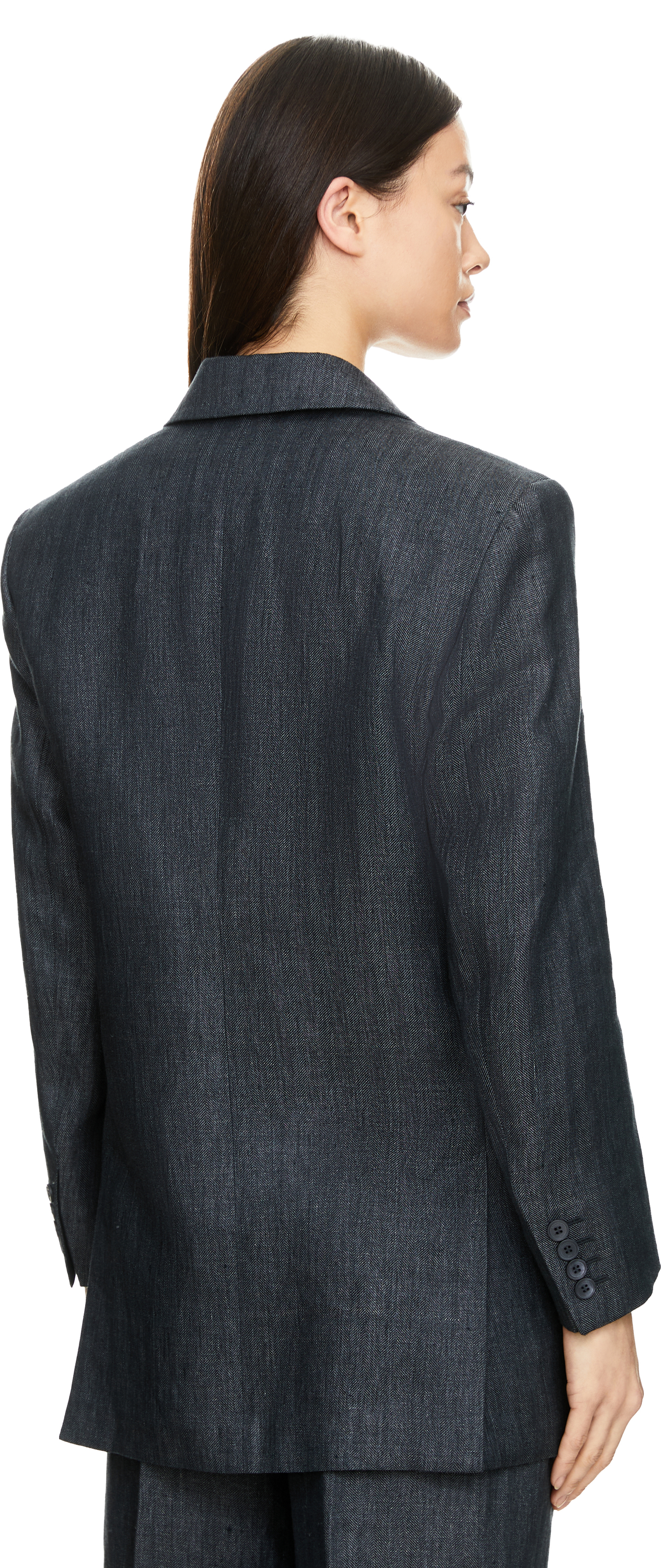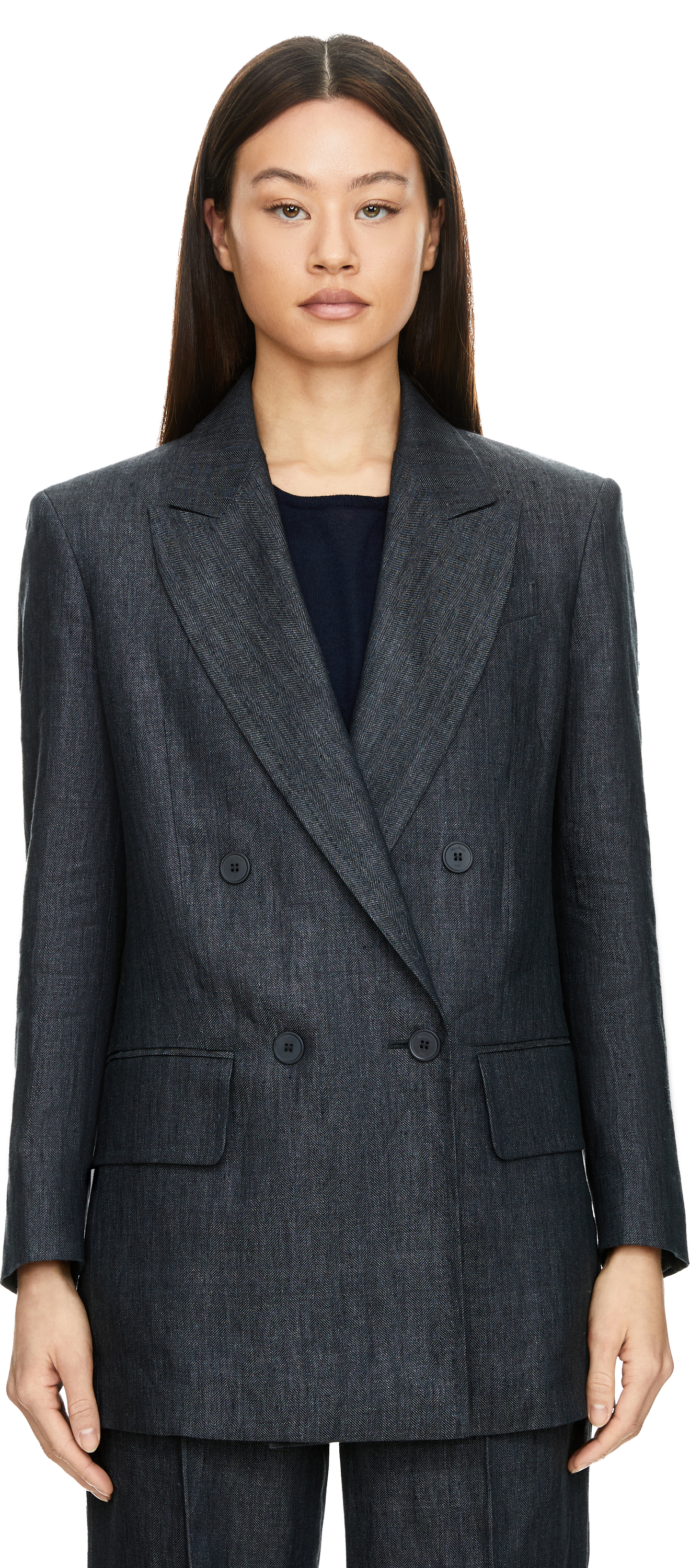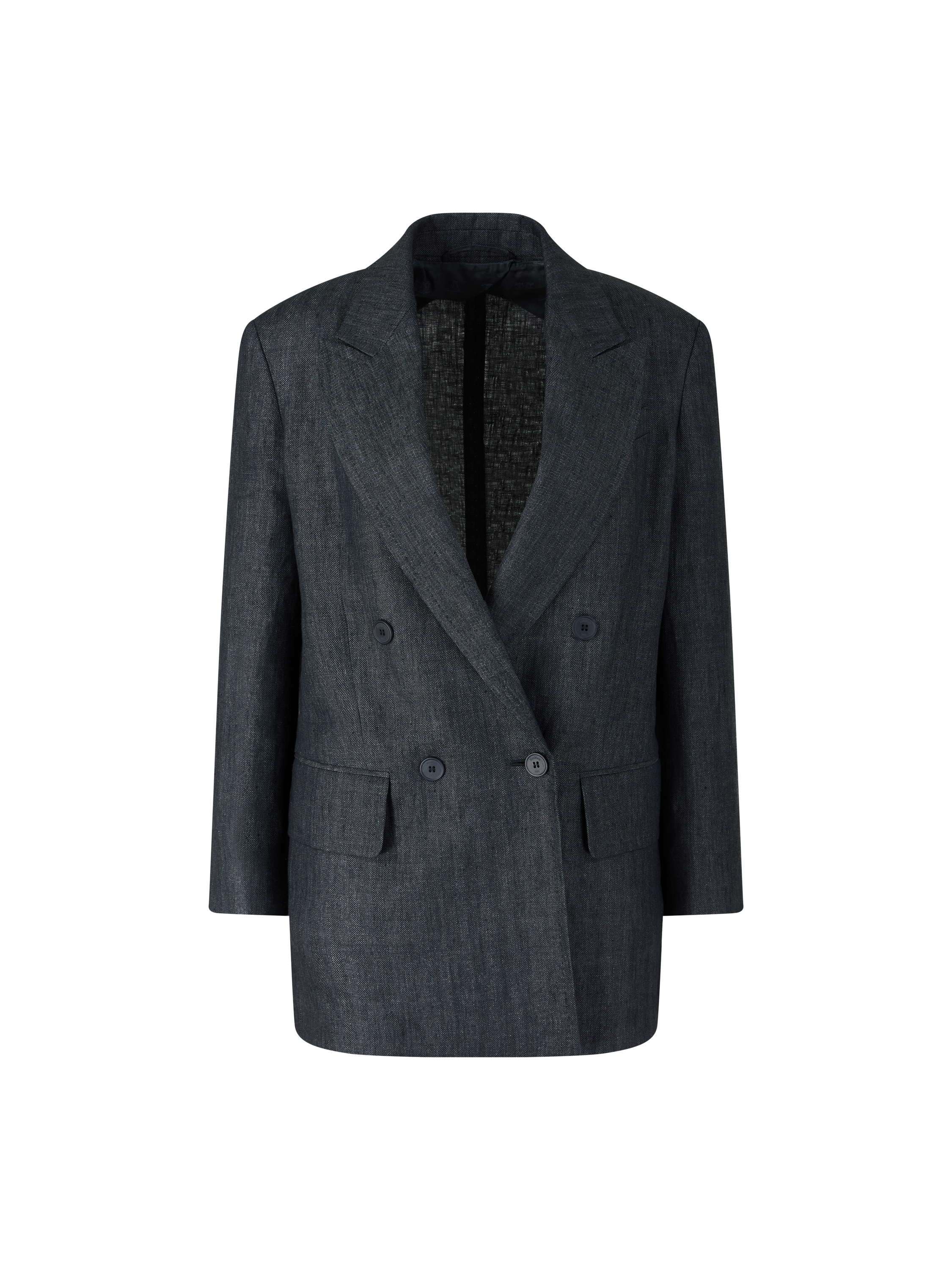 The 'Olimpia' blazer in grey by Max Mara is made from high-quality flax linen and impresses with its structured pattern. The model is stylishly complemented by a double-breasted button placket with embossed logo and classic flap pockets. The high-quality flax linen is particularly durable, breathable and its cooling properties make it pleasantly light to wear on warm days