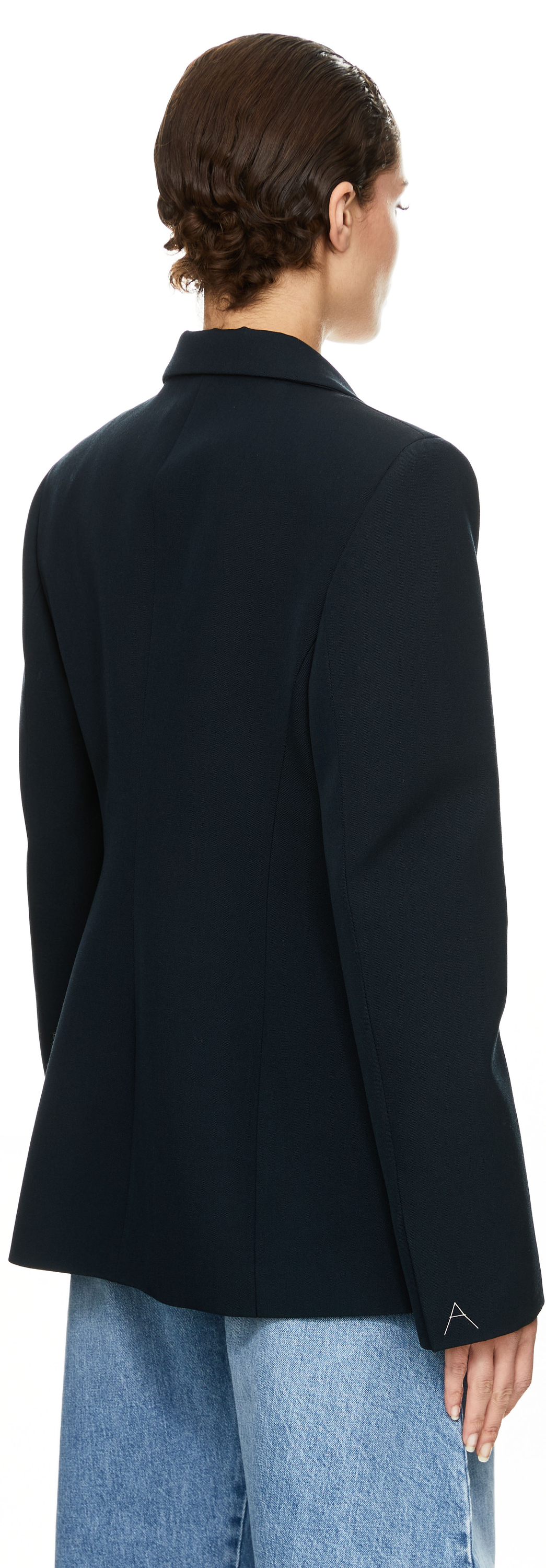 This navy blue blazer by Alaïa is made from high-quality virgin wool and impresses with its tailored fit. The notched lapel collar, the centre back seam and the double-breasted button placket ensure a harmonious finish.