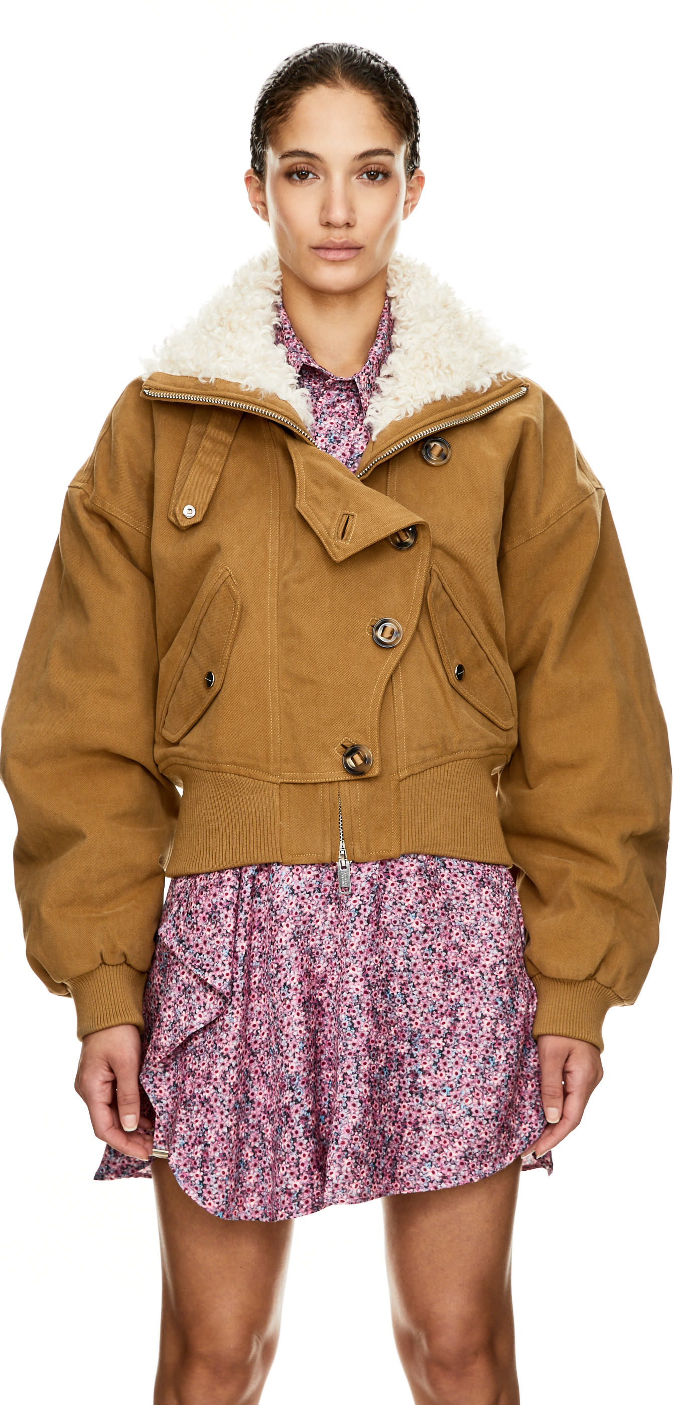 The 'Oana' jacket in camel by Isabel Marant is made from high-quality cotton and features an oversized cut. The stand-up collar with press stud placket, the long sleeves with pleated inserts at the elbows and the dropped shoulders make this style stand out.