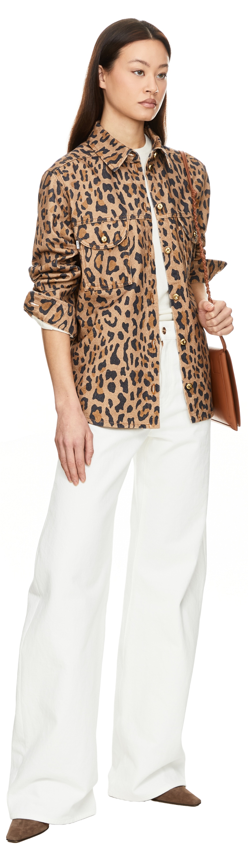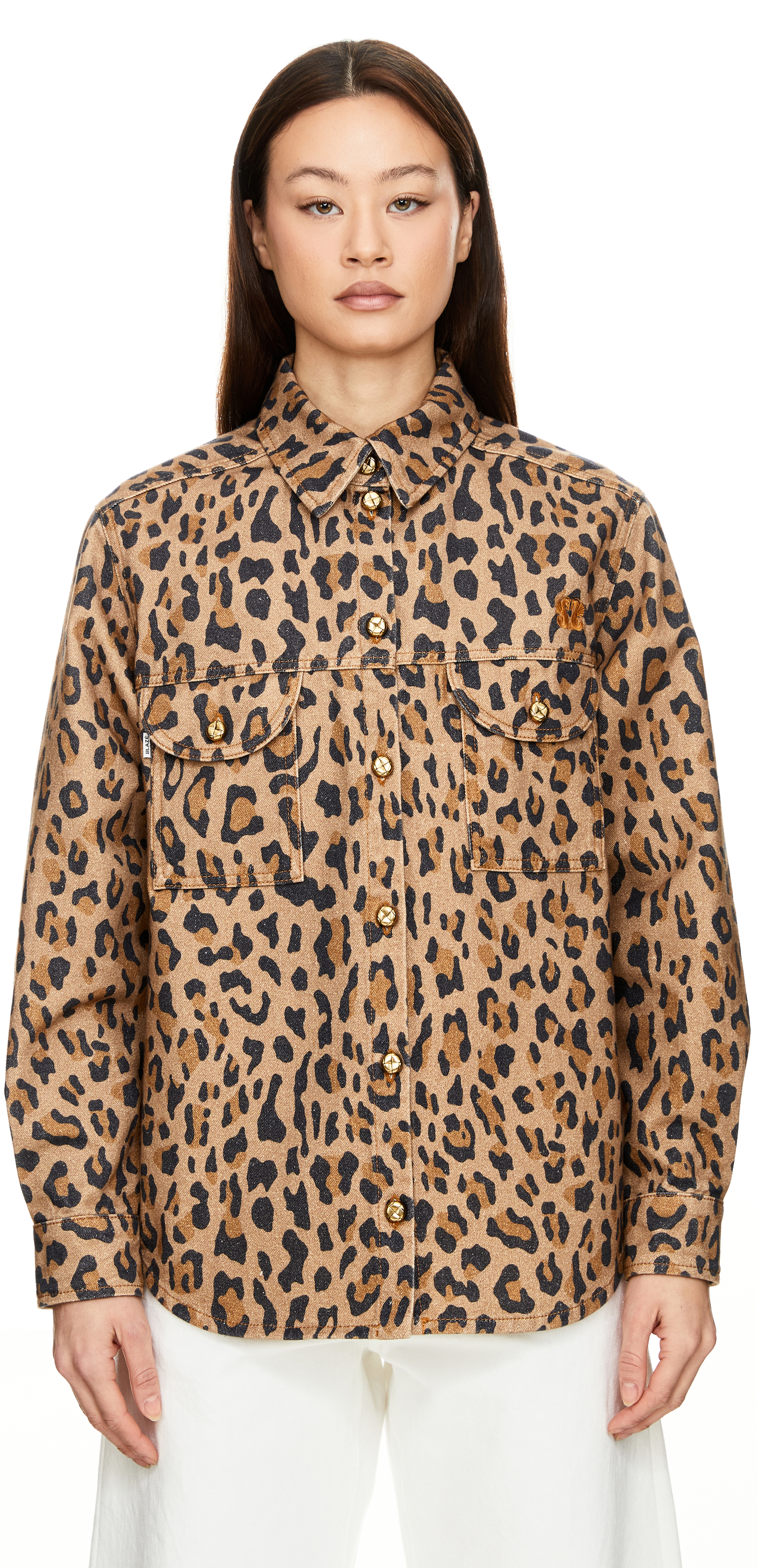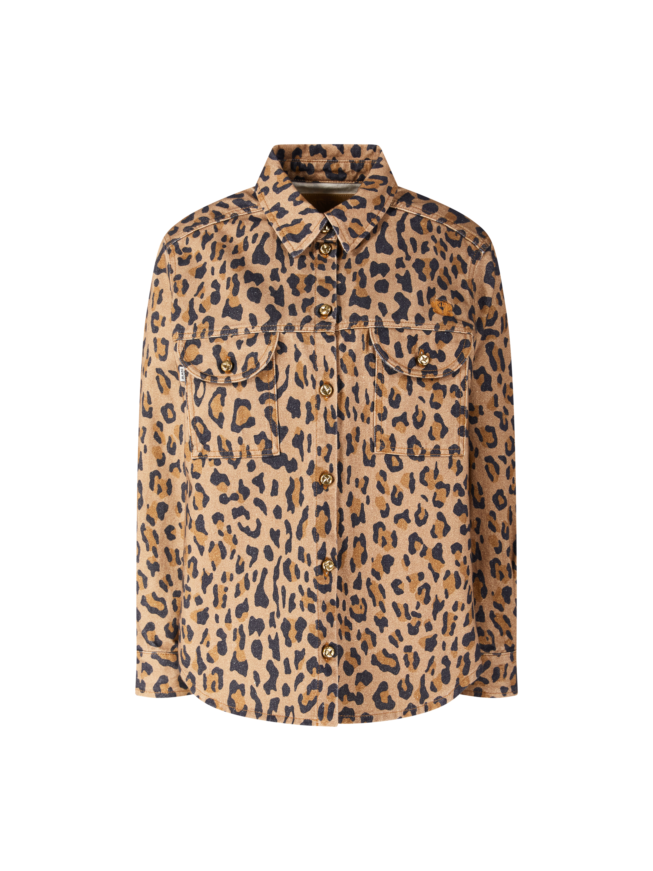 The 'Simba' jacket in beige from Blazé Milano is made from pure cotton and stands out with its modern leopard pattern. The loose fit emphasises the contemporary design, while gold-coloured buttons and the tonal logo embroidery on the chest add stylish highlights.