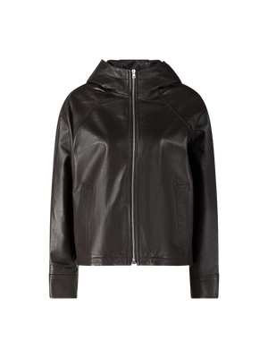 This brown jacket from Yves Salomon is made from high-quality lambskin leather and boasts a modern design. The hood and raglan sleeves give the style a sporty touch. The extended back with draping ensures a flowing silhouette and stylishly completes the style.