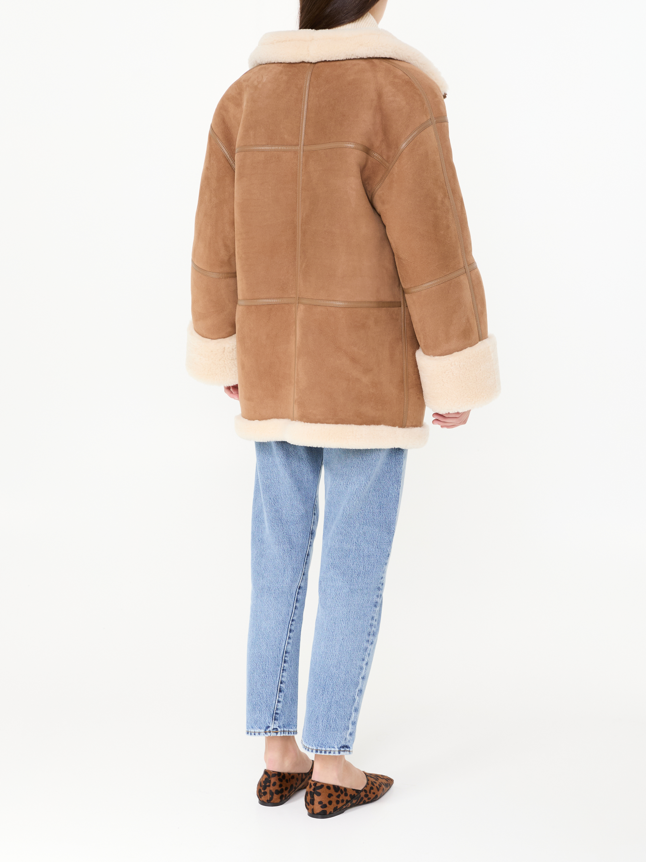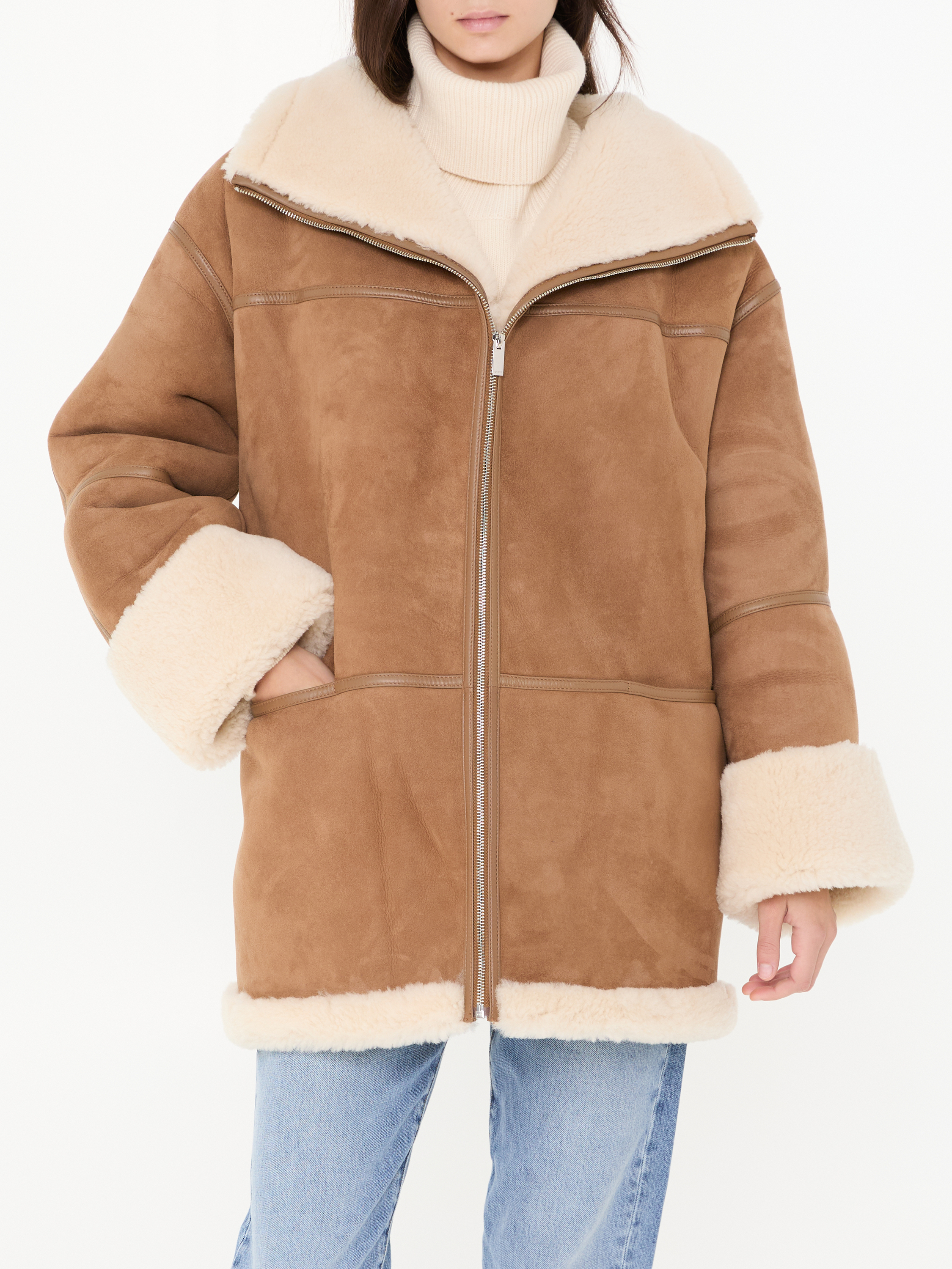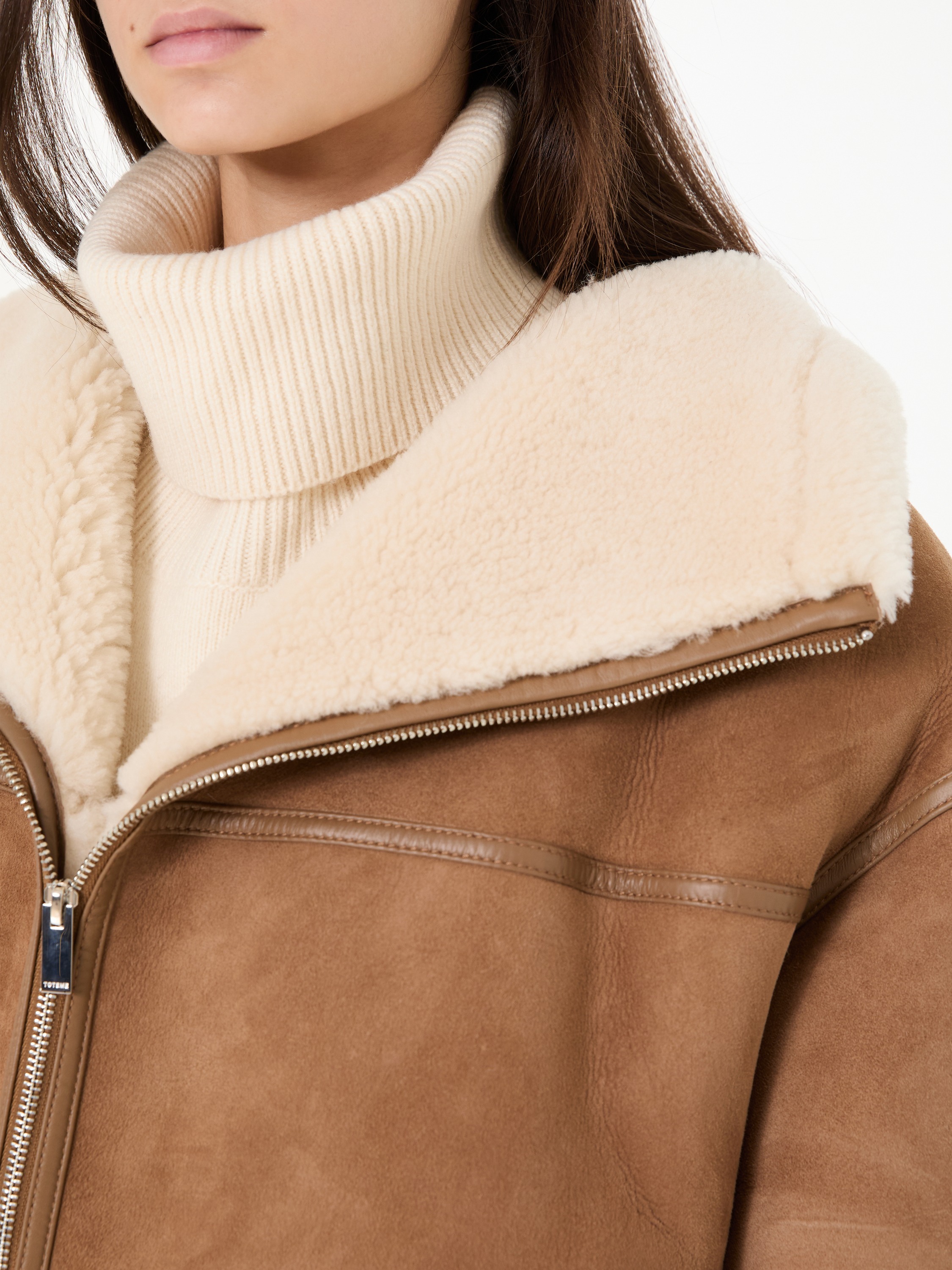 This brown jacket from TOTEME is made from high-quality lambskin and impresses with its soft look and feel. The zip and fluffy details make this design stand out.