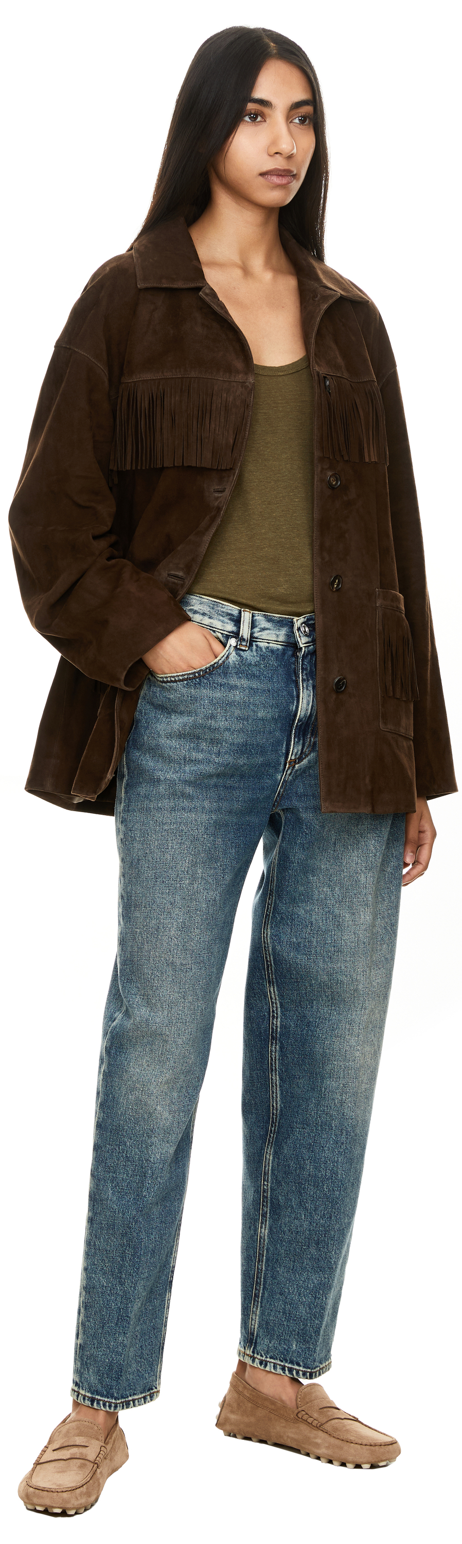 The model is 175 cm tall and wears a size 27.