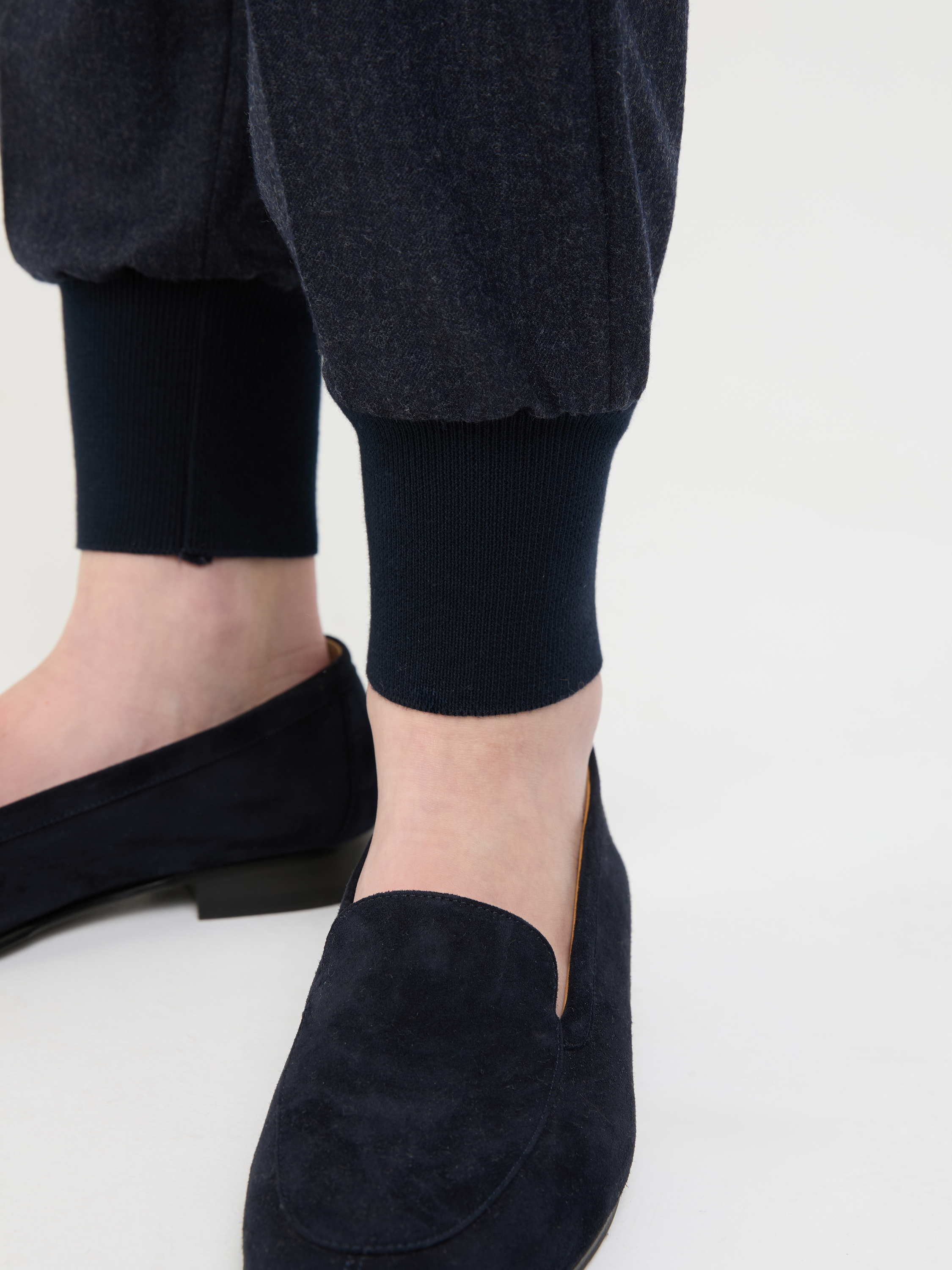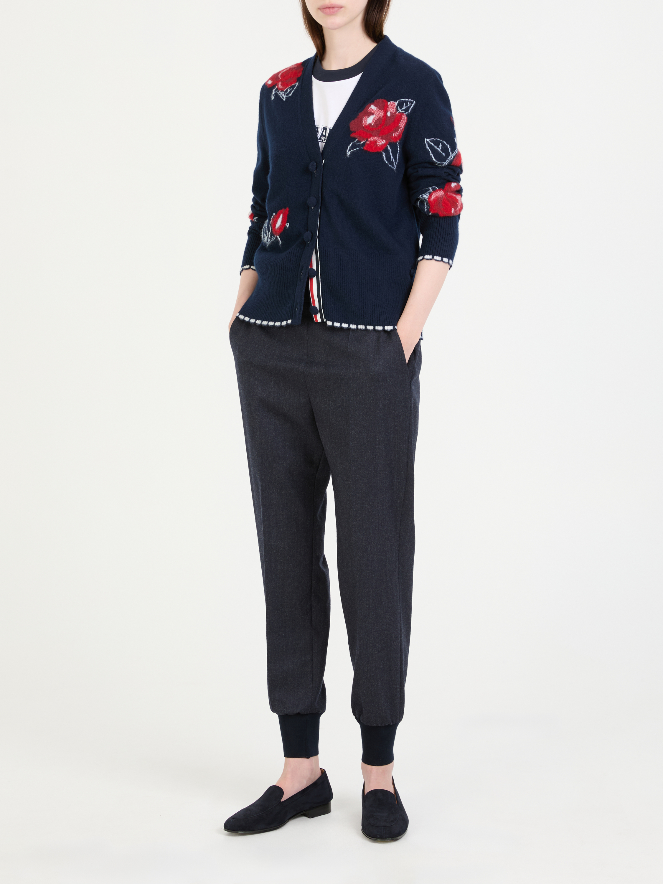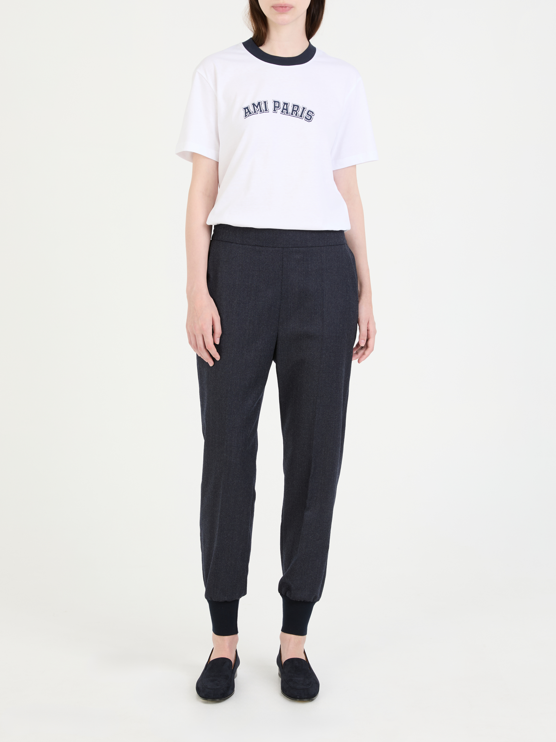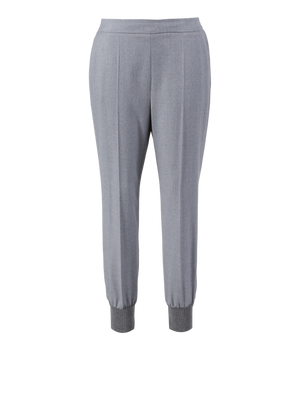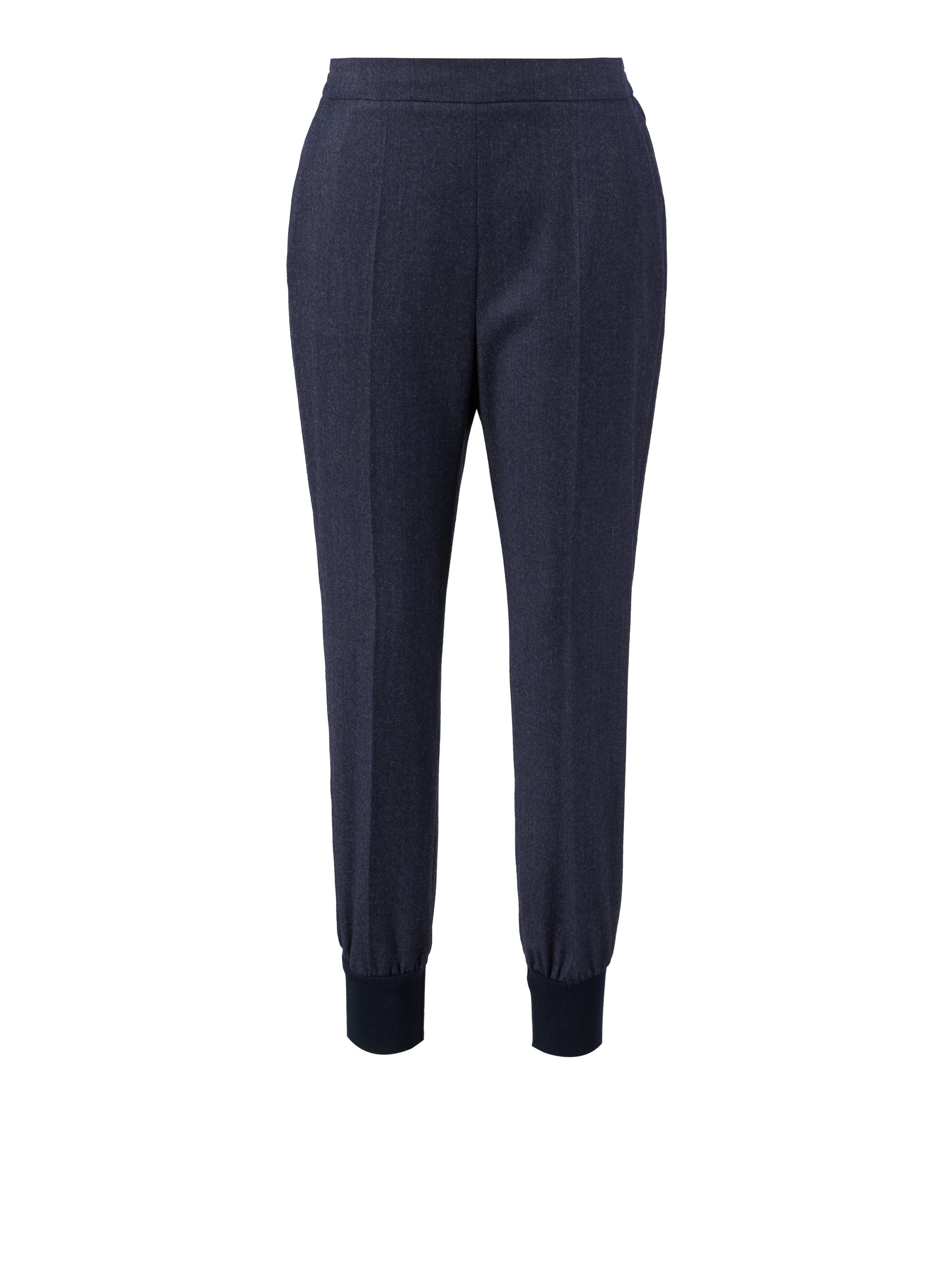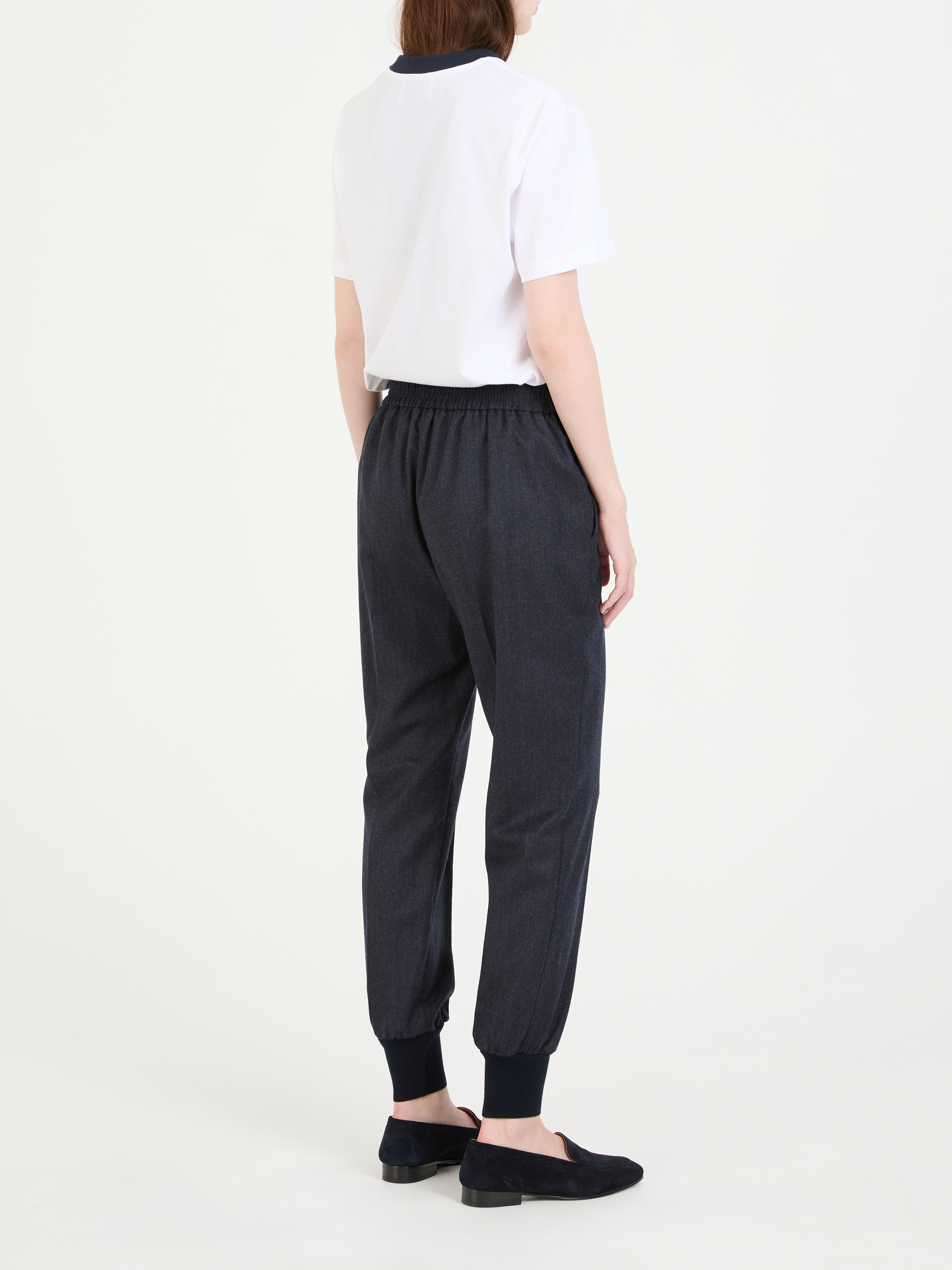 These navy blue jogging trousers by Stella McCartney are made from ethically sourced wool and boast a minimalist design. The model is stylishly complemented by the elasticated waistband and hems. The relaxed fit creates a harmonious finish and makes the look comfortable to wear.