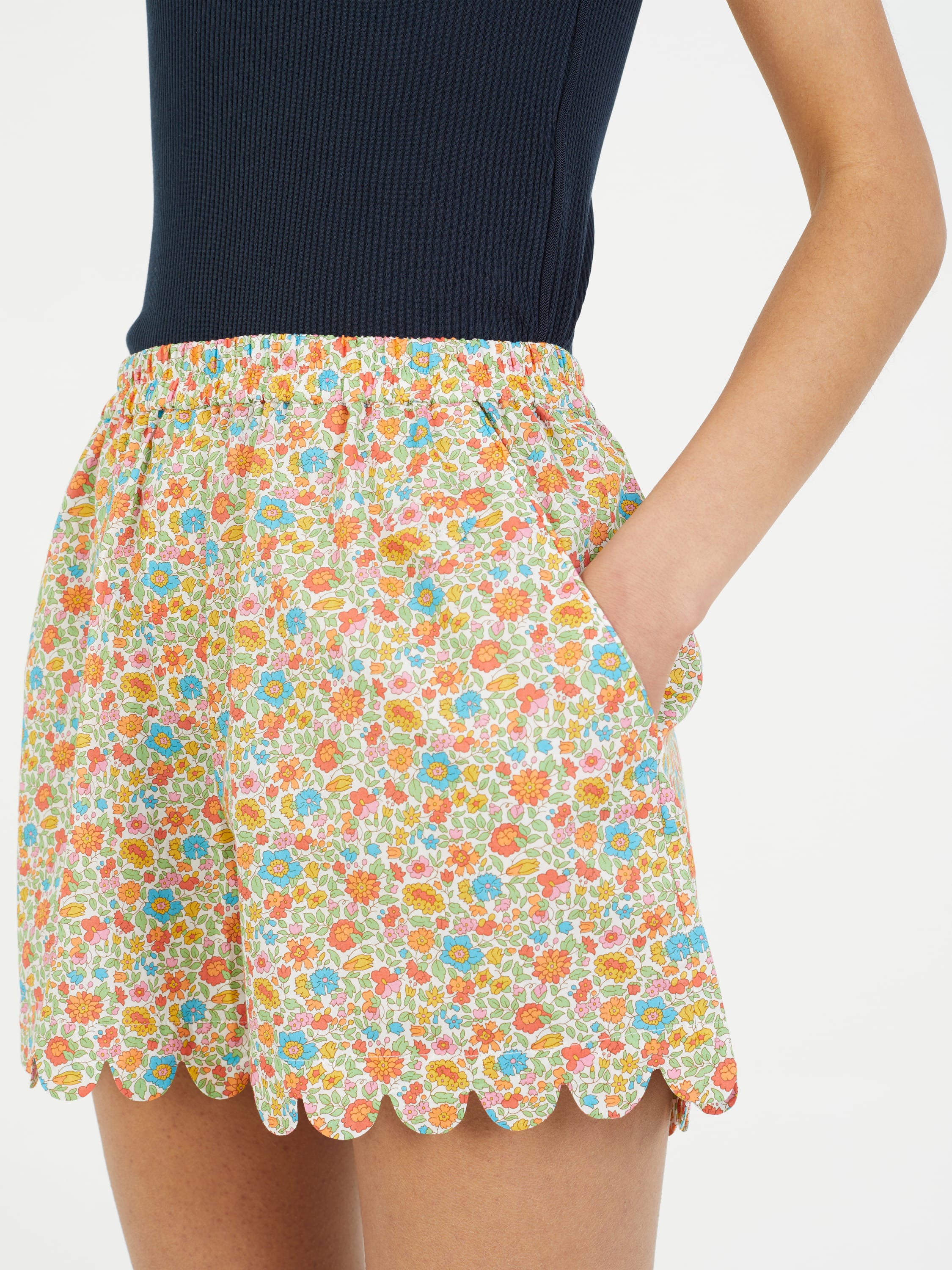 Die Shorts 'Ferdinand' in Multi/Grün von HORROR VACUI wurde aus reiner Baumwolle gefertigt und besticht durch den blumigen Allover-Print. Die seitlichen Eingrifftaschen und die ausgestellte Silhouette zeichnen dieses feminine Modell aus. Das leichte Material und der Wellensaum vollenden dieses moderne Design.