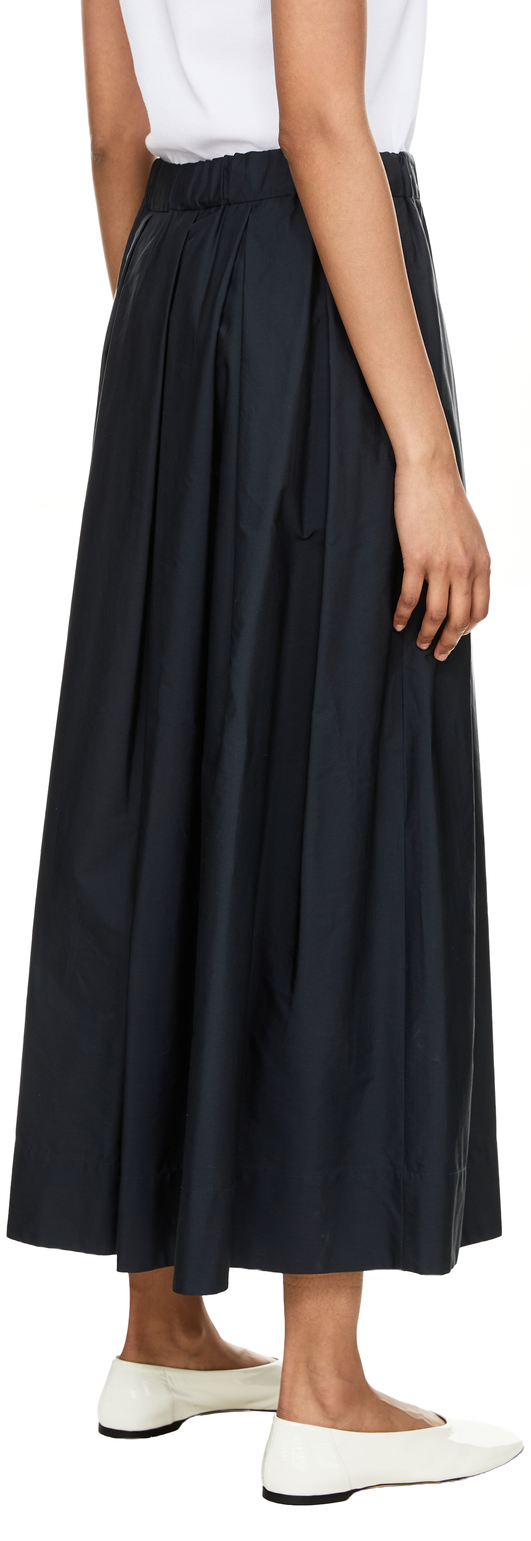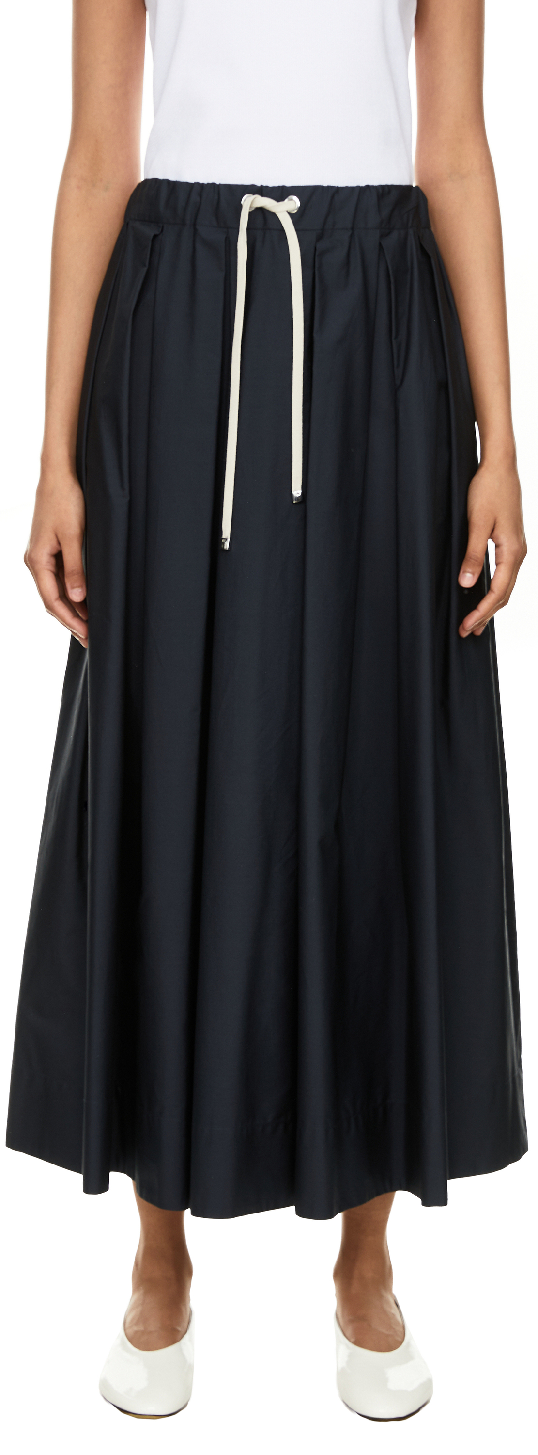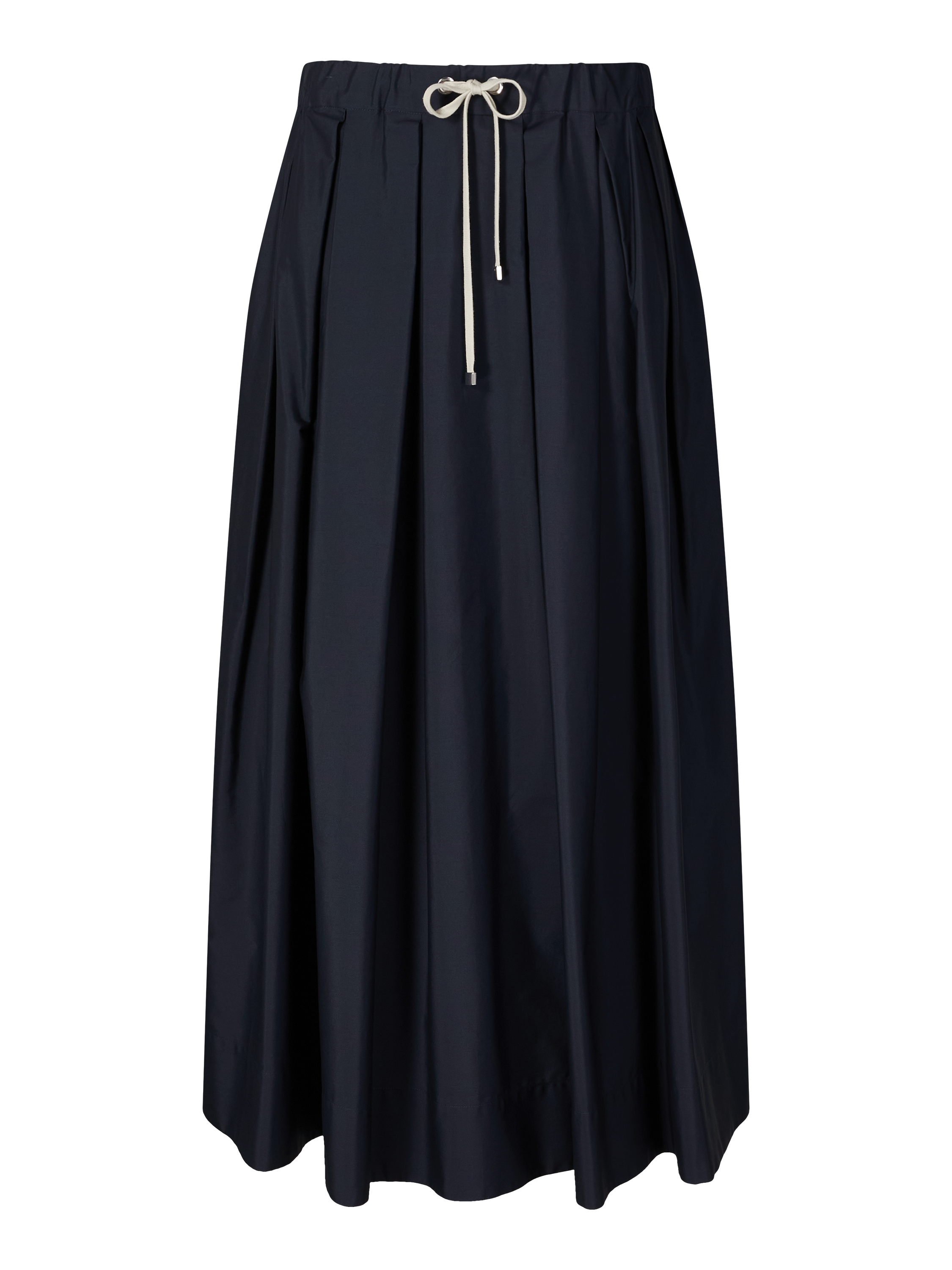 The 'Pineta' skirt in navy blue by 'S Max Mara is made from cotton poplin and stands out with its midi length. The high waist, drawstring at the waist and slightly flared silhouette characterise this feminine style. This look is rounded off with two side slit pockets.