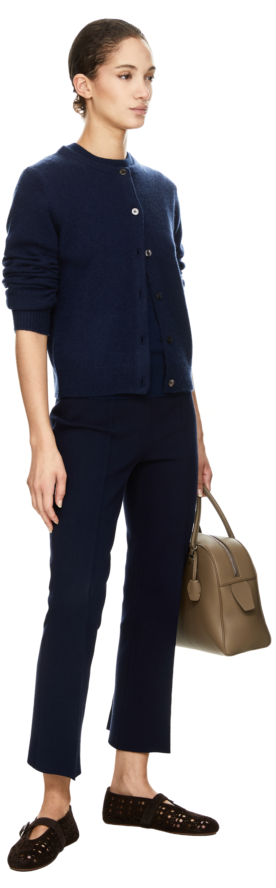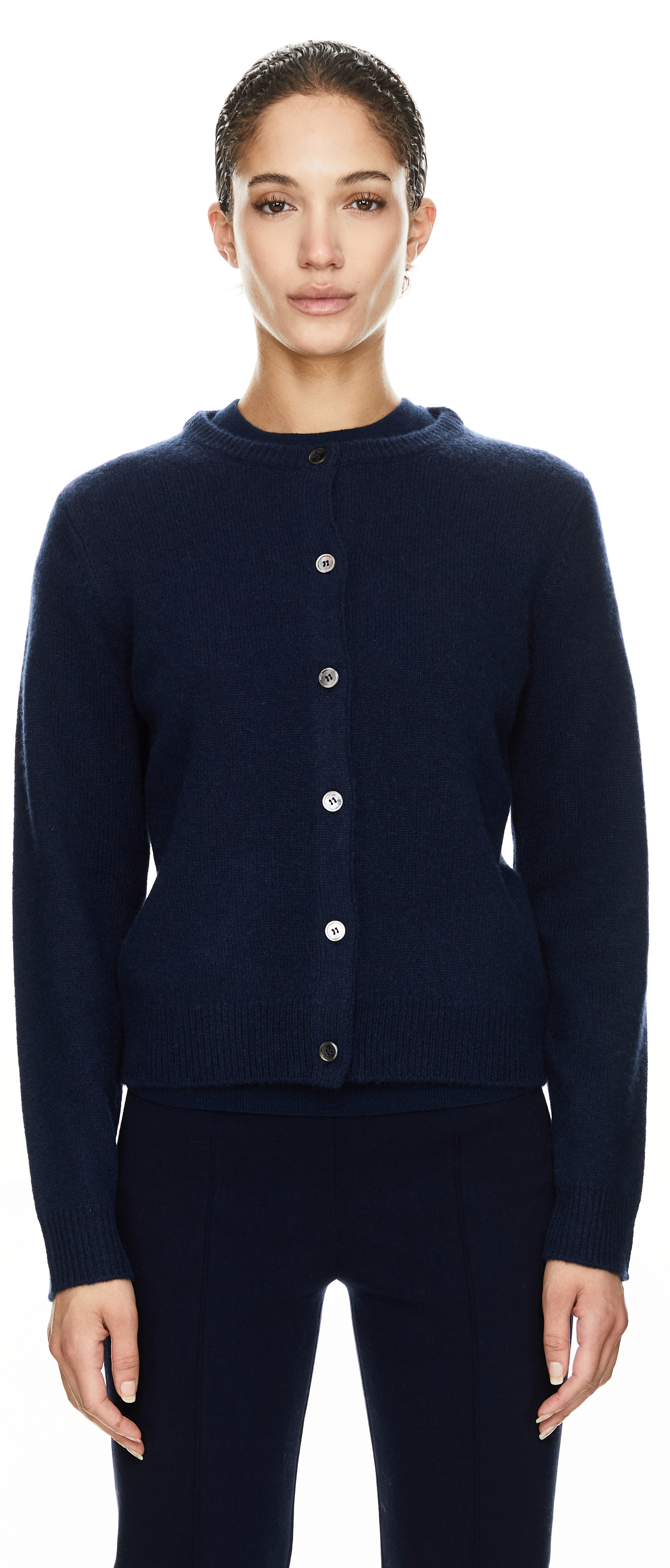 This cardigan in Midnight by UNGER Collection is made from high-quality cashmere and impresses with its soft feel, long sleeves and full-length mother-of-pearl buttons. The cropped cut gives the design a modern touch and makes this piece an excellent addition to high-waisted trousers and skirts.