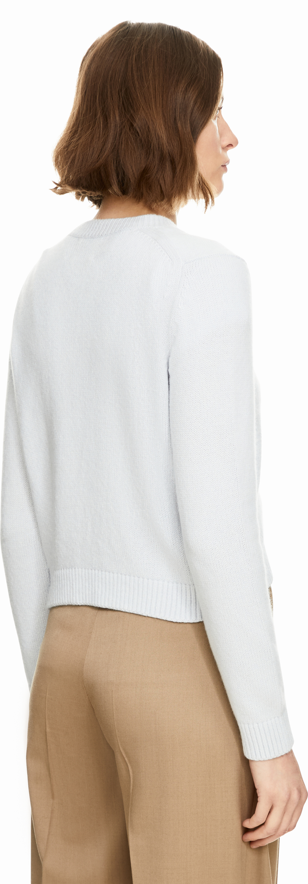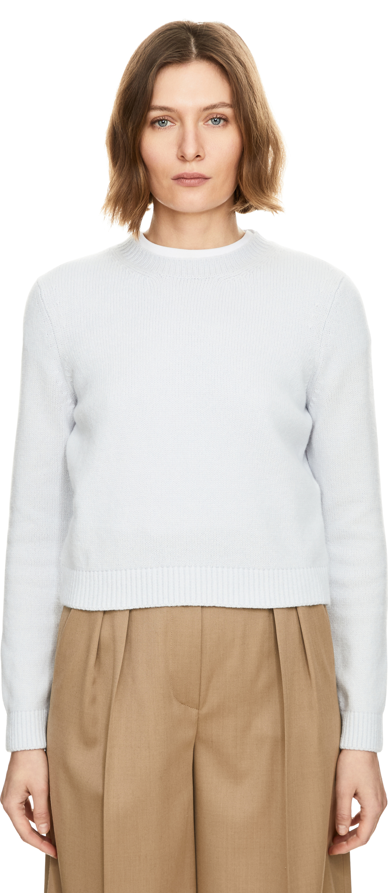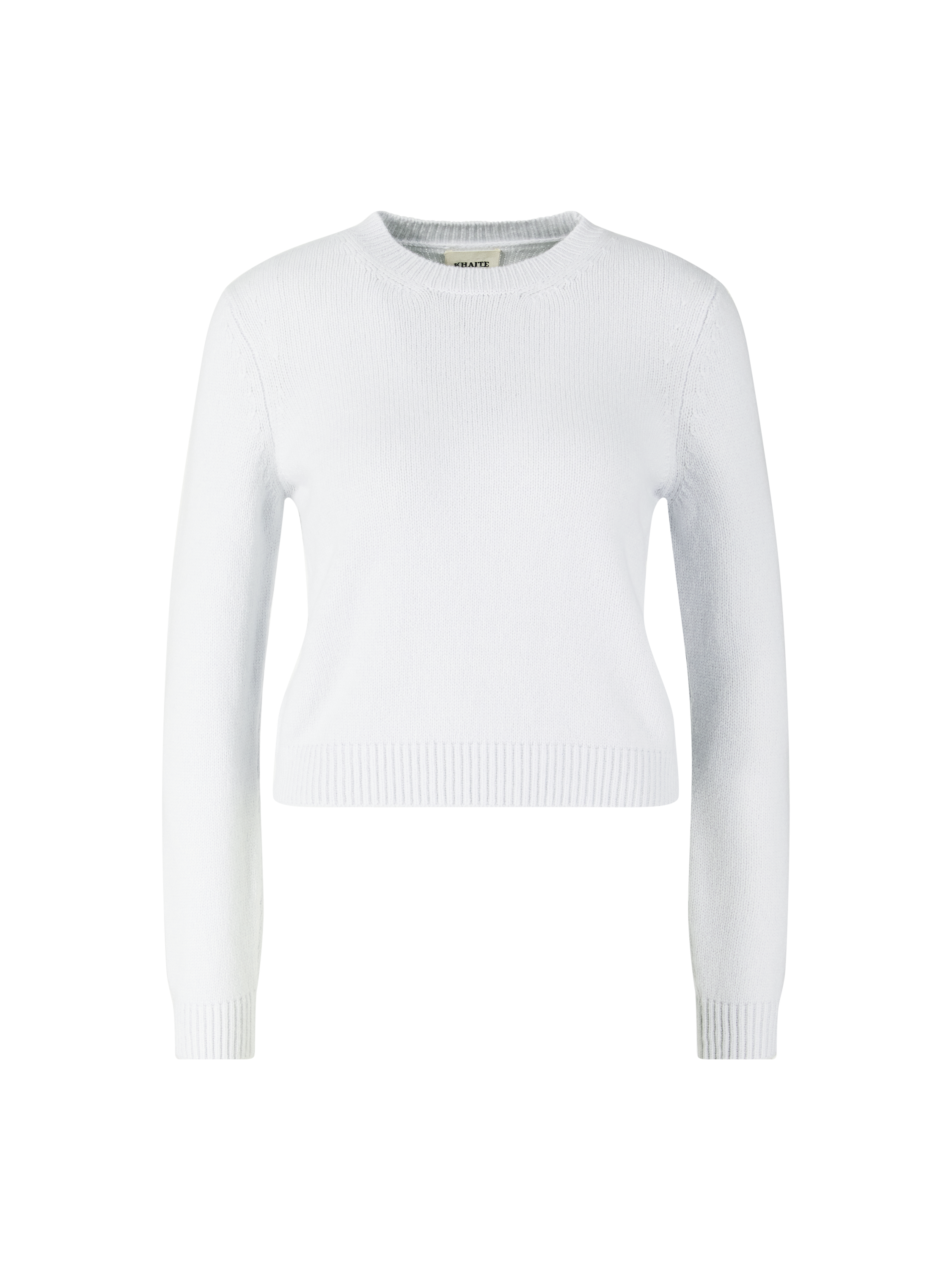 The 'Leta' jumper in light blue by Khaite is made from soft, high-quality cashmere and impresses with its cropped silhouette. The round neckline, ribbed cuffs and 3/4-length sleeves complete this classic piece.