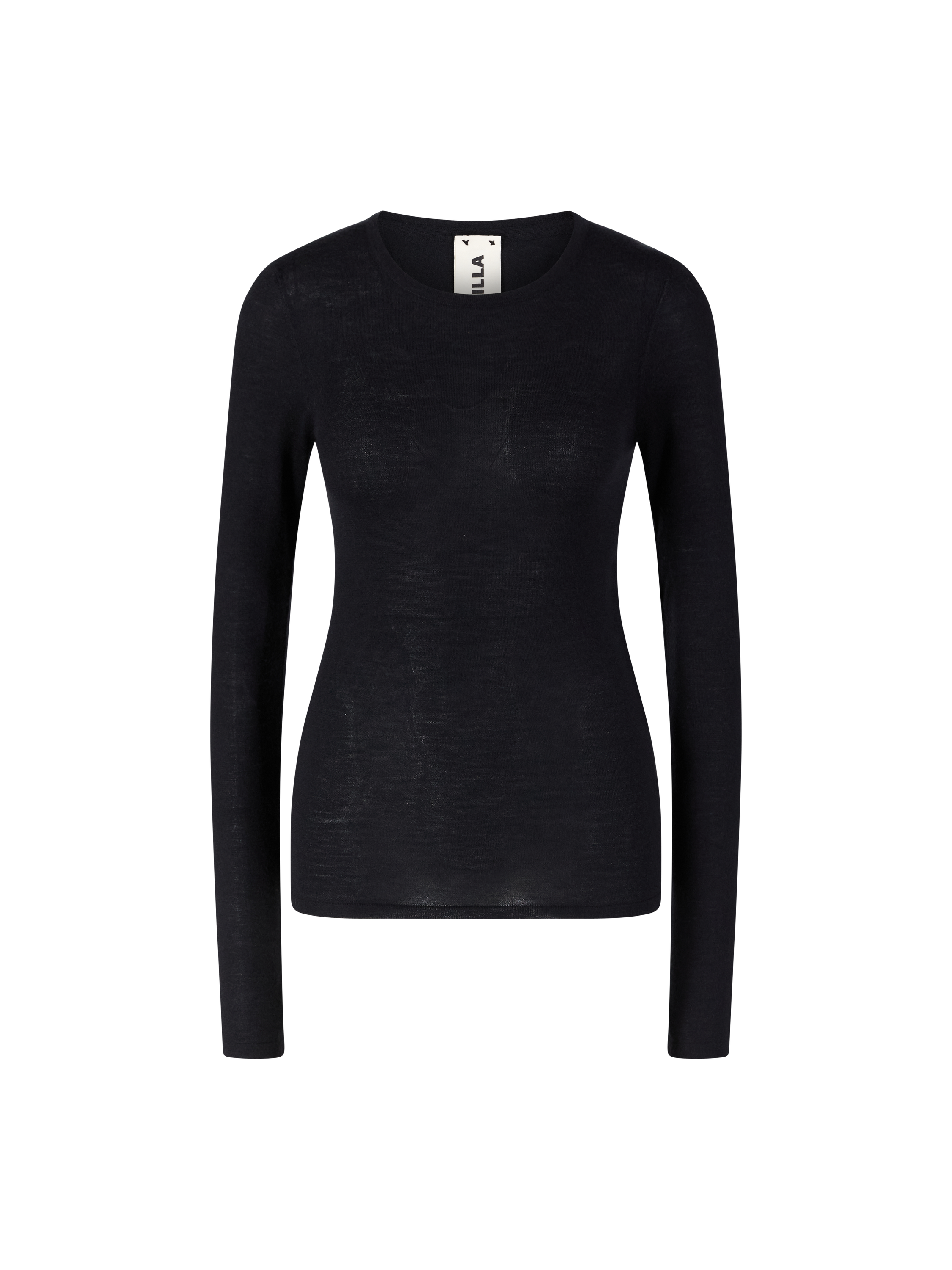 This black jumper by Ella Silla is made from pure cashmere and impresses with its tailored fit. The round neckline, long sleeves and soft feel make it comfortable to wear.