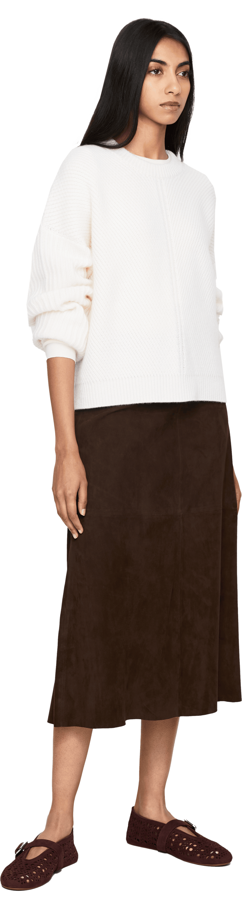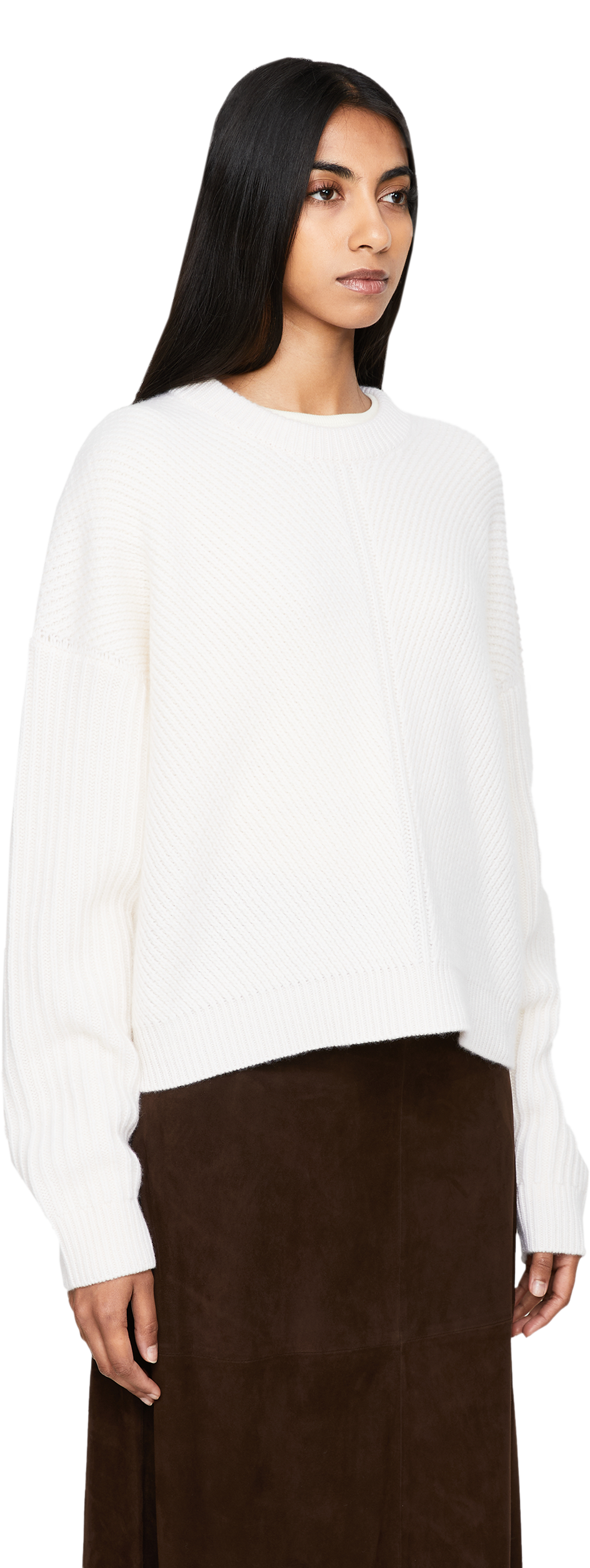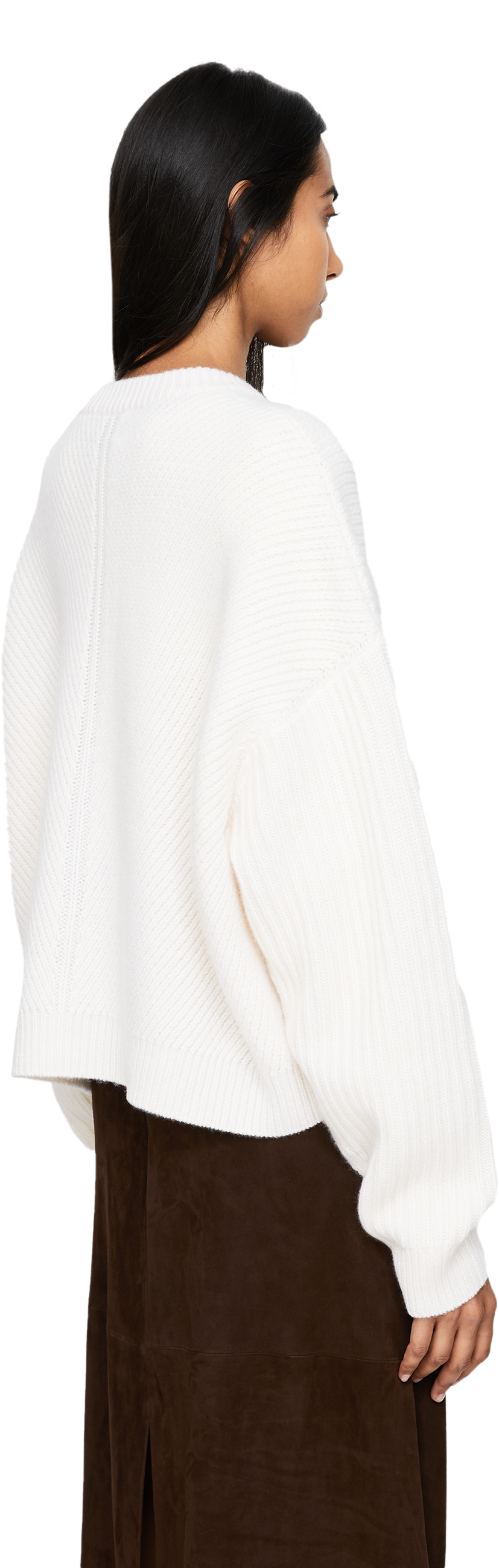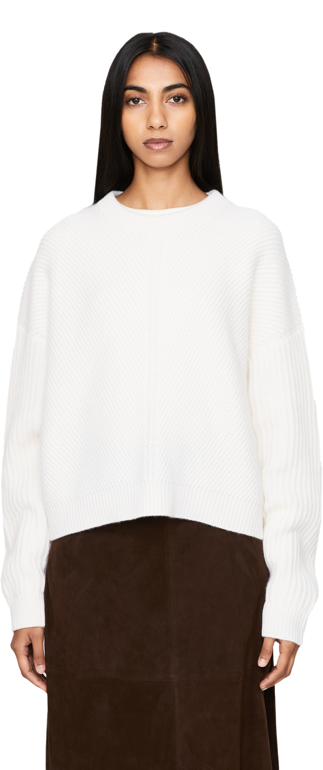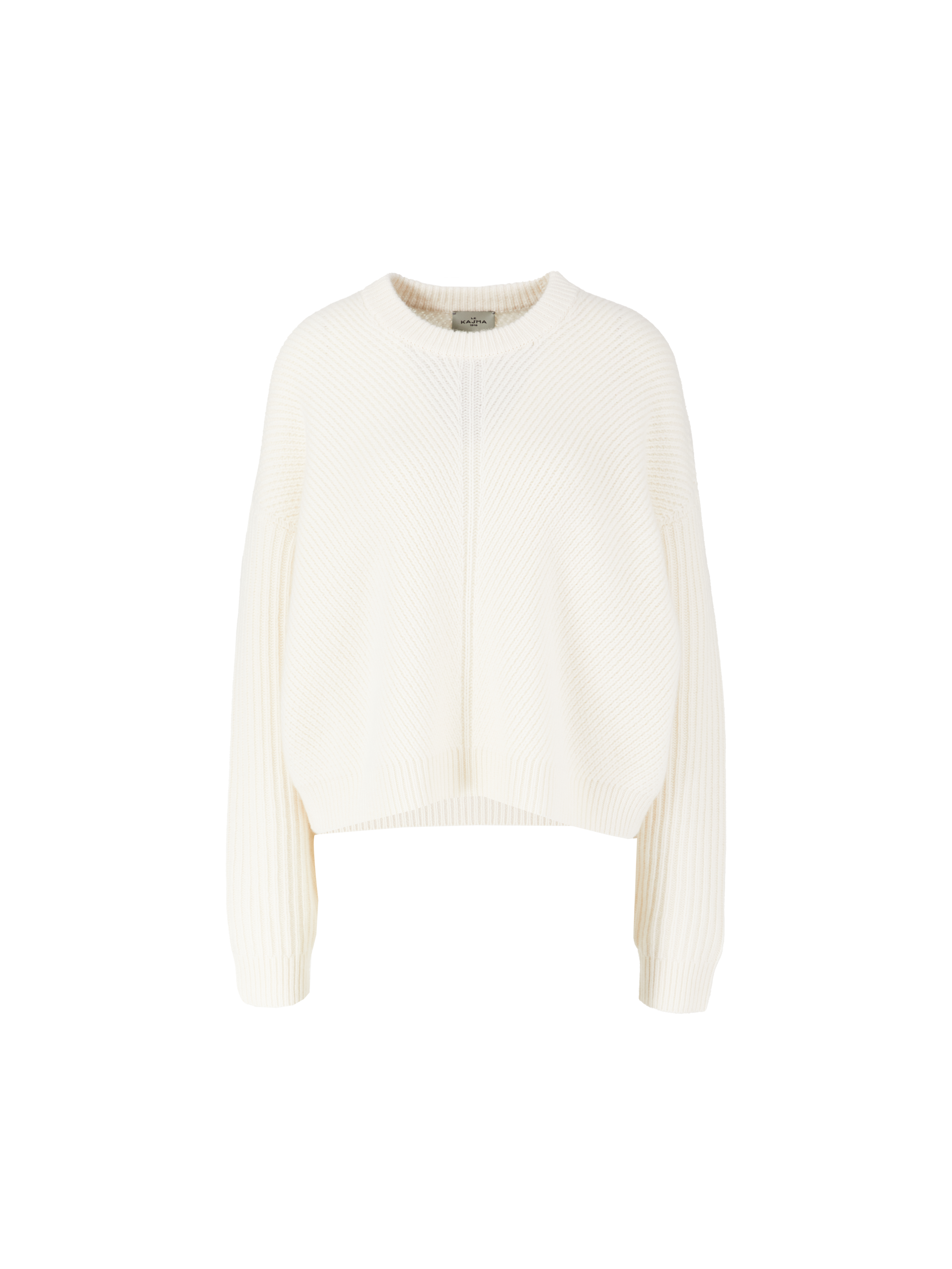 The 'Puglia' jumper in white by Le Kasha is made from pure cashmere and impresses with its soft feel. The elegant diagonal ribbed knit on the front and back, the oversized fit and the extended shoulder seam make this style a real eye-catcher.