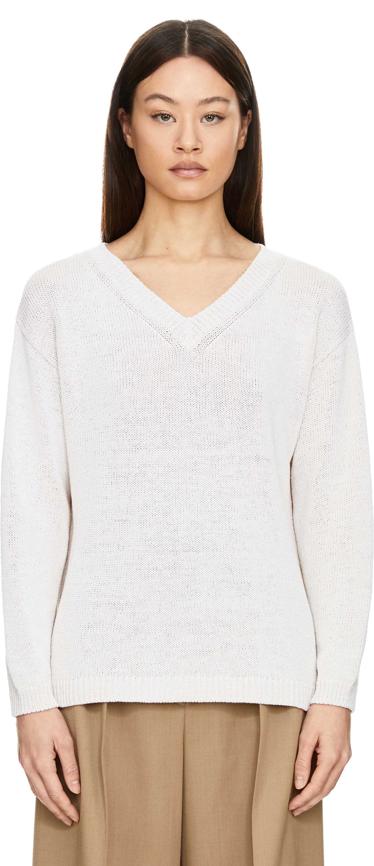 The 'Diona' jumper in off white by Iris von Arnim is made from a high-quality silk and linen blend and impresses with its casual fit. The V-neckline, long sleeves and dropped shoulders give the design a timeless touch.