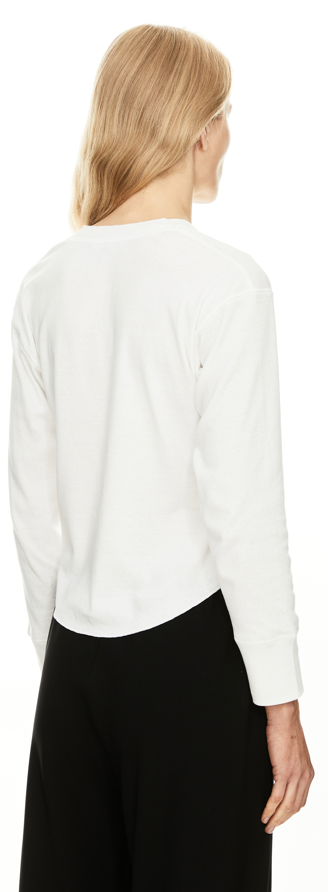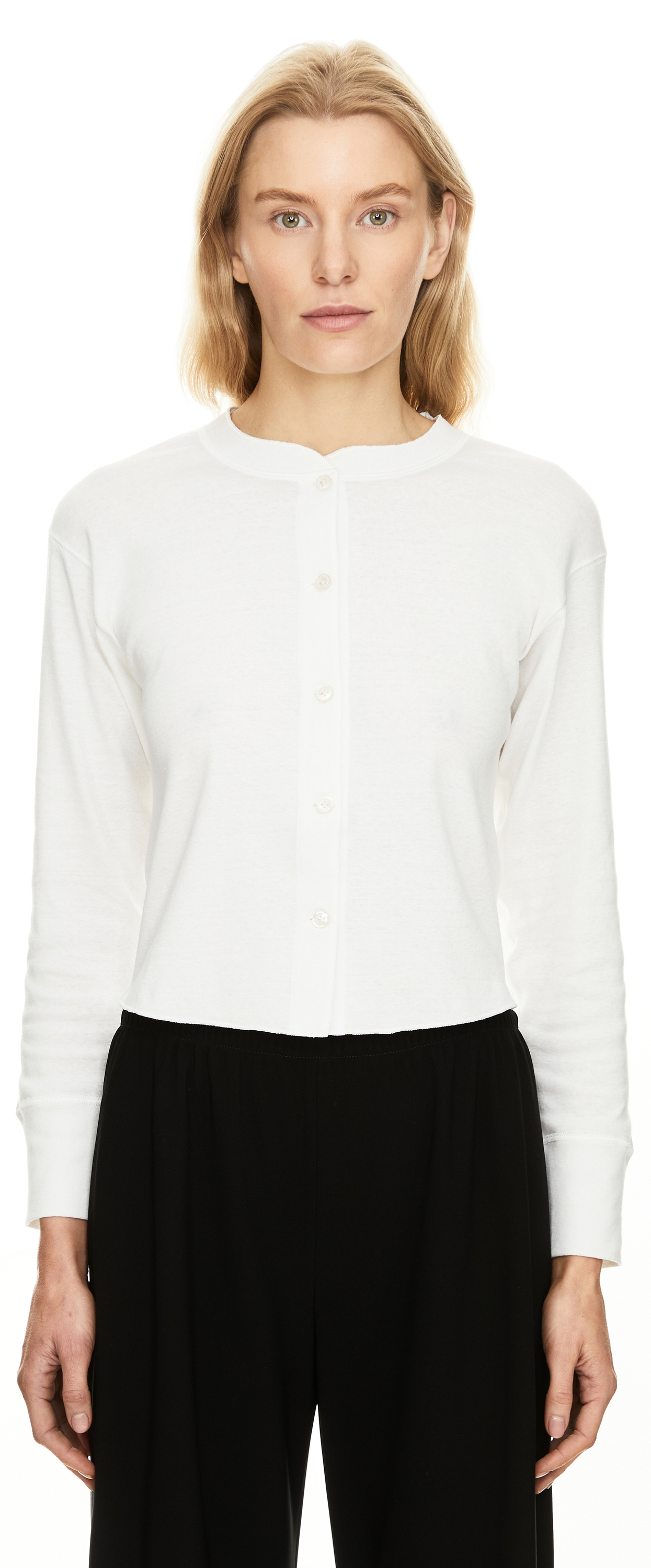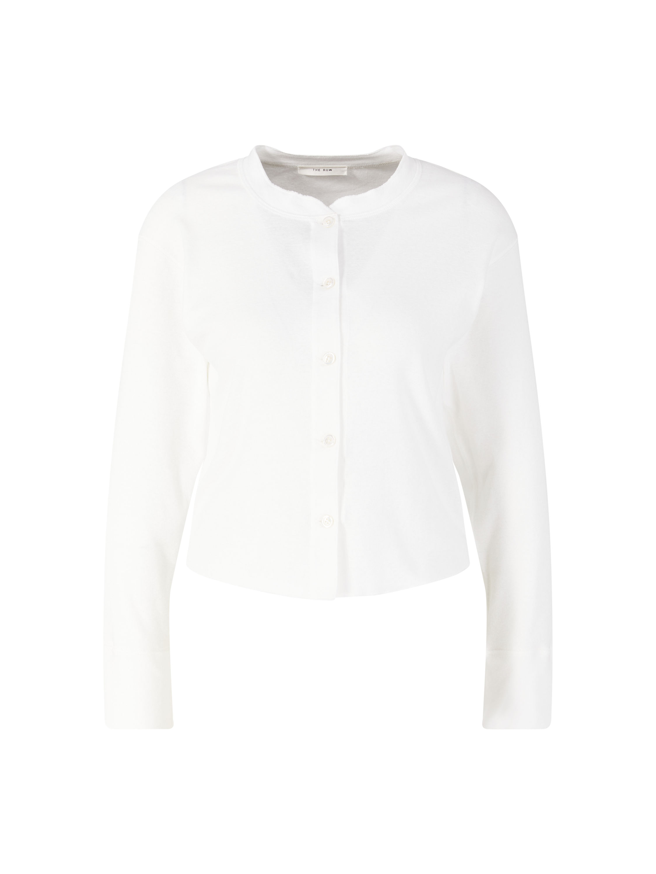 Das Shirt 'Gano' in Weiß von The Row wurde aus dem ultraweichen japanischen Baumwolljersey gefertigt und besticht durch die leicht verkürzten, langen Ärmel. Die Ziernähte sowie die sichtbar durchgehende Knopfleiste verleihen dem Design eine moderne und zugleich elegante Note und runden das Modell stilvoll ab.
