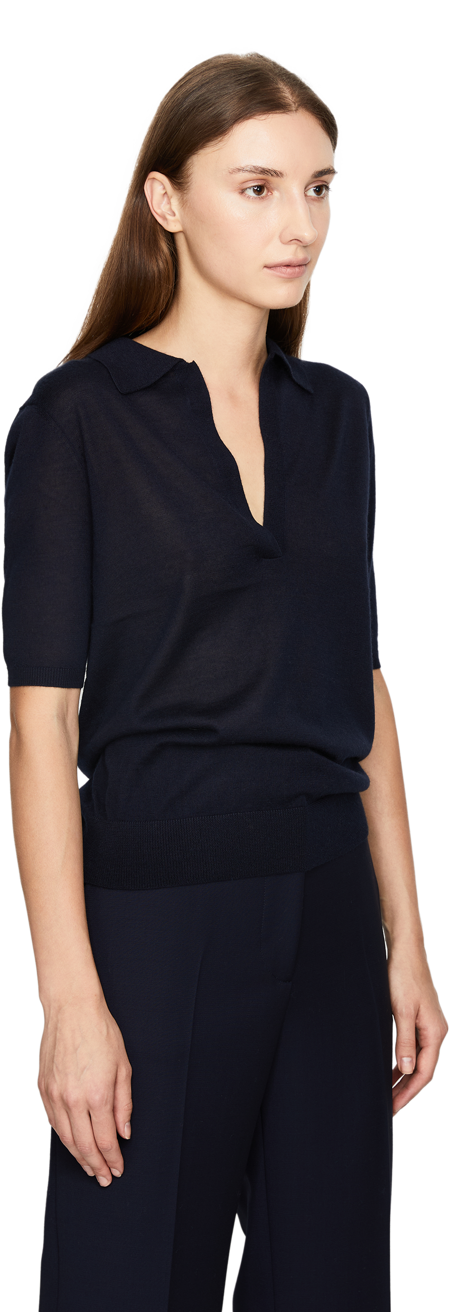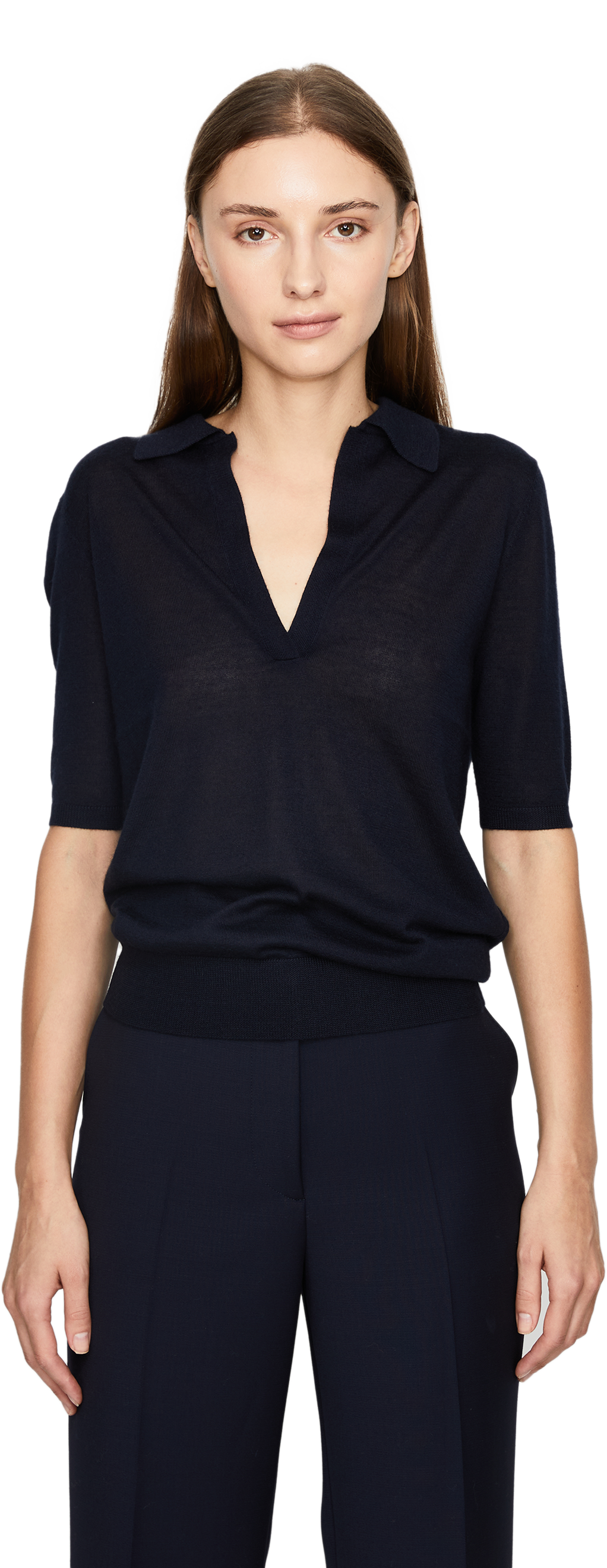 This 'Frank' polo shirt in navy blue by Gabriela Hearst is made from a cashmere-silk blend and features the typical polo collar. The straight fit and elongated short sleeves ensure optimum comfort. The V-neck complements the classic design.