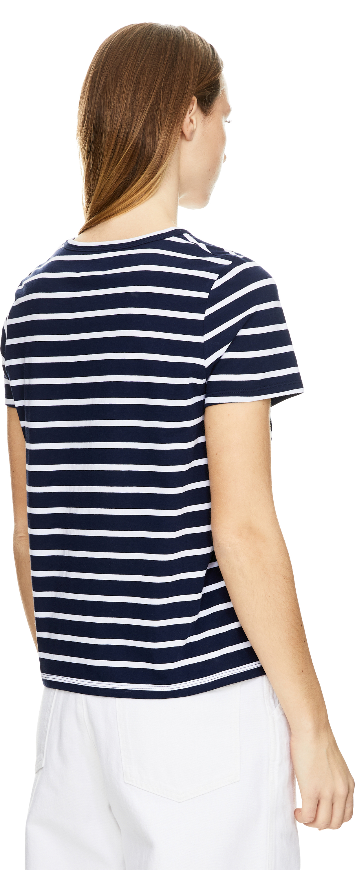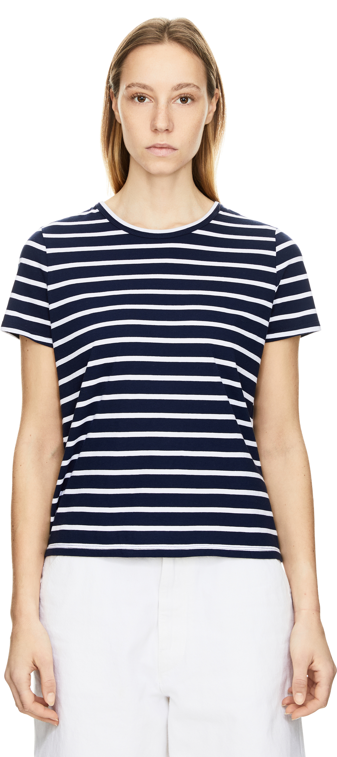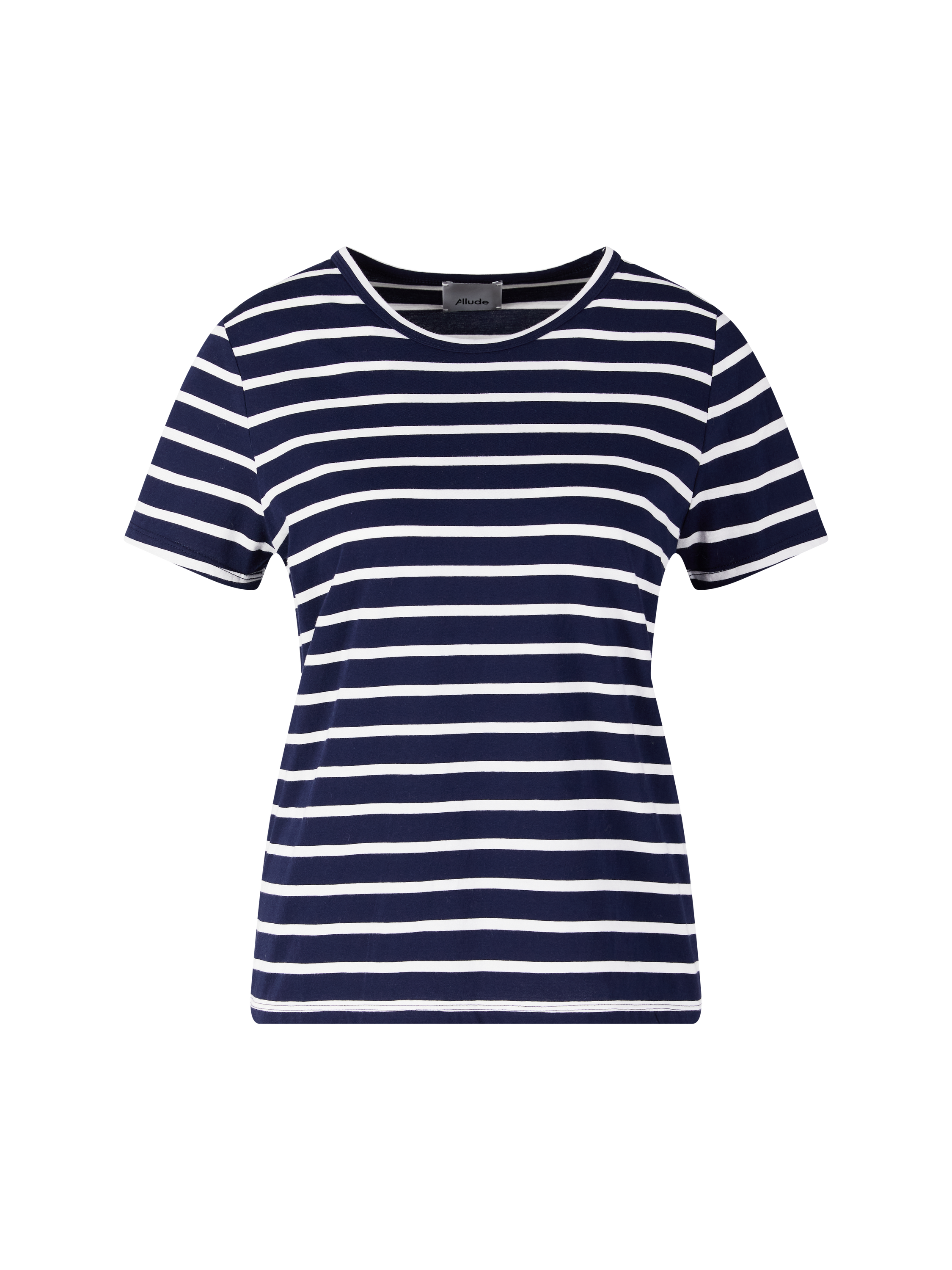 Dieses T-Shirt in Marineblau von Allude wurde aus reiner Baumwolle gefertigt und besticht durch das modische Streifenmuster. Der Rundhalsausschnitt, die kurzen Ärmel und die angenehme Haptik zeichnen dieses klassische Modell aus.