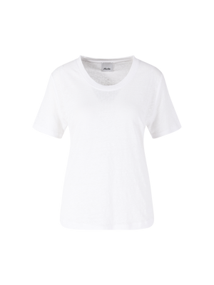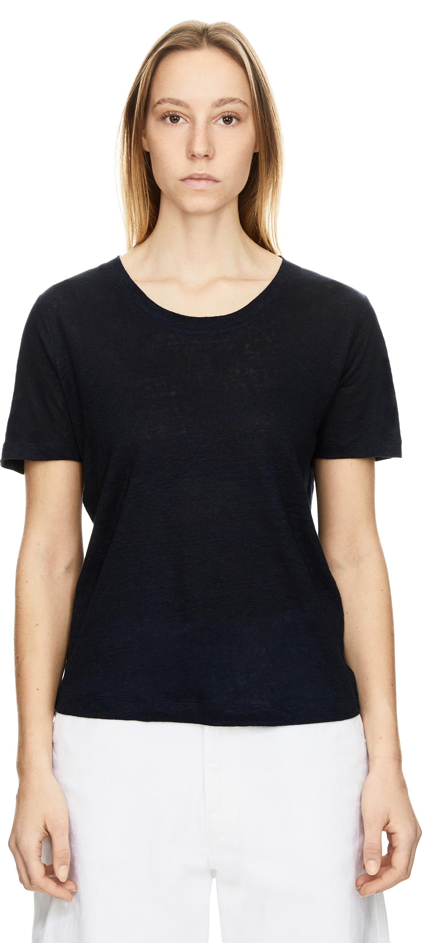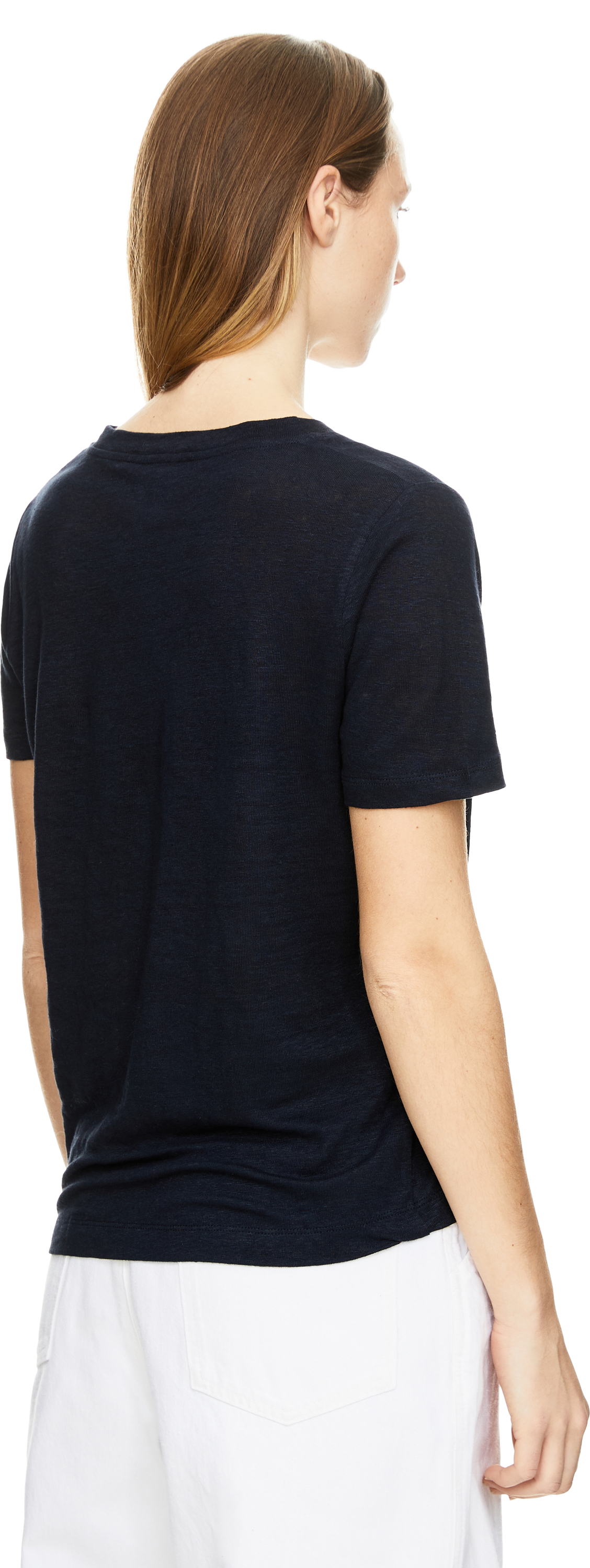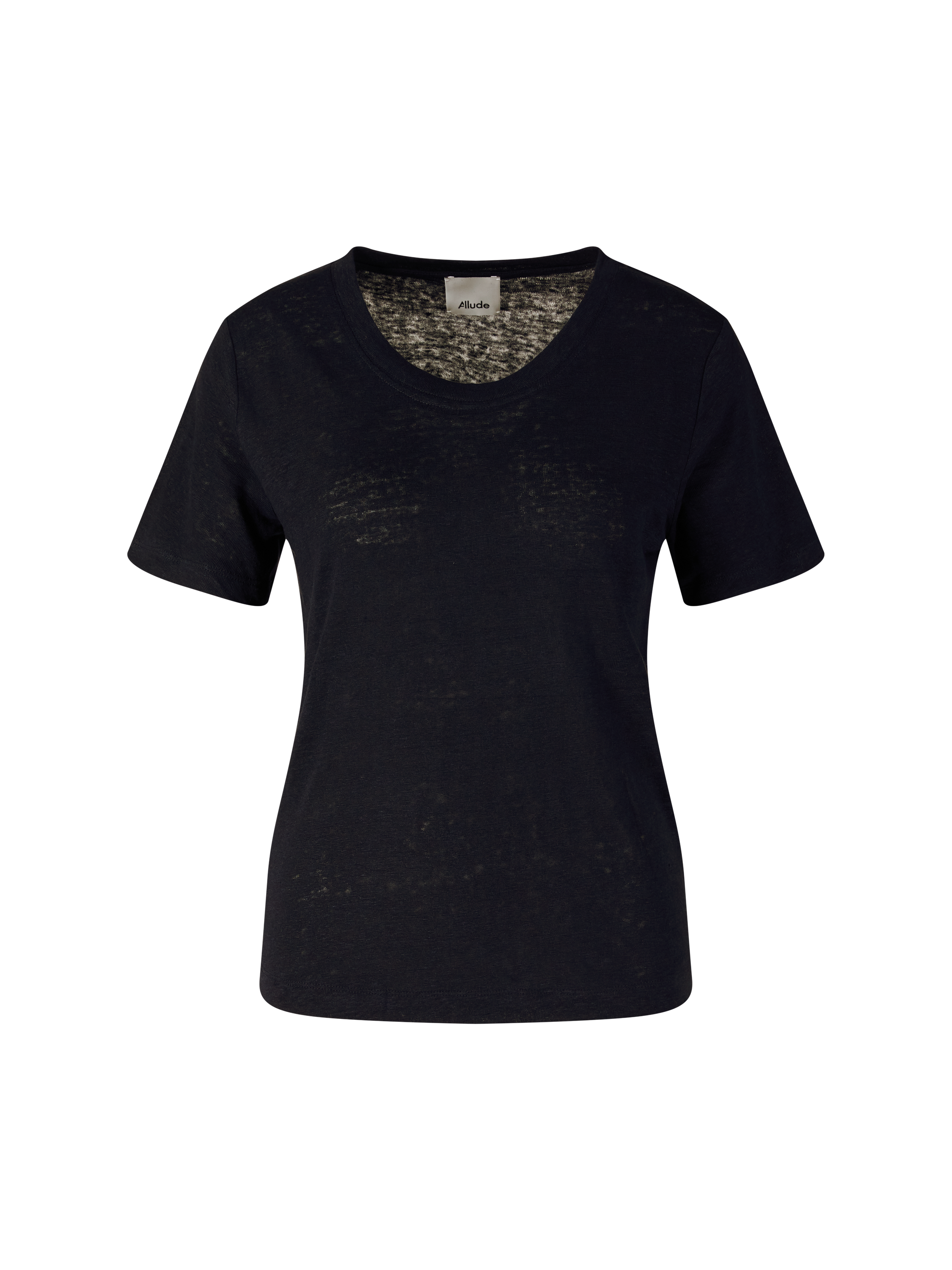 This dark blue shirt from Allude is made from high-quality linen and features a semi-transparent look that gives the design a light touch. The straight fit and round neckline emphasise the timeless design and make this piece a high-quality essential, especially on warm days.