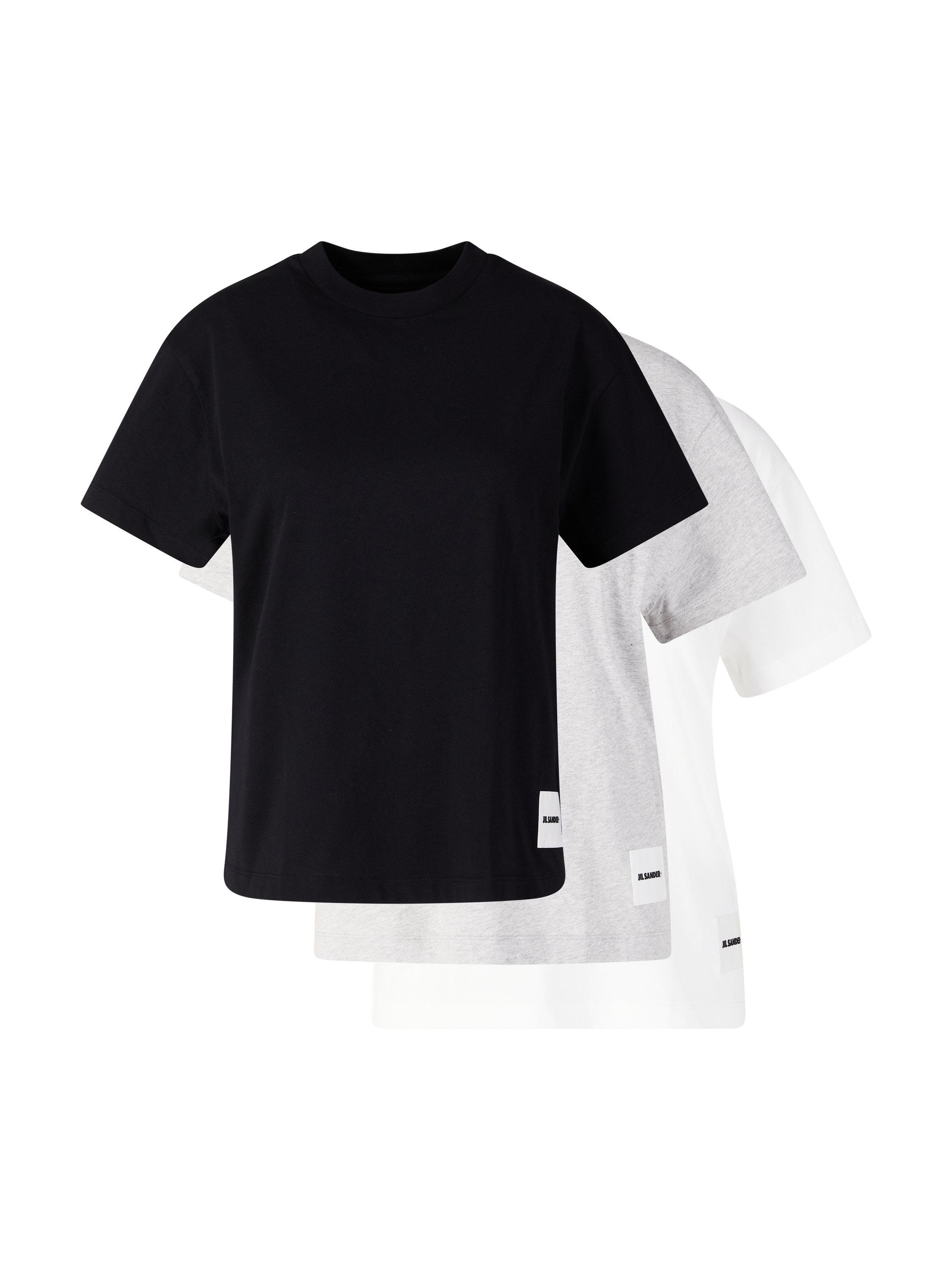 This T-shirt set in multi by JIL SANDER is made from sturdy cotton and boasts a modern design. The round neckline and boxy shape with a logo patch define this model.