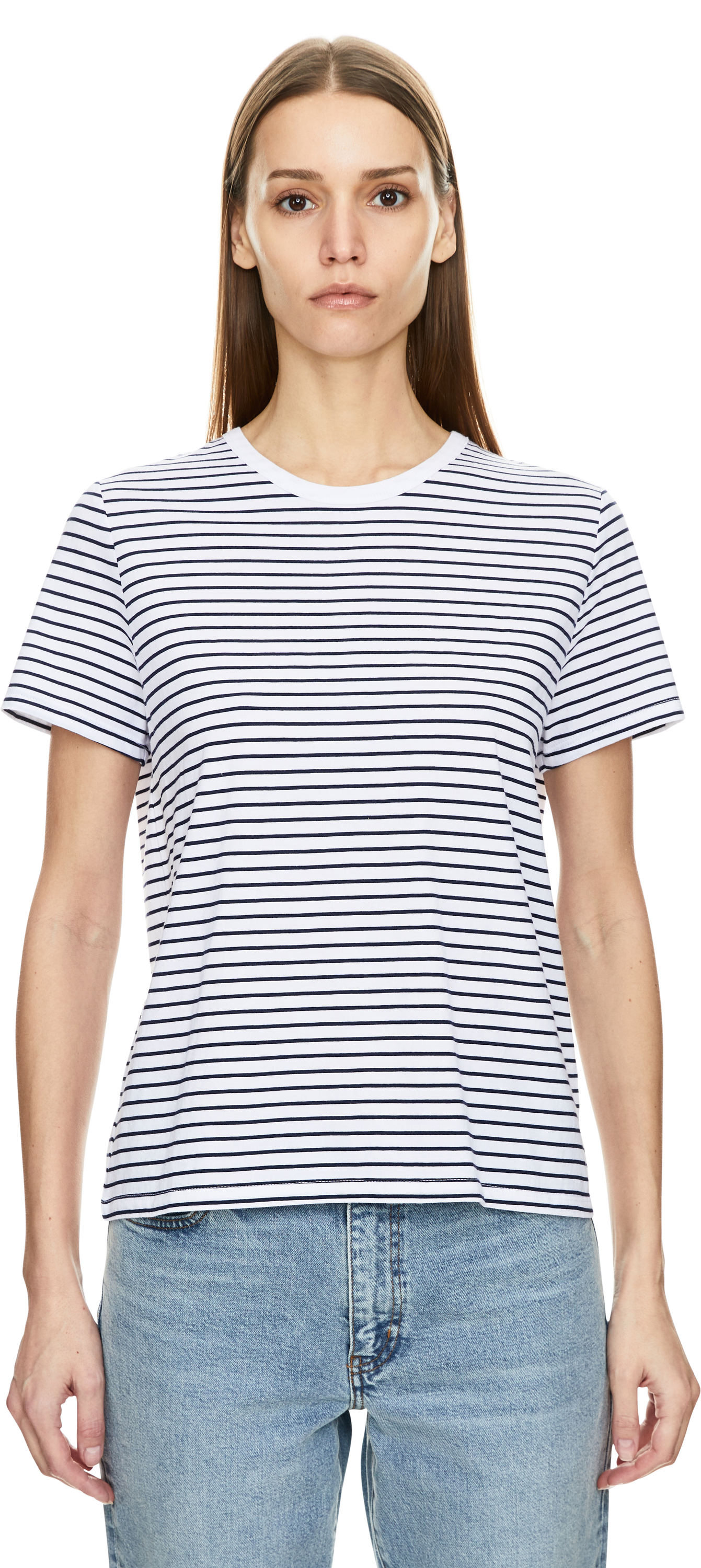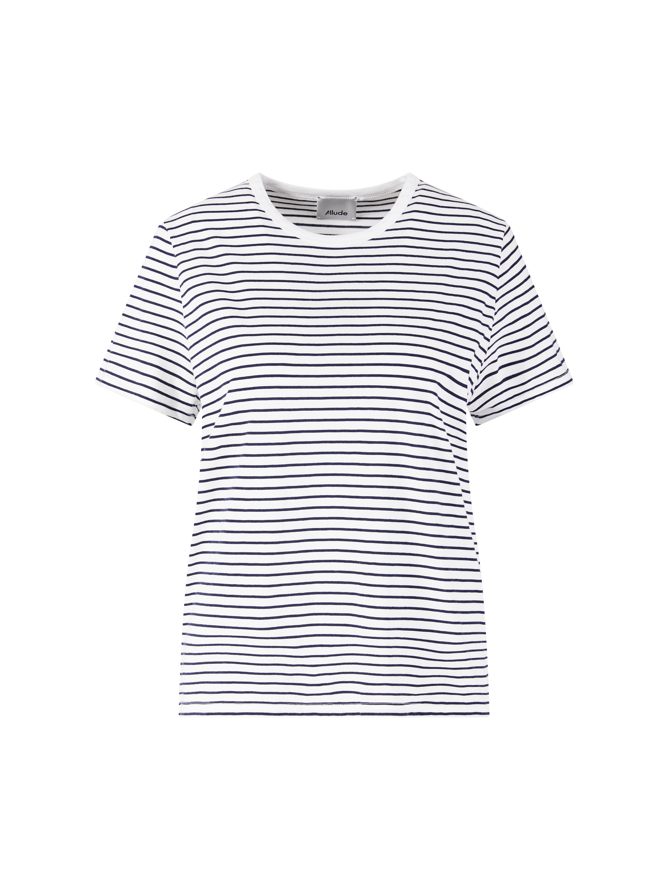 The 'Classic' T-shirt in white by Allude is made from pure cotton and features a classic striped pattern. The round neckline, short sleeves and pleasant feel characterise this timeless style.