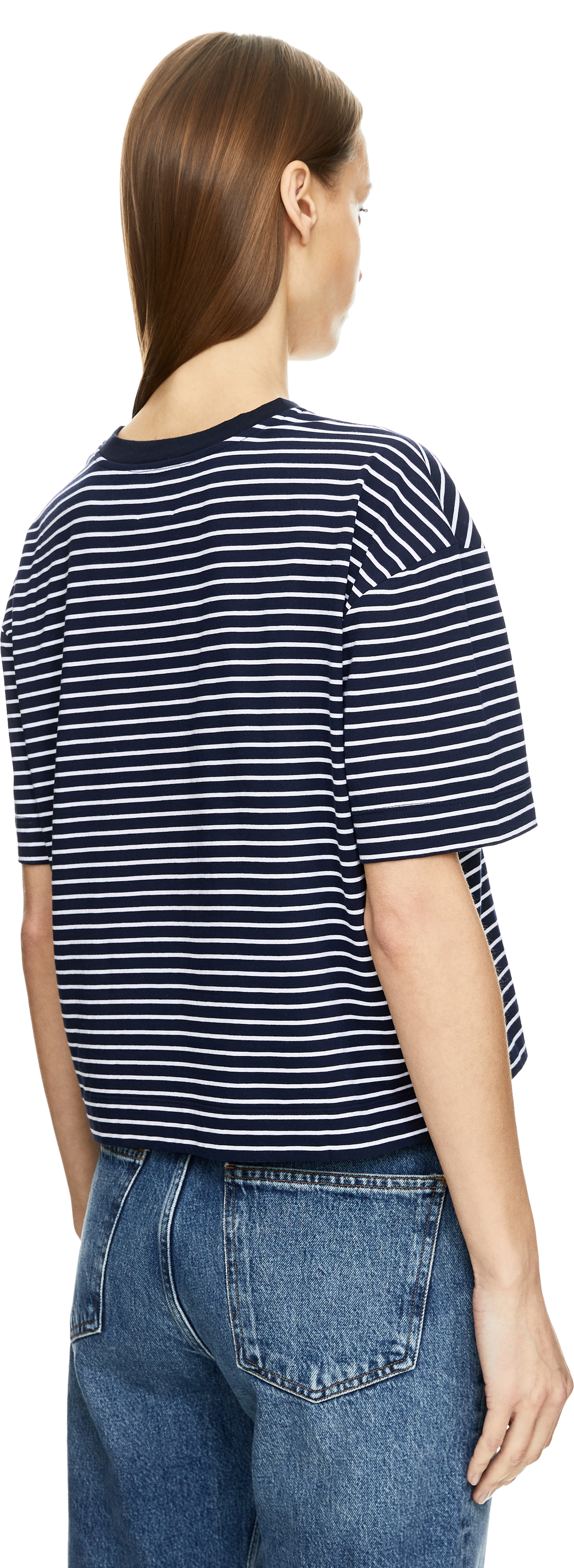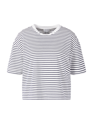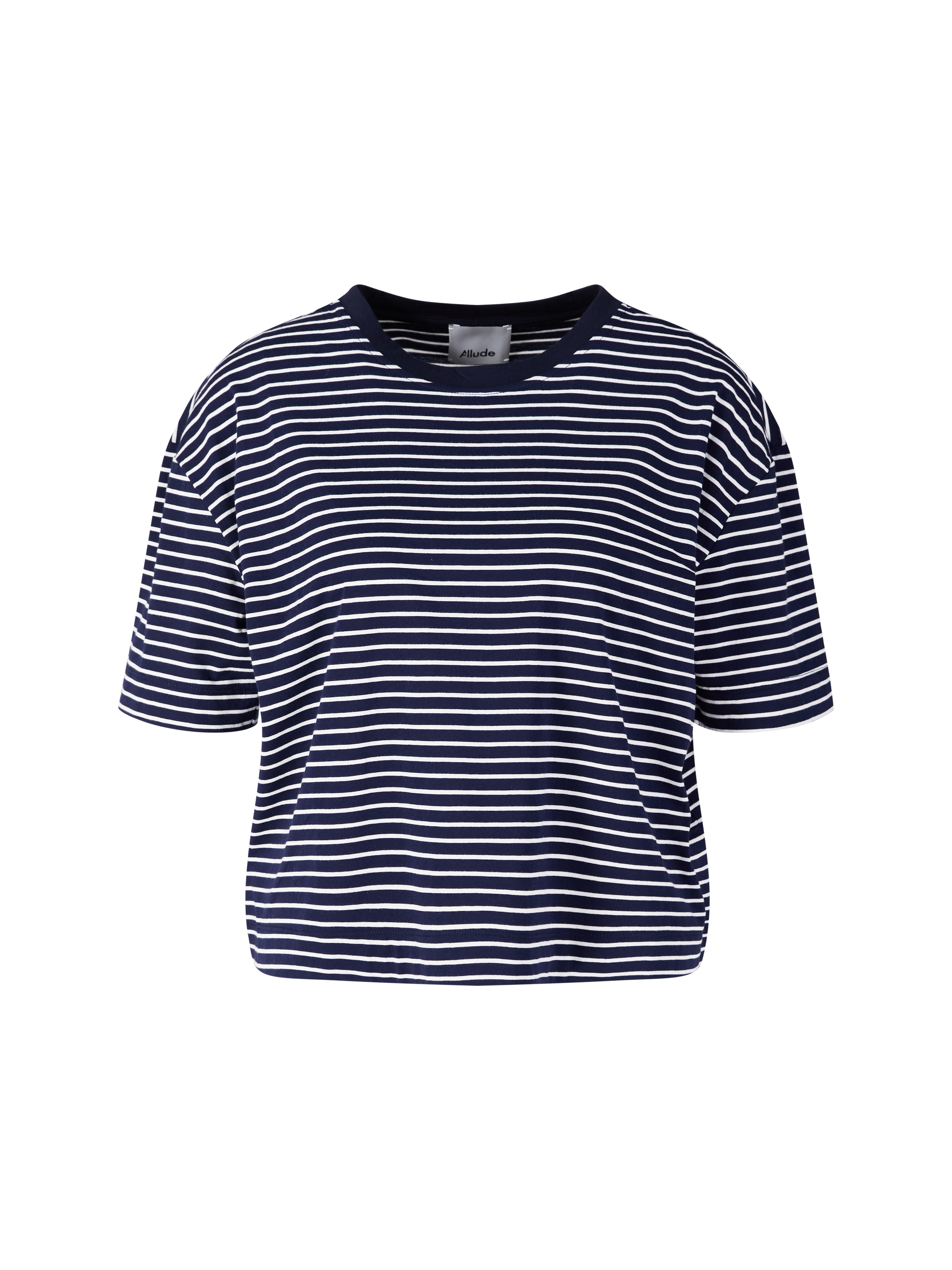 This navy blue shirt from Allude is made from high-quality cotton and features a boxy fit that gives it a modern silhouette. The classic round neckline and slightly dropped shoulders make this piece a casual essential.
