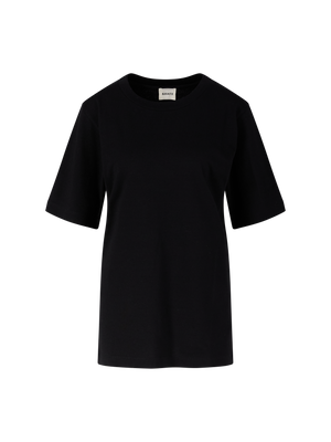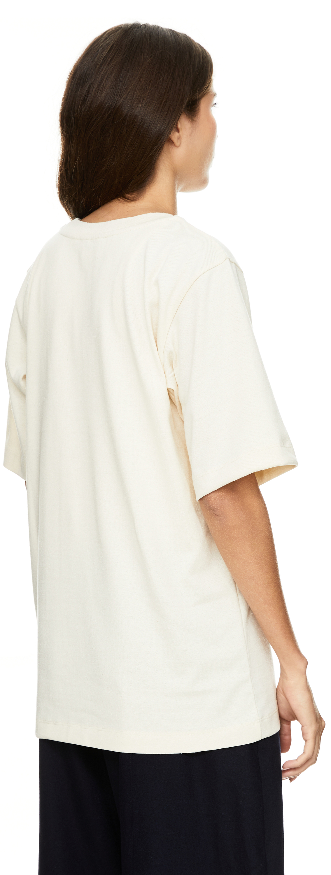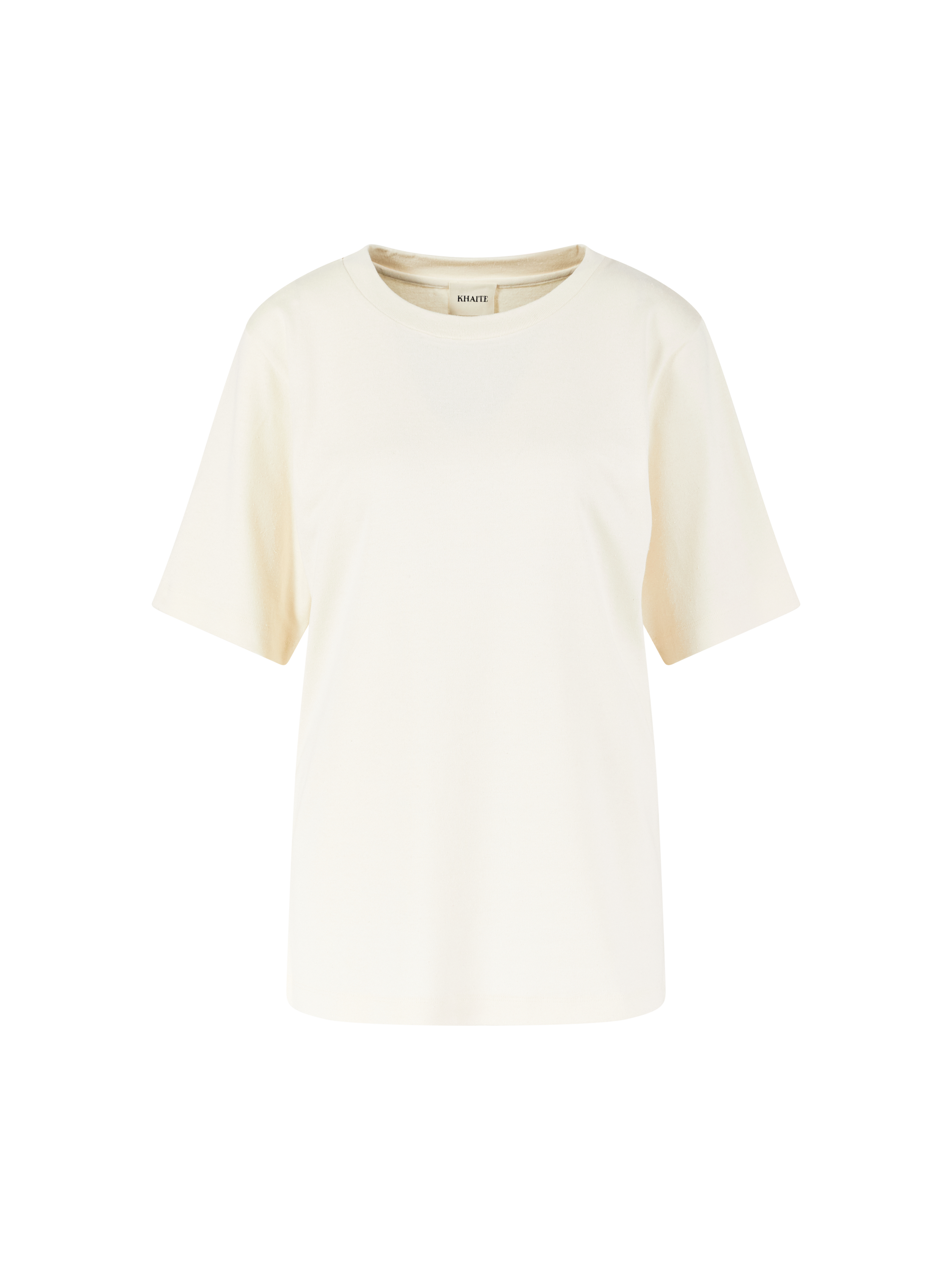 The 'Allen' T-shirt in cream by Khaite is made from high-quality silk and stands out with its slim silhouette. The round neckline, dropped shoulders and sleeves characterise this design.
