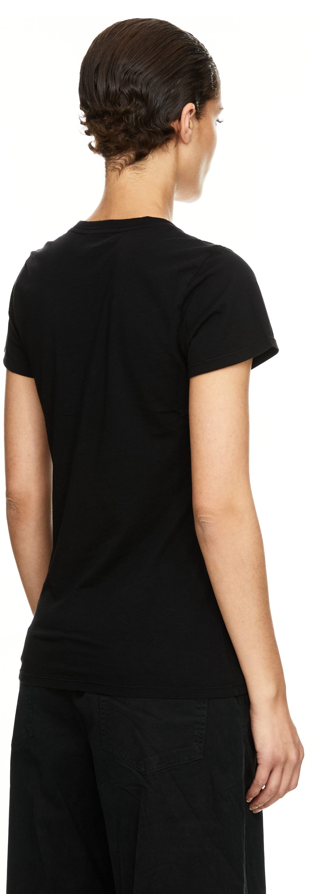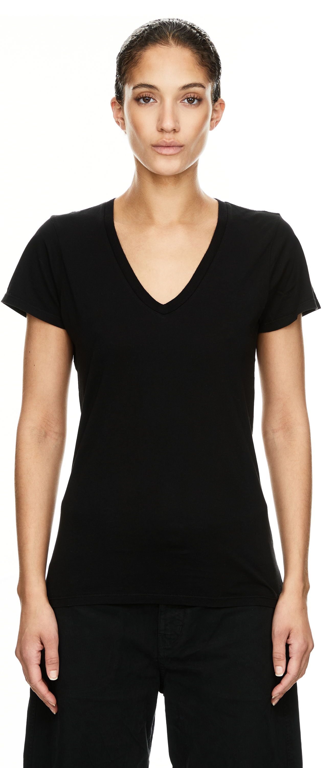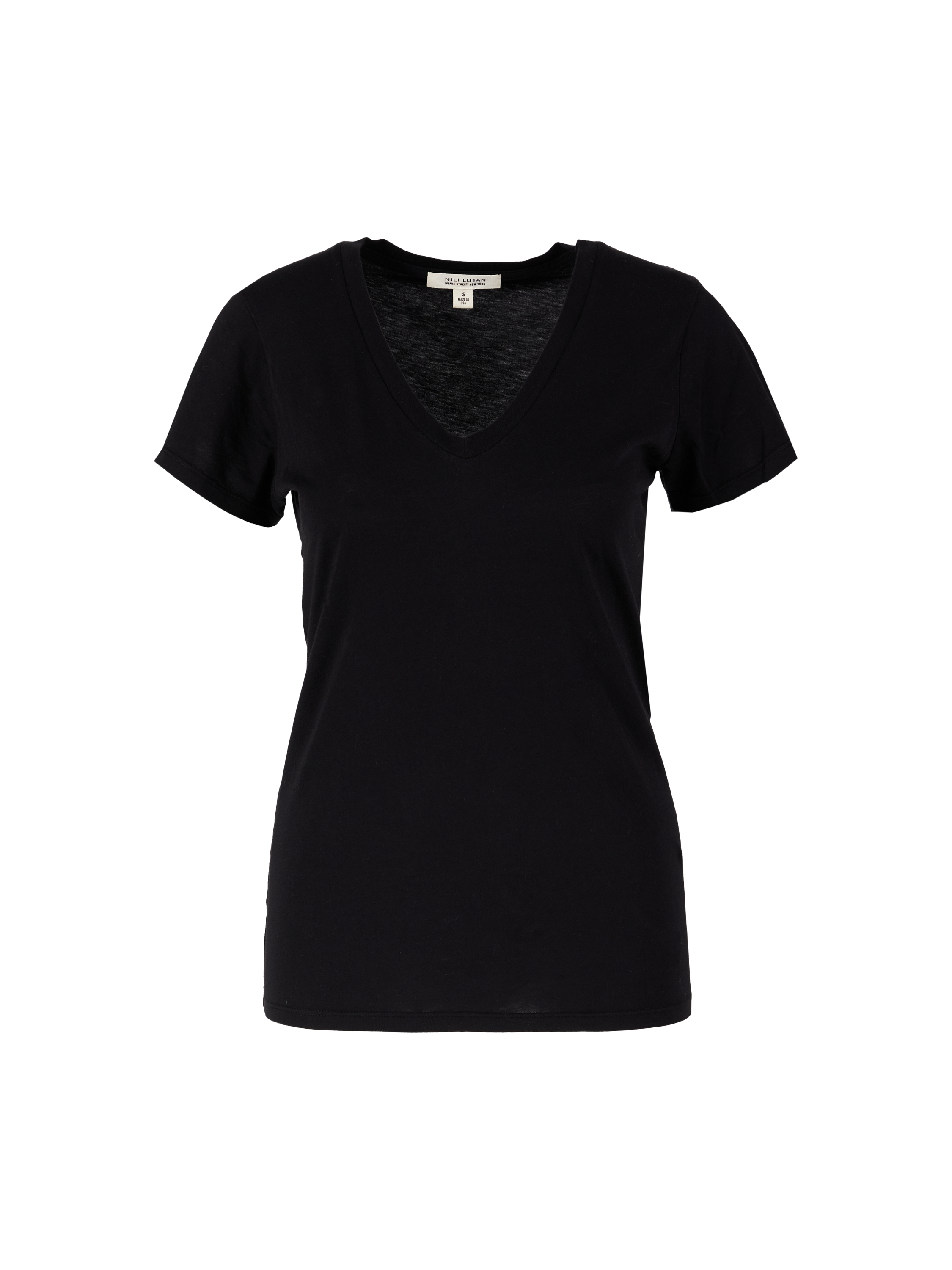 The 'Carol' T-shirt in black by NILI LOTAN is made from high-quality cotton and features a feminine V-neckline. The straight fit creates a timeless look, while the soft feel makes it comfortable to wear. This style is a versatile basic that can be combined perfectly.