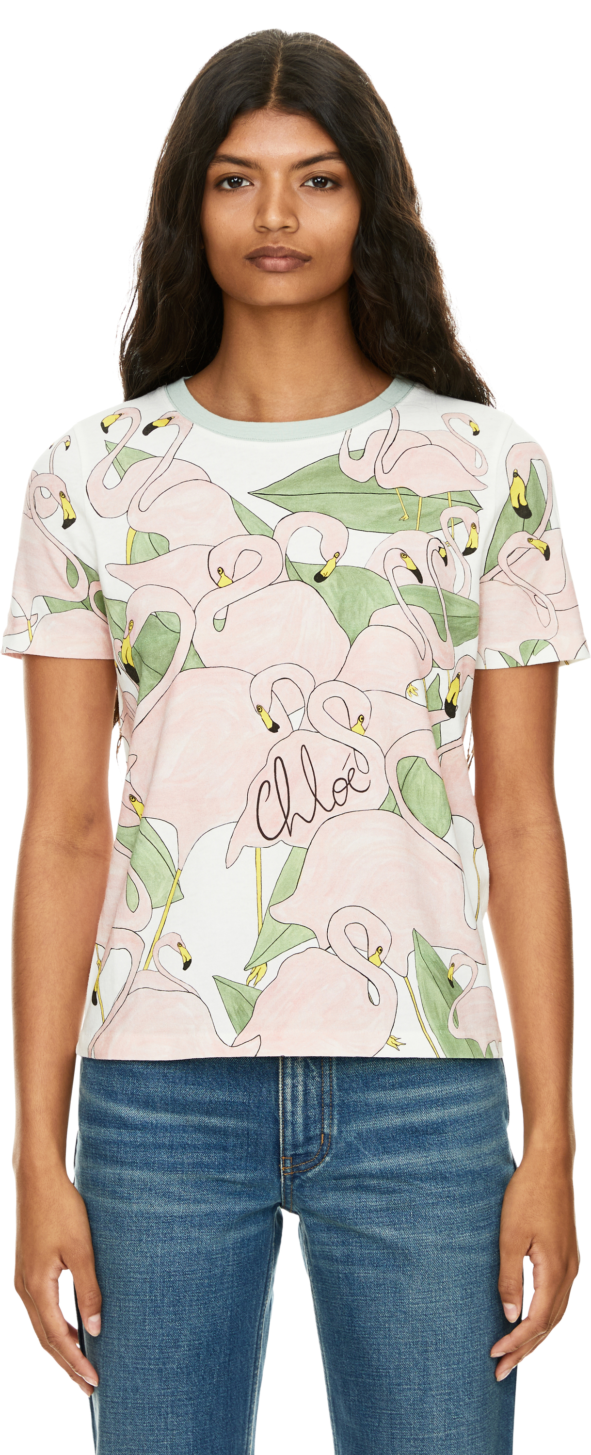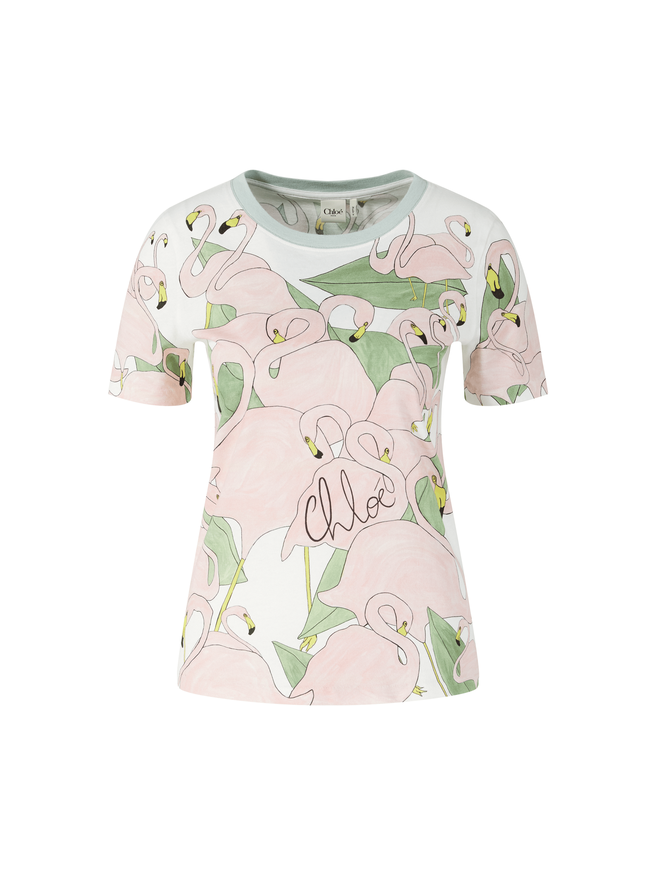 This multi T-shirt by Chloé is made from pure cotton and features a playful flamingo print with logo lettering. The straight fit gives the style a casual silhouette and makes it comfortable to wear. The contrasting round neckline adds a fresh pop of colour and rounds off the design harmoniously.
