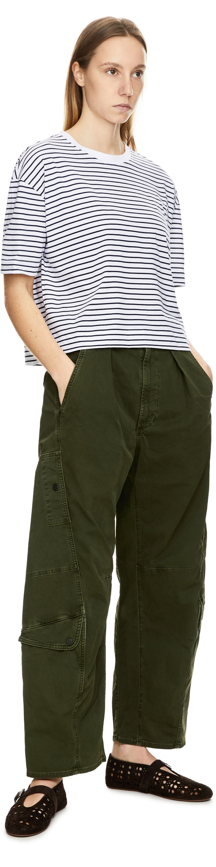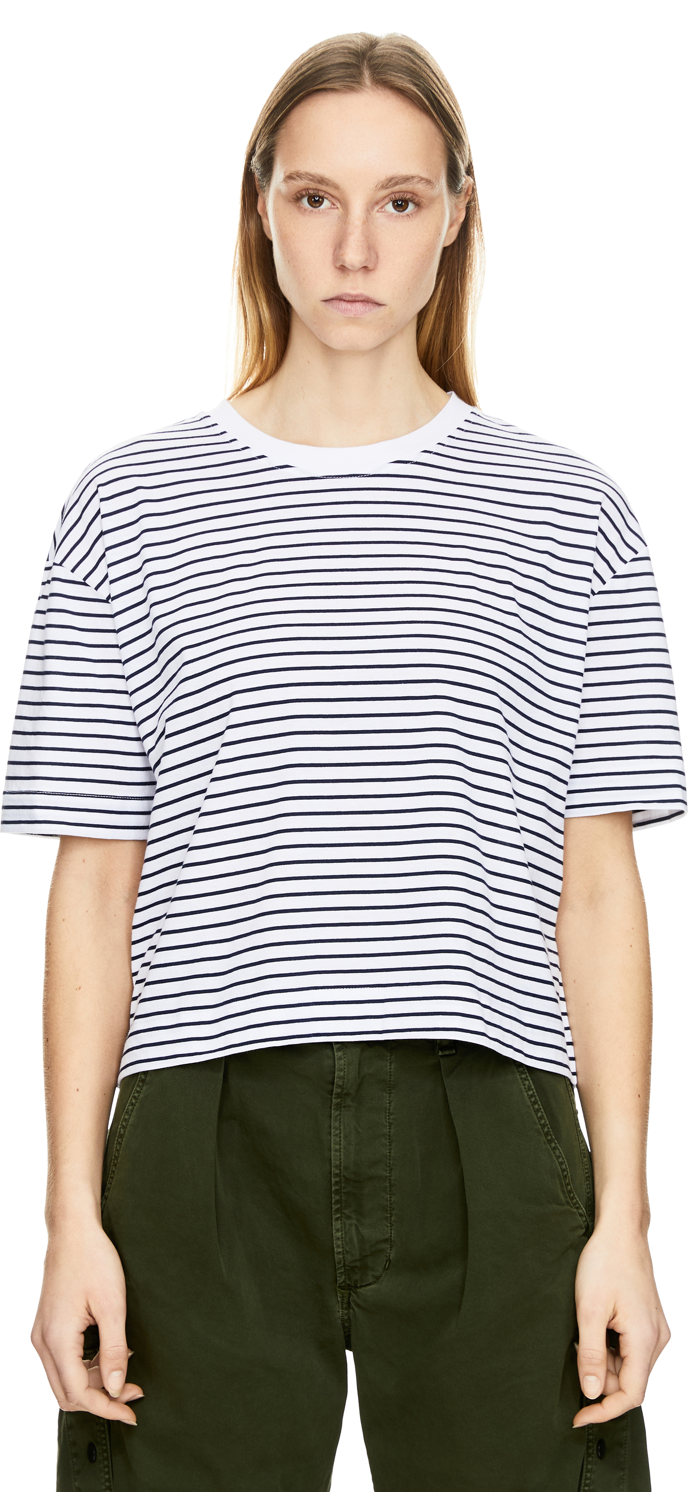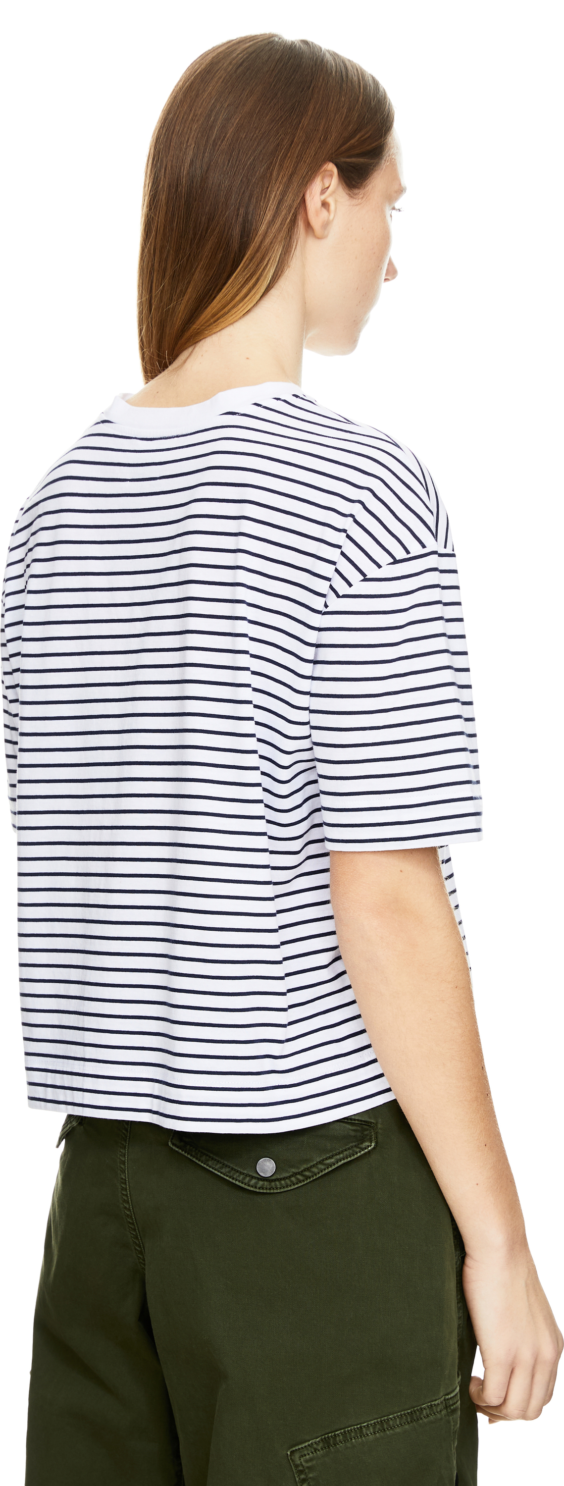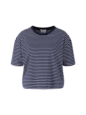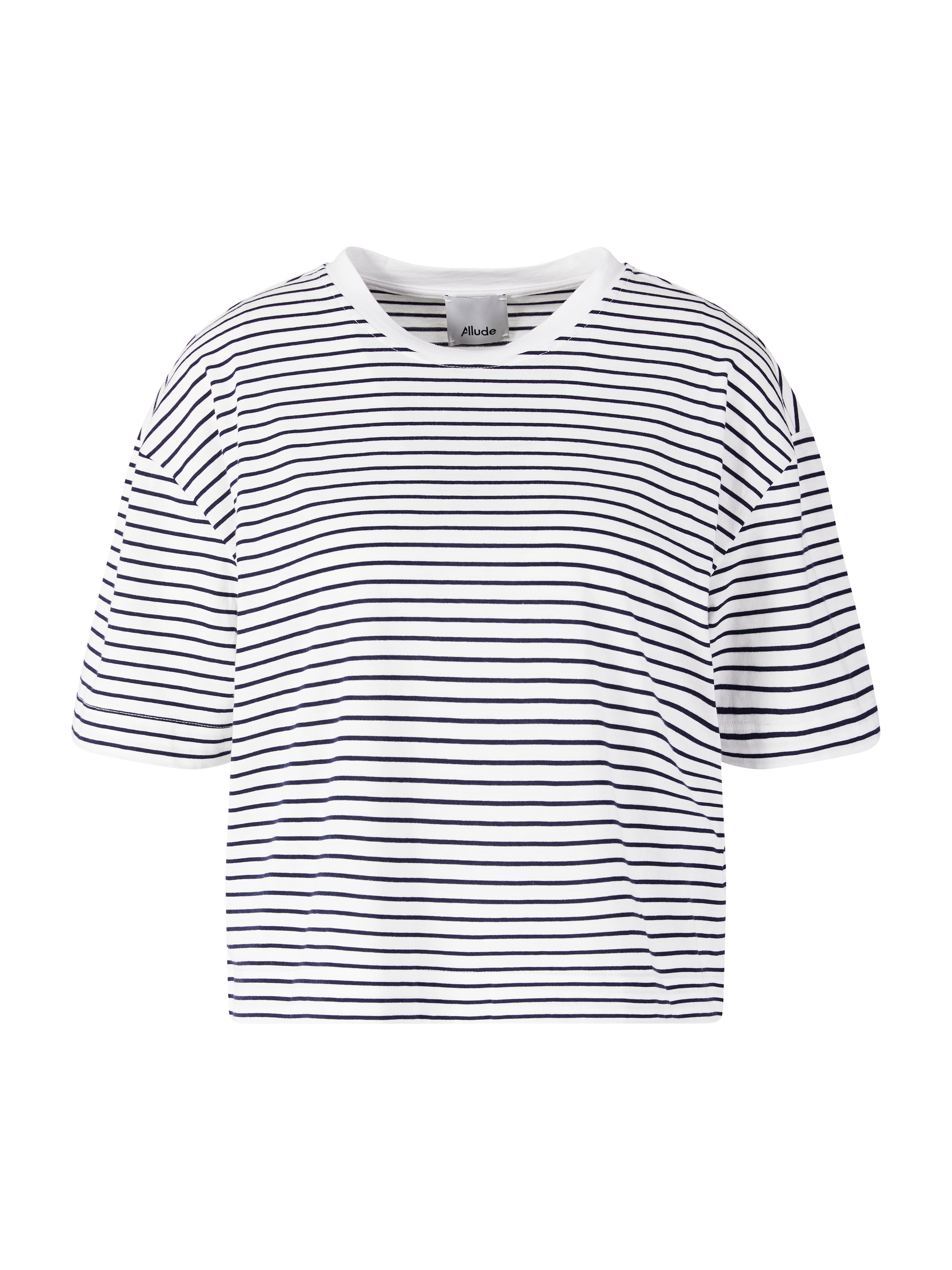This white T-shirt from Allude is made from pure cotton and impresses with its boxy fit. The short sleeves, round neckline and striped pattern make this style a special classic.