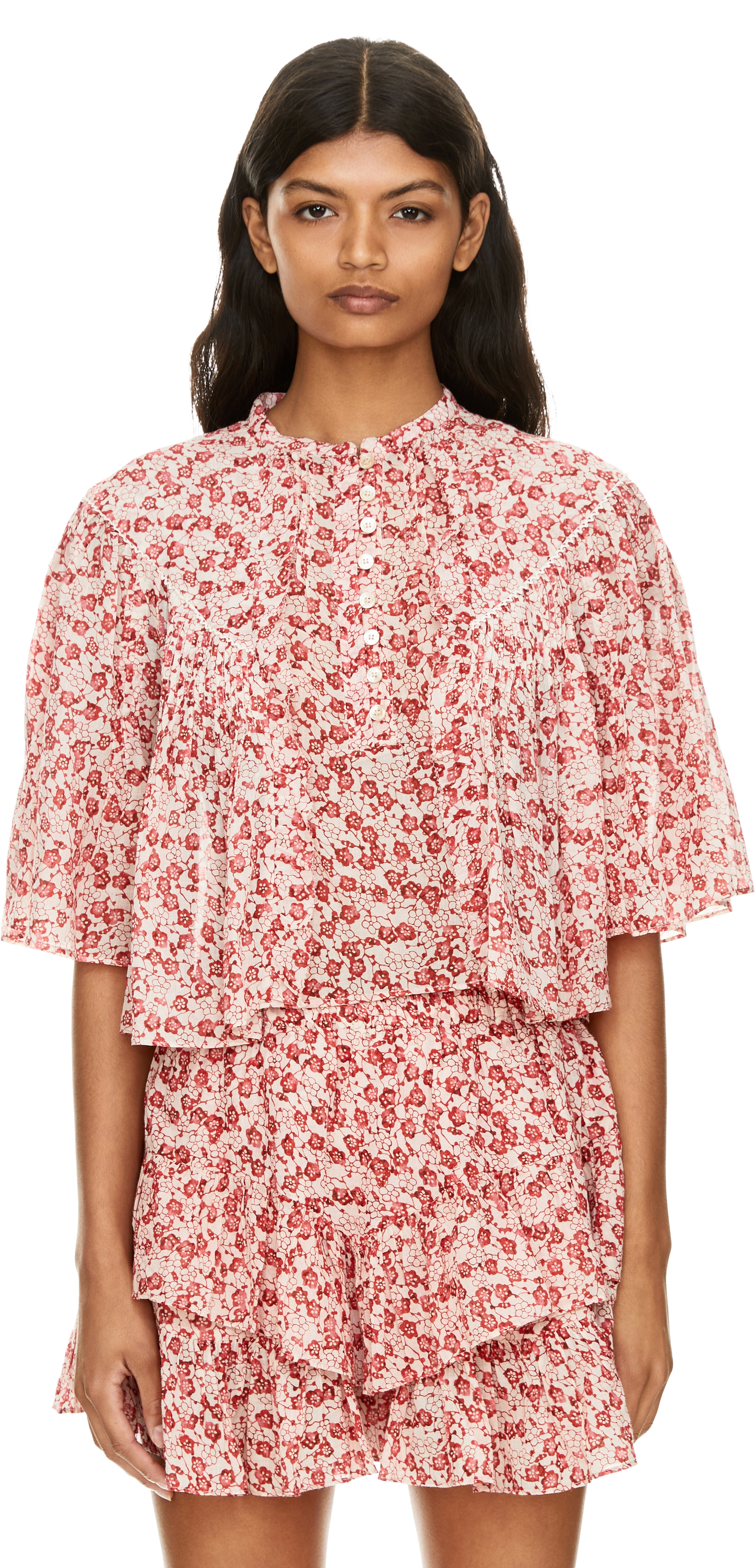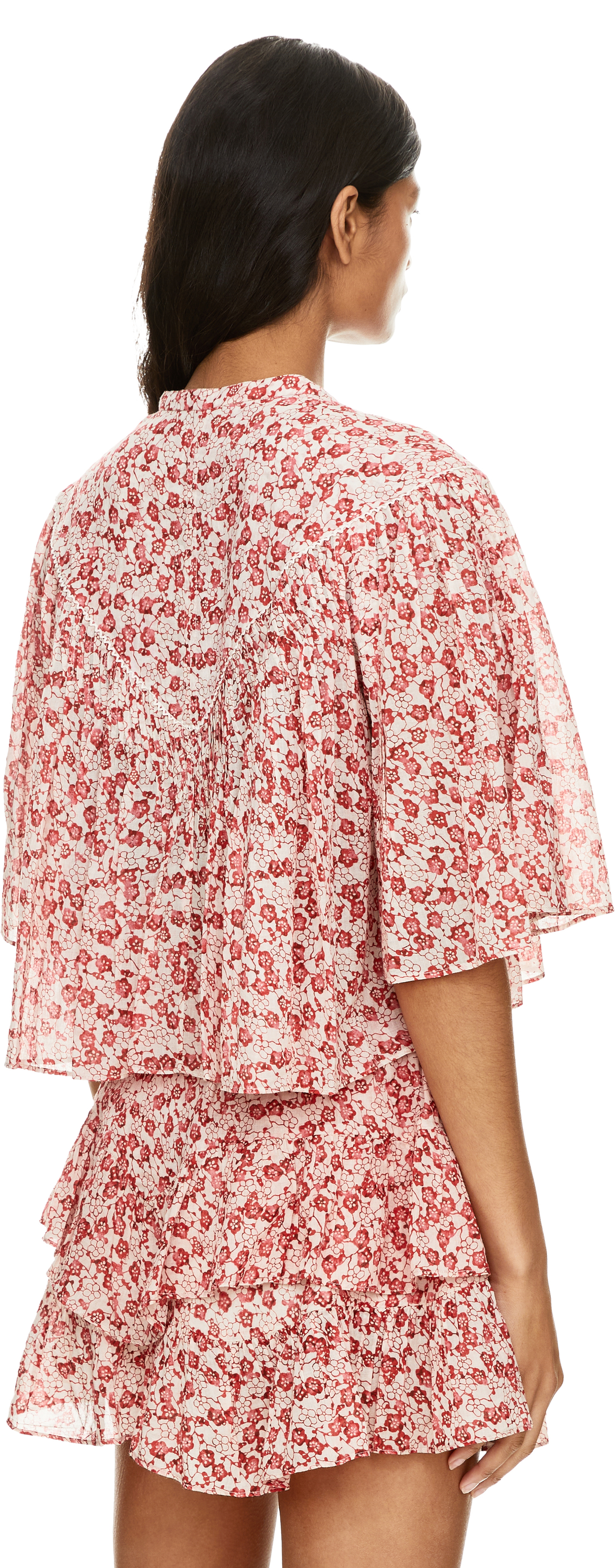 The 'Veelia' top in red by Marant Étoile is made from pure cotton and stands out with its pleated details. The button fastening with embossed logo, the flowing 3/4-length sleeves and the ruffled hem give the top a feminine touch.