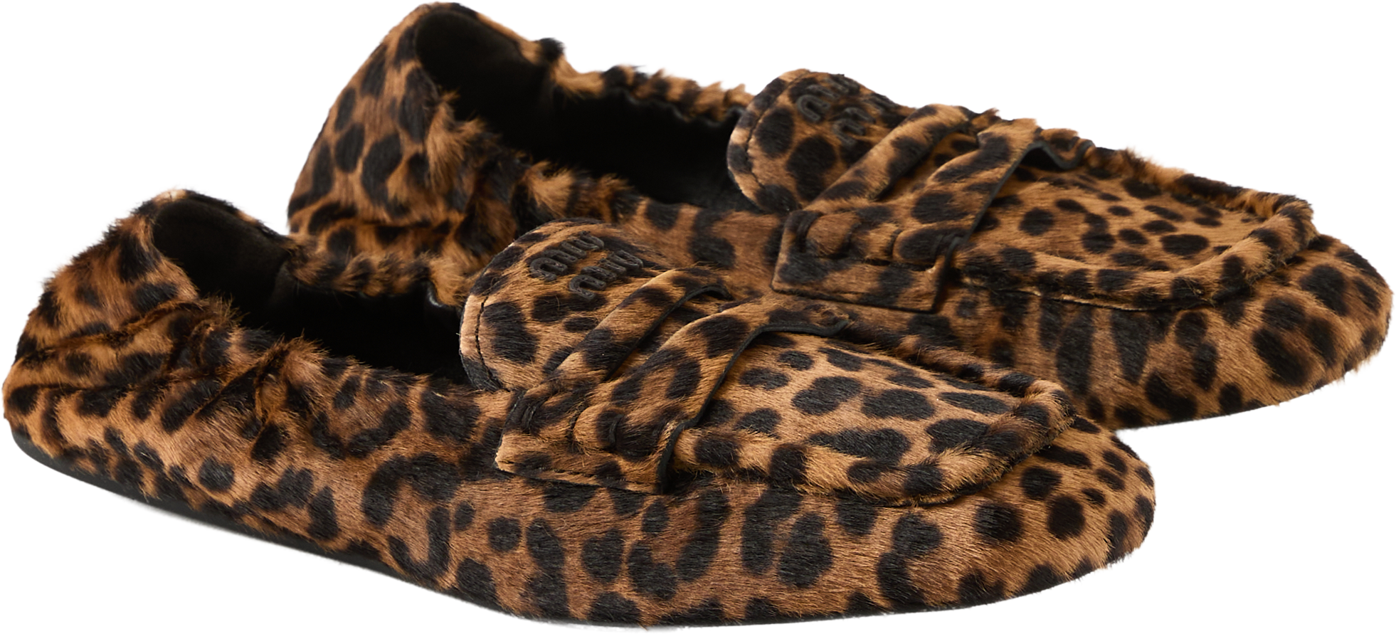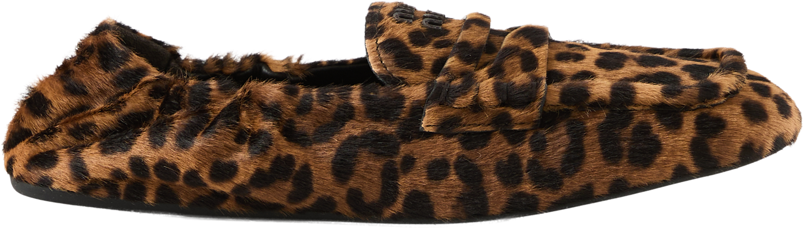 These brown moccasins by miu miu are made from high-quality calf hair and feature a striking leopard print. The logo lettering on the tongue and the tonal vamp add subtle accents. The flexible rubber sole and elasticated heel ensure a high level of comfort, while the ultra-lightweight design makes the model particularly pleasant to wear.