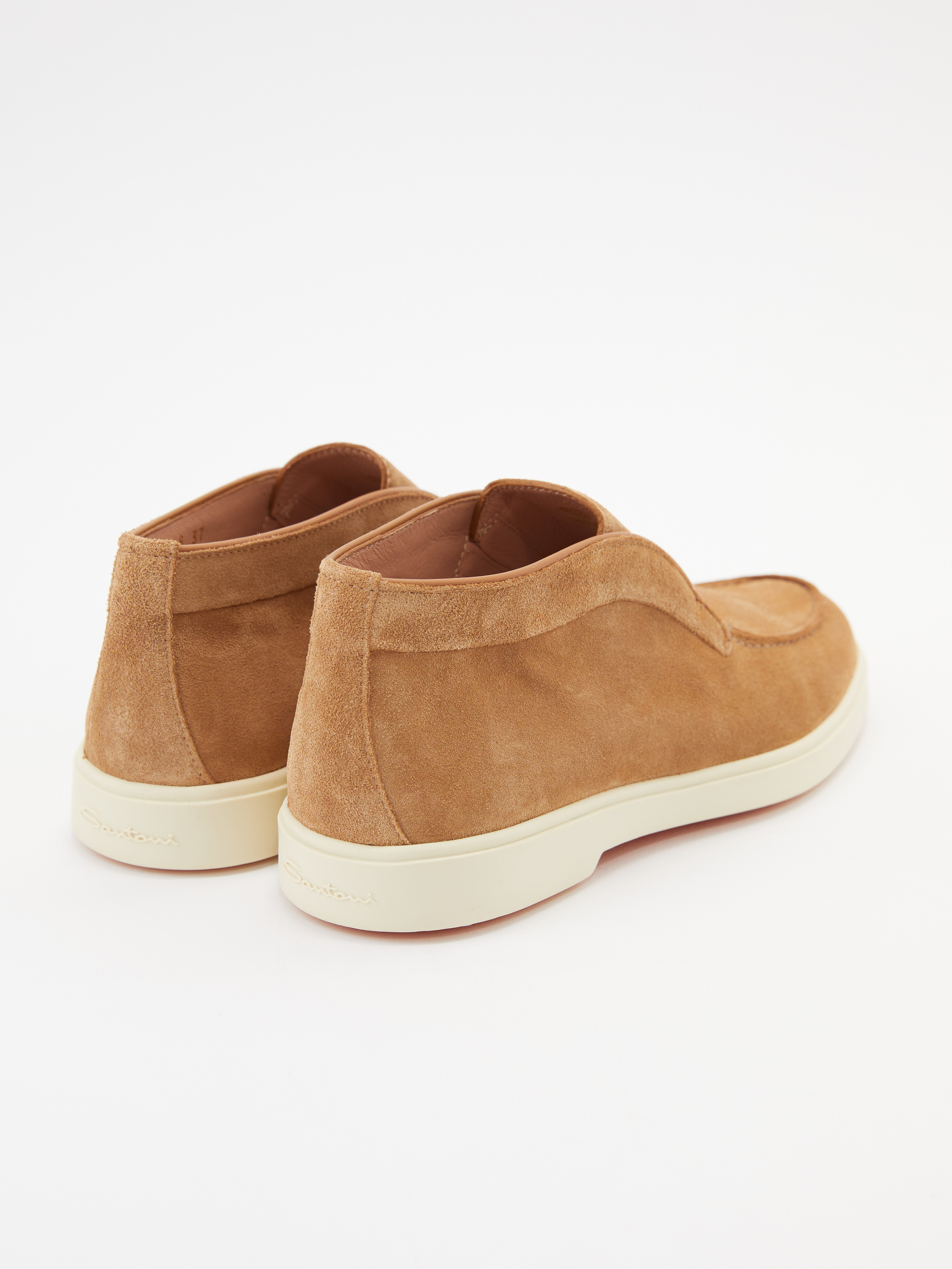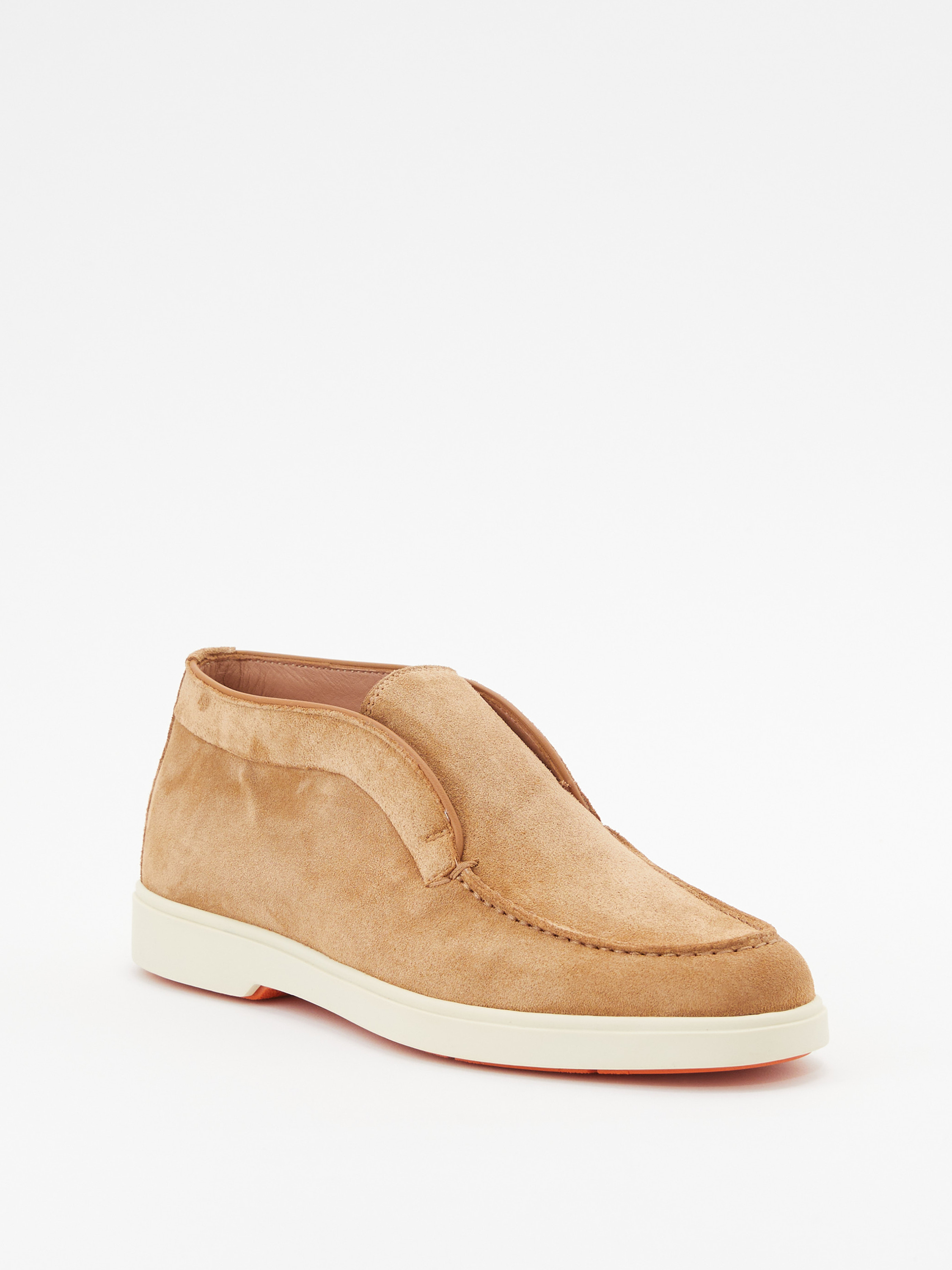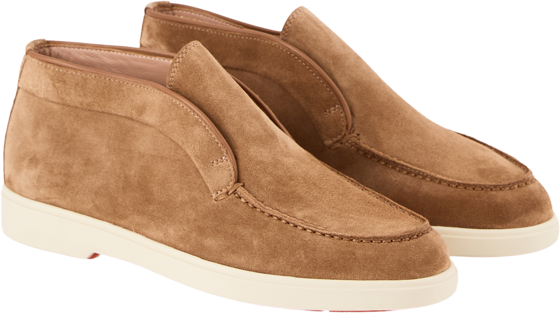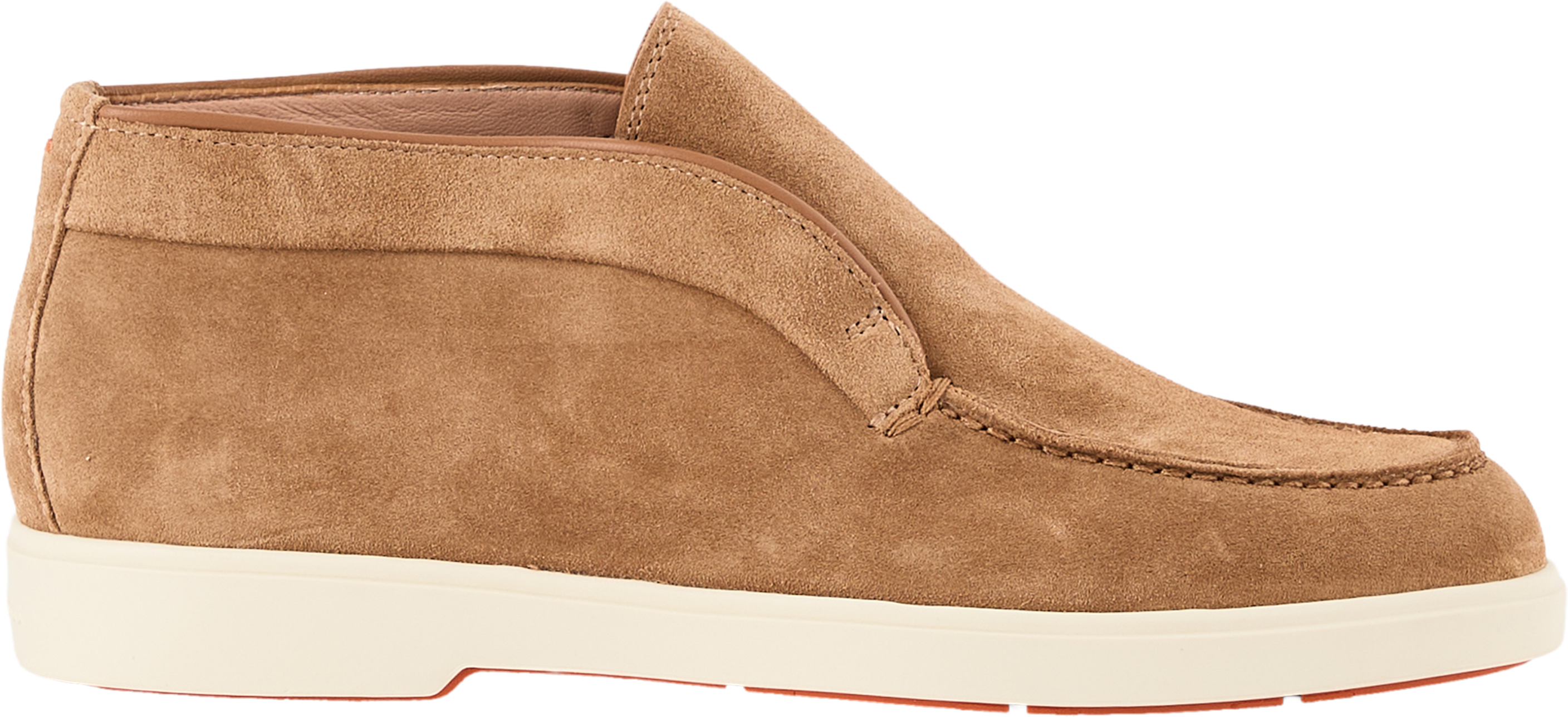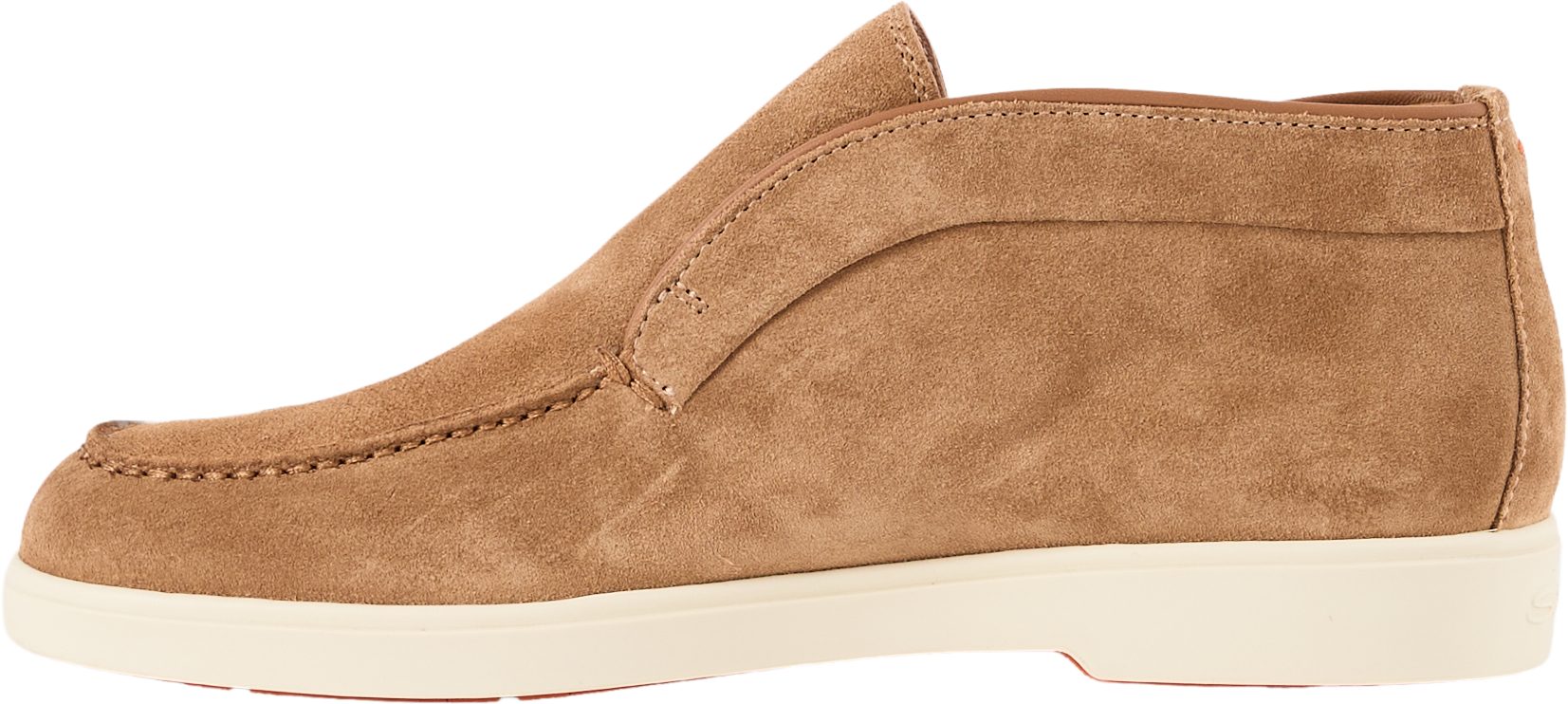 These desert boots in light brown from Santoni are made from high-quality calf suede and impress with their classic style and high level of comfort. The sophisticated design radiates timeless elegance, while the flexible and non-slip sole ensures a pleasant walking sensation. The soft feel and the upper, which makes it easy to slip on, make this model the perfect companion for every day.