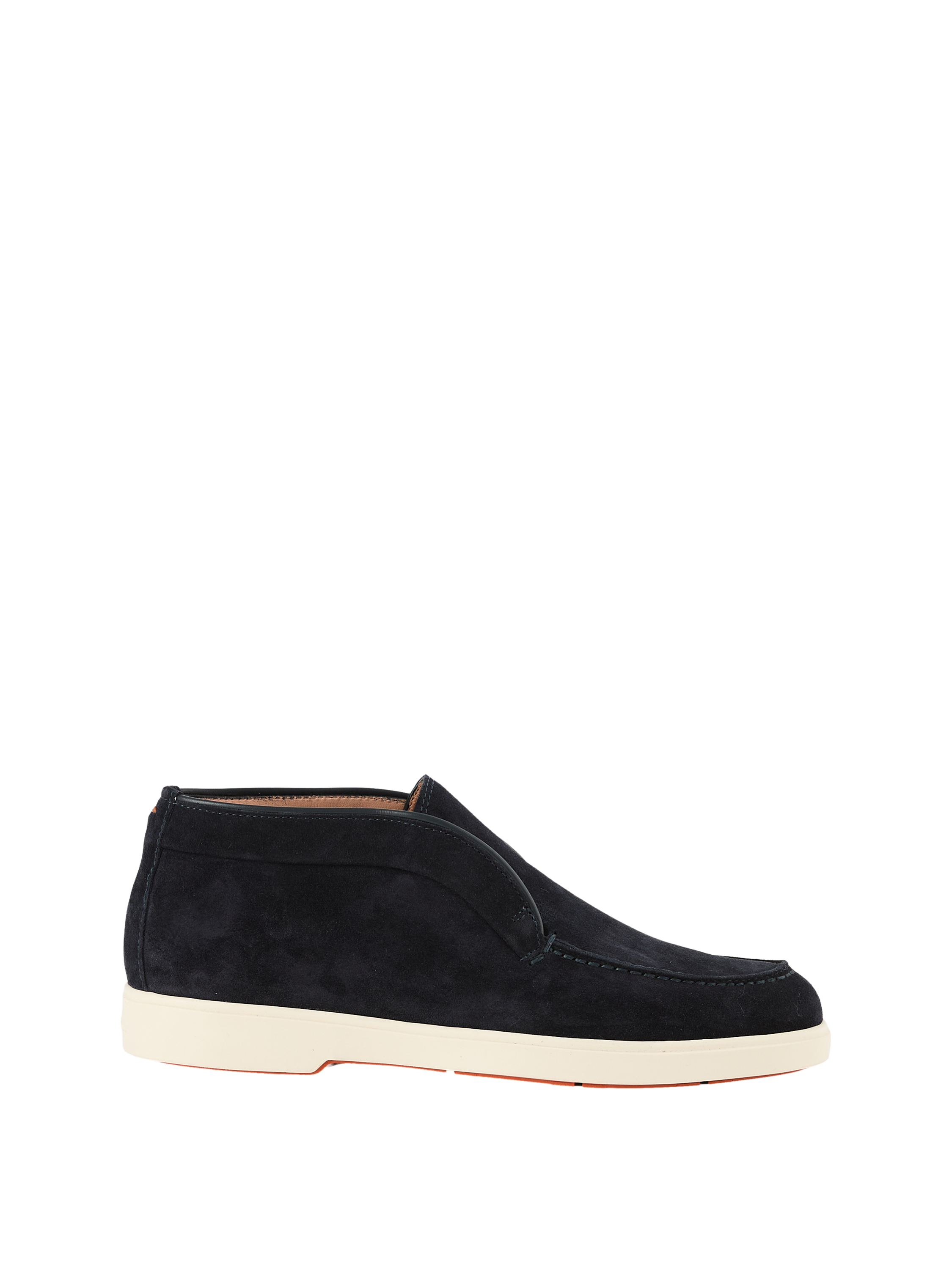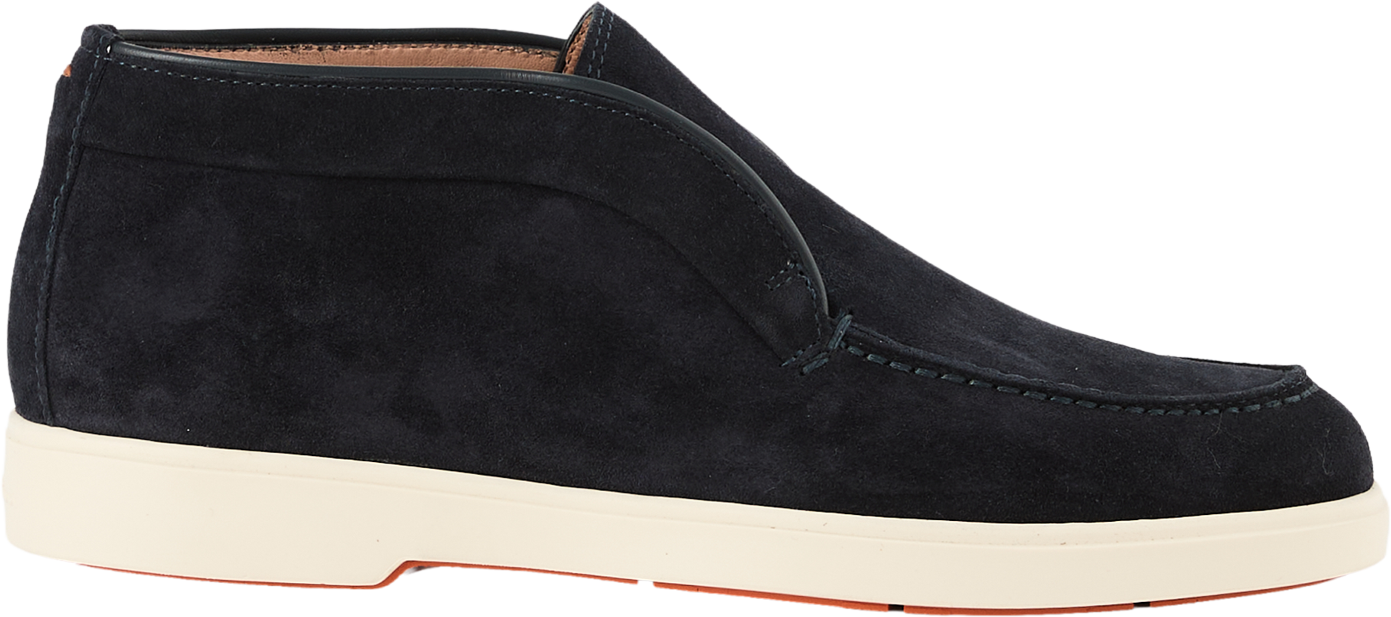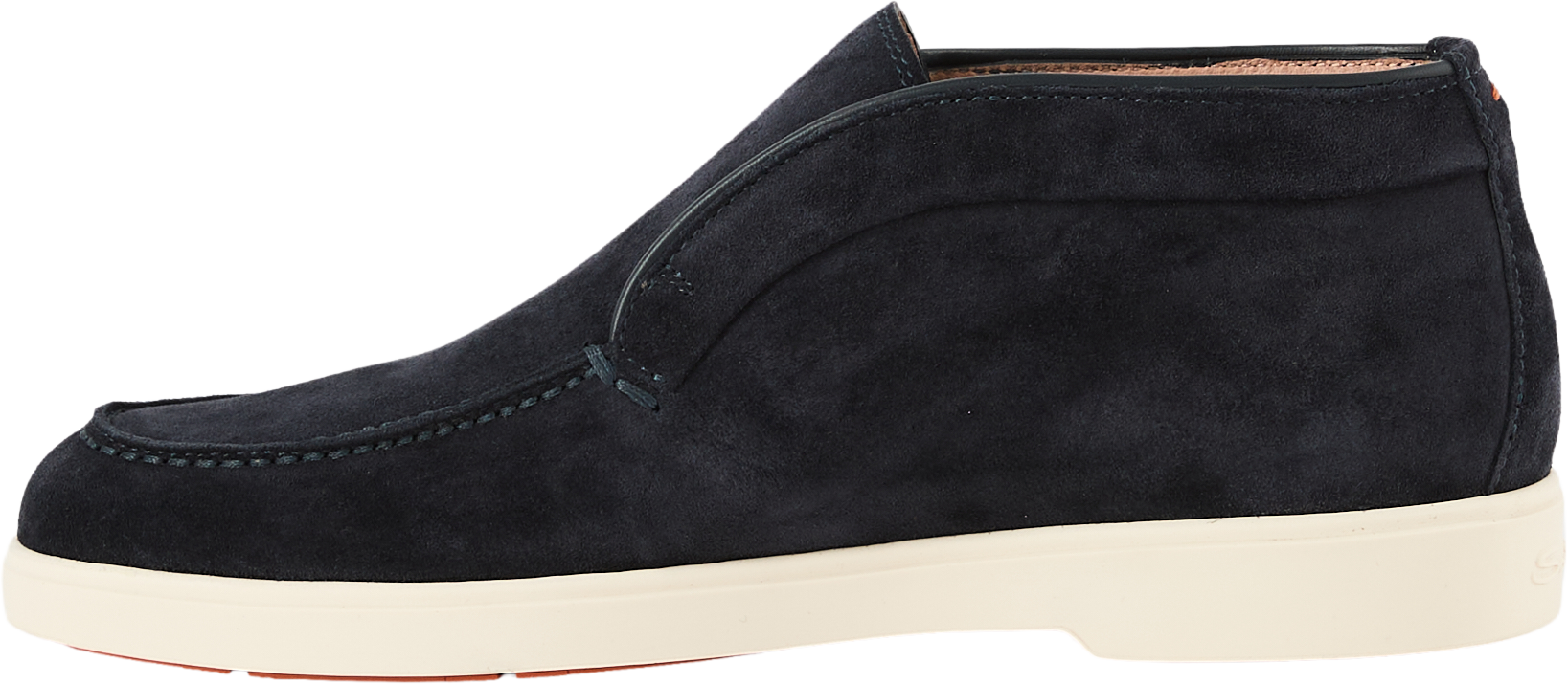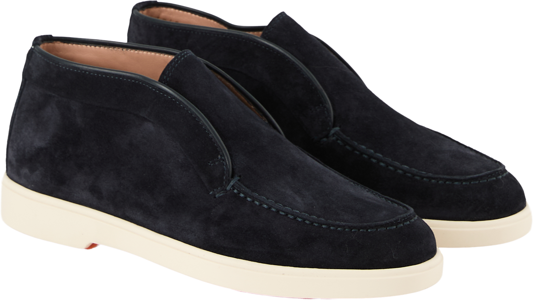 These navy blue desert boots from Santoni are made from high-quality calf suede and impress with their classic style and high level of comfort. The sophisticated design radiates timeless elegance, while the flexible and non-slip sole ensures a pleasant walking sensation. The soft feel and the upper, which makes it easy to slip on, make this model the perfect companion for every day.