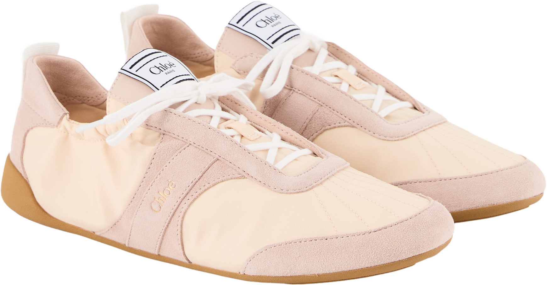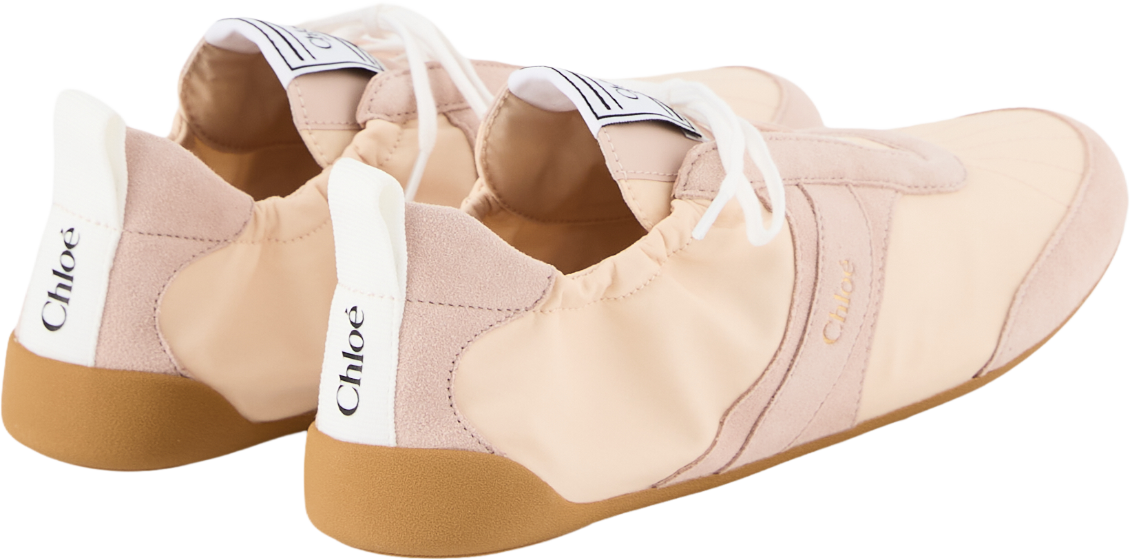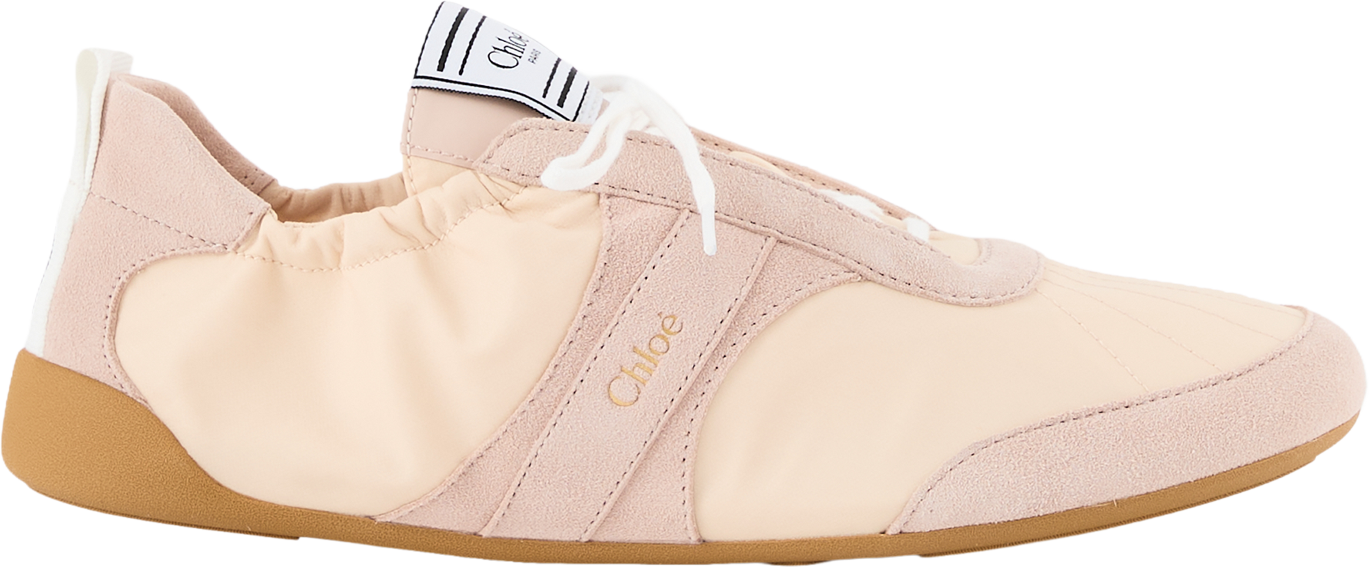 The 'Kick' trainers in blushy beige from Chloé are made from a cotton-nylon blend and impress with their ultra-light silhouette. The Chloé logo on the side and back strap and the Chloé label emphasise the high-quality design.
