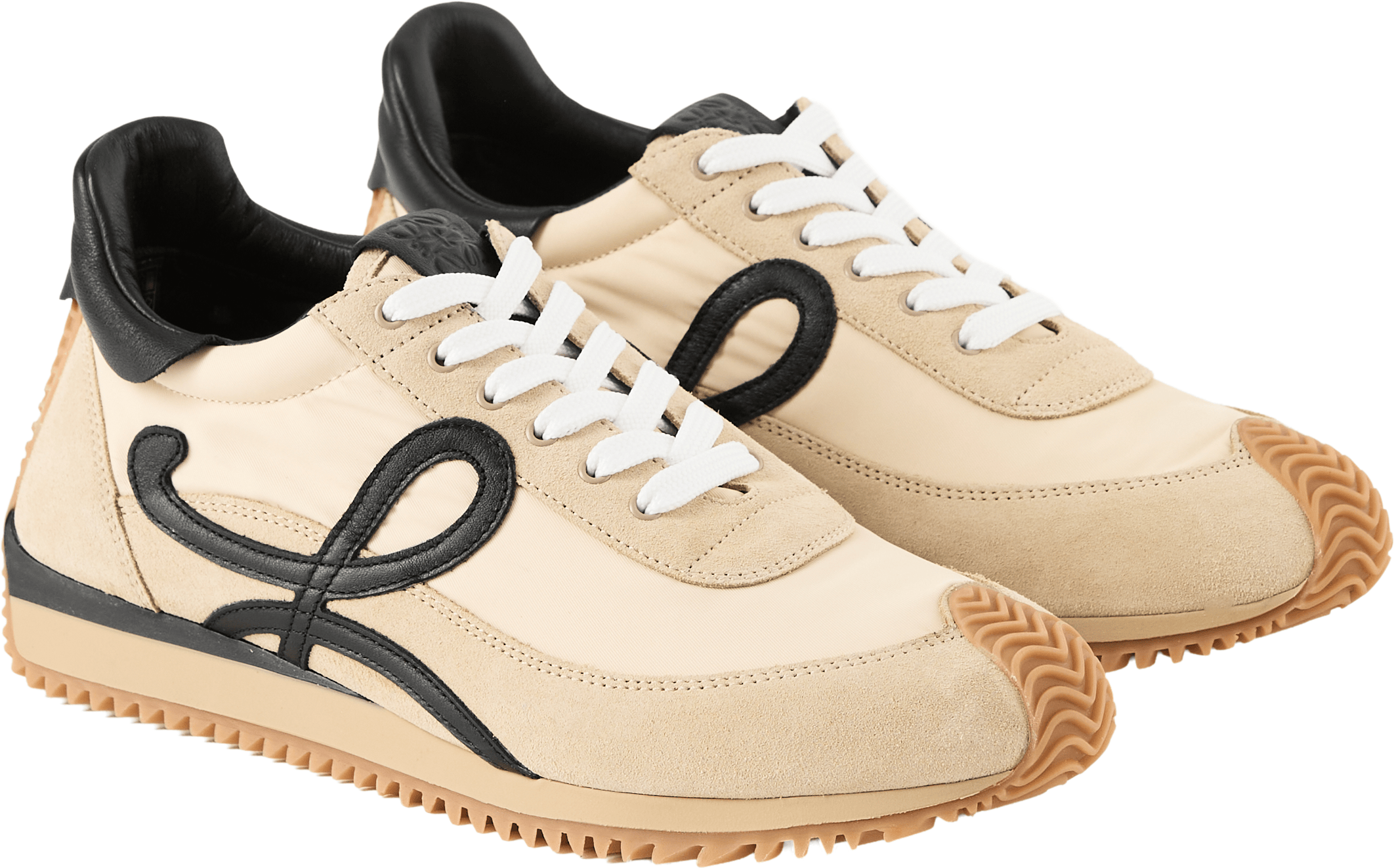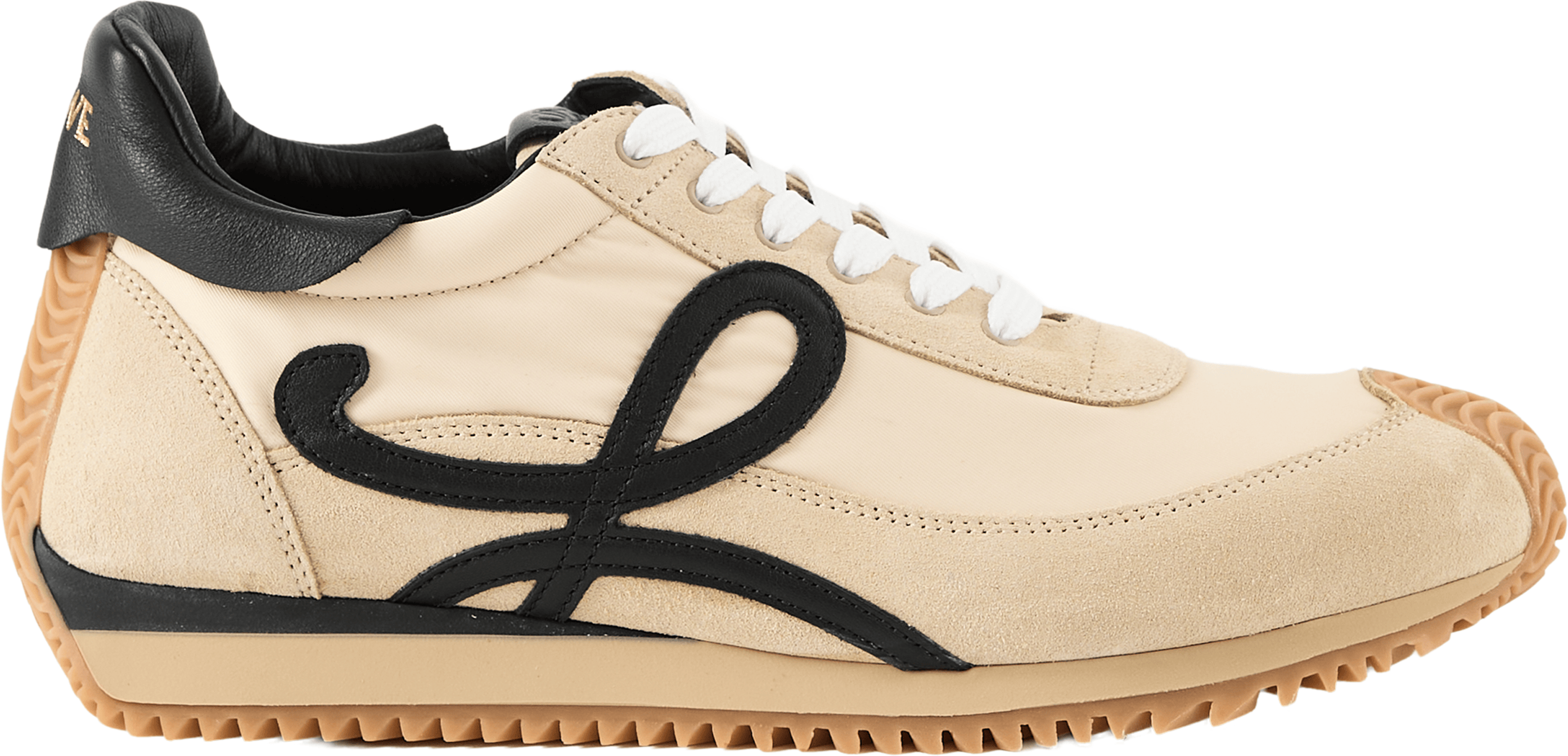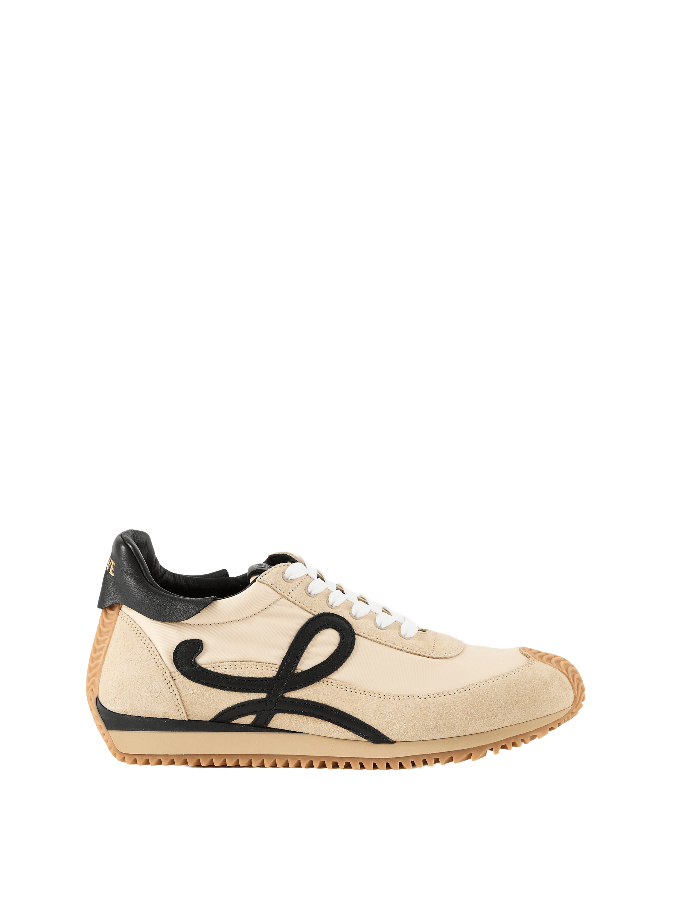 The 'Flow Runner 2' trainers in gold by LOEWE are crafted from nylon and suede and feature a sporty design. The L monogram on the side, the embossed anagram on the tongue and the LOEWE embossing on the heel tab are the hallmarks of this model.