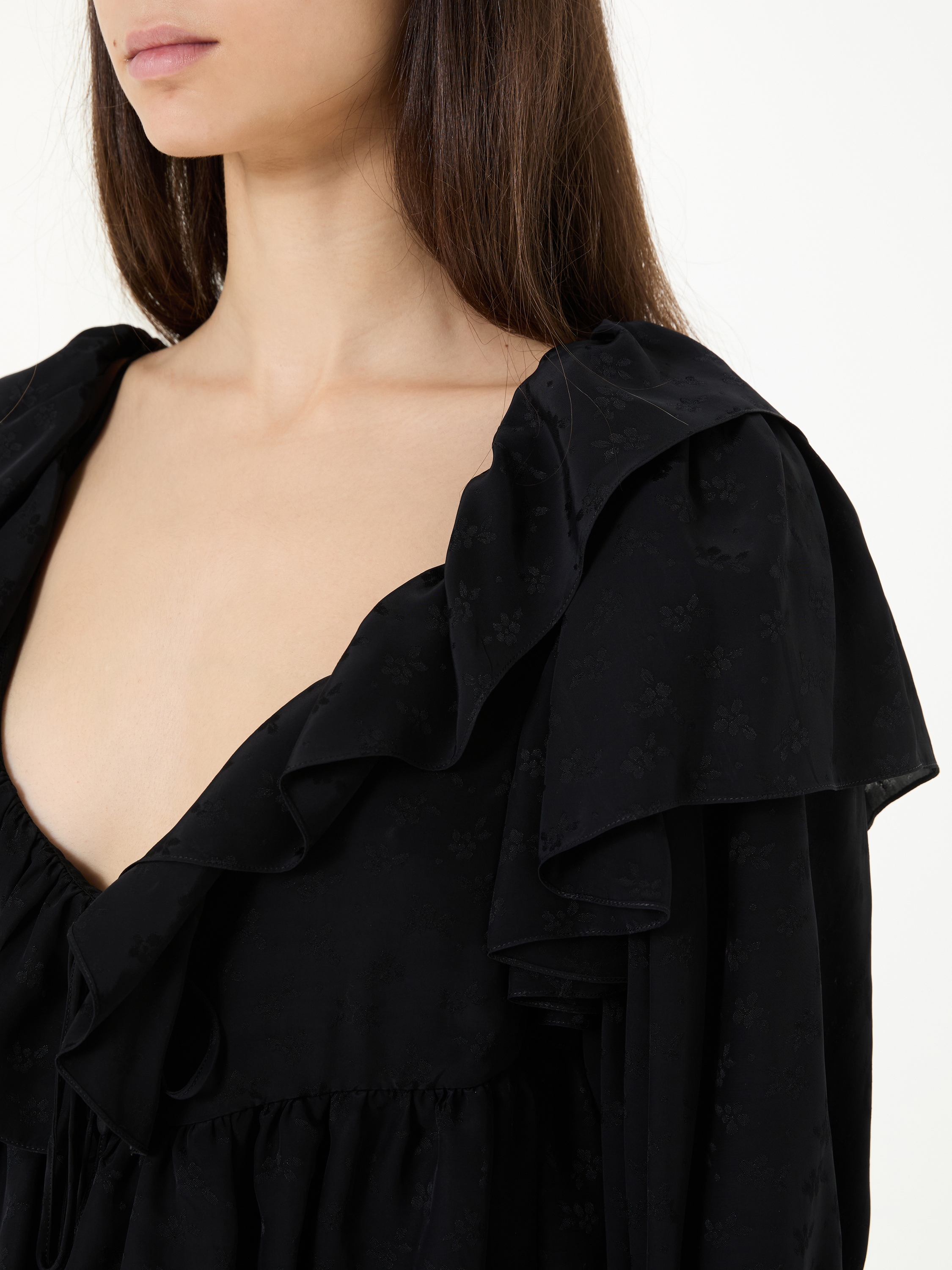 Diese Bluse in Schwarz von Chloé wurde aus hochwertigen Materialien gefertigt und besticht durch die Rüschen. Die Kordelzügen und die lockere Passform zeichnen diesen femininen Look aus.