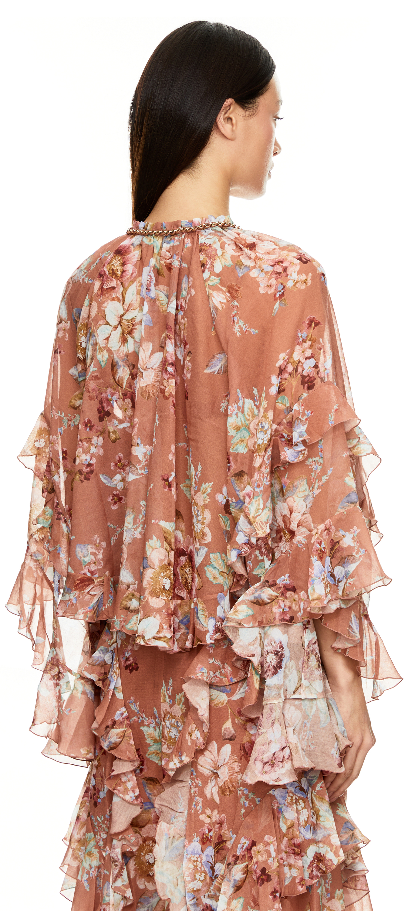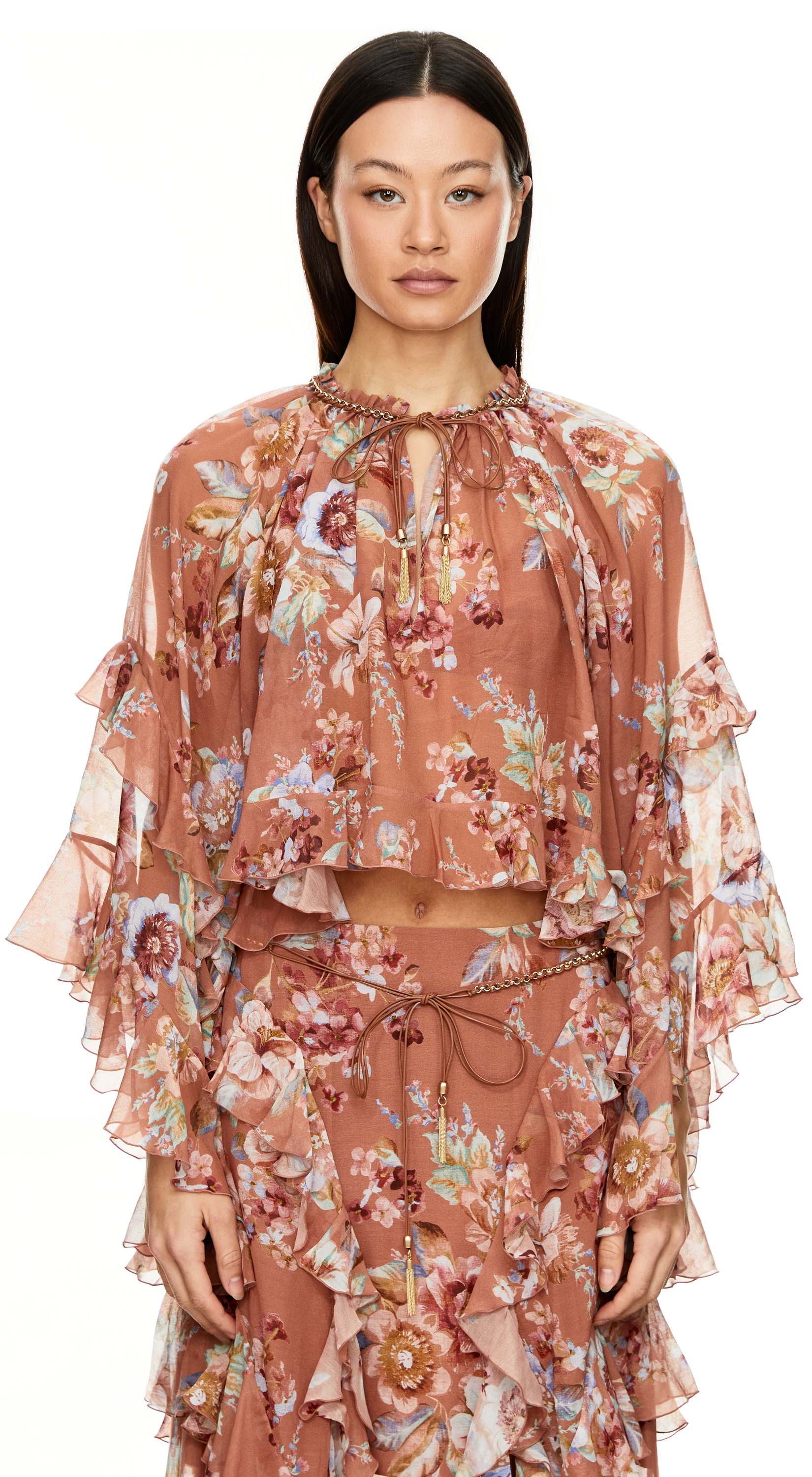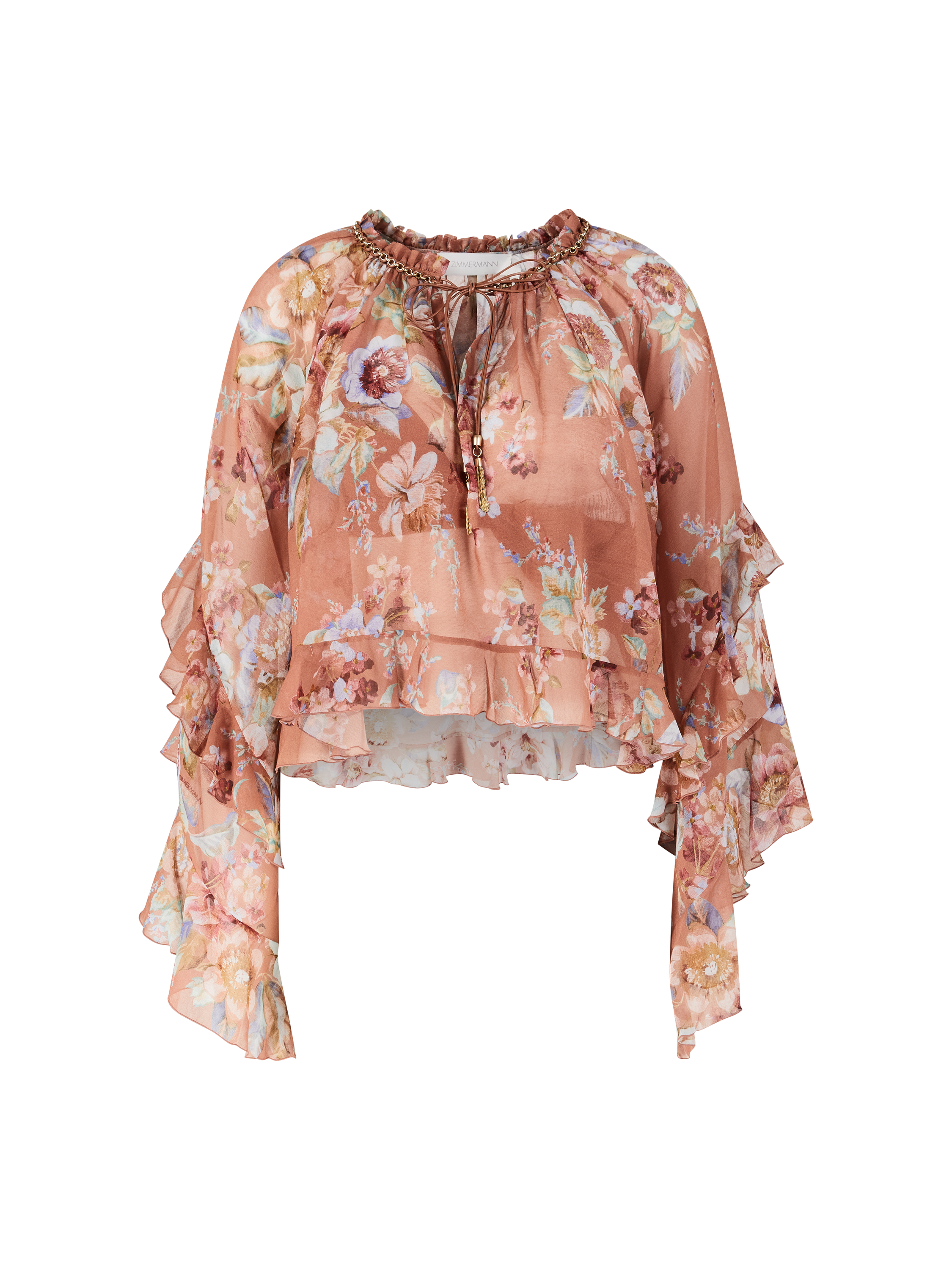 Die Bluse 'Awaken' in Braun von Zimmermann wurde aus einer Seidenmischung gefertigt und besticht durch das Makramee-Detail. Der Kordelzugverschluss, die asymmetrischen Ärmel sowie der Rückenbesatz runden den Look stilvoll ab.