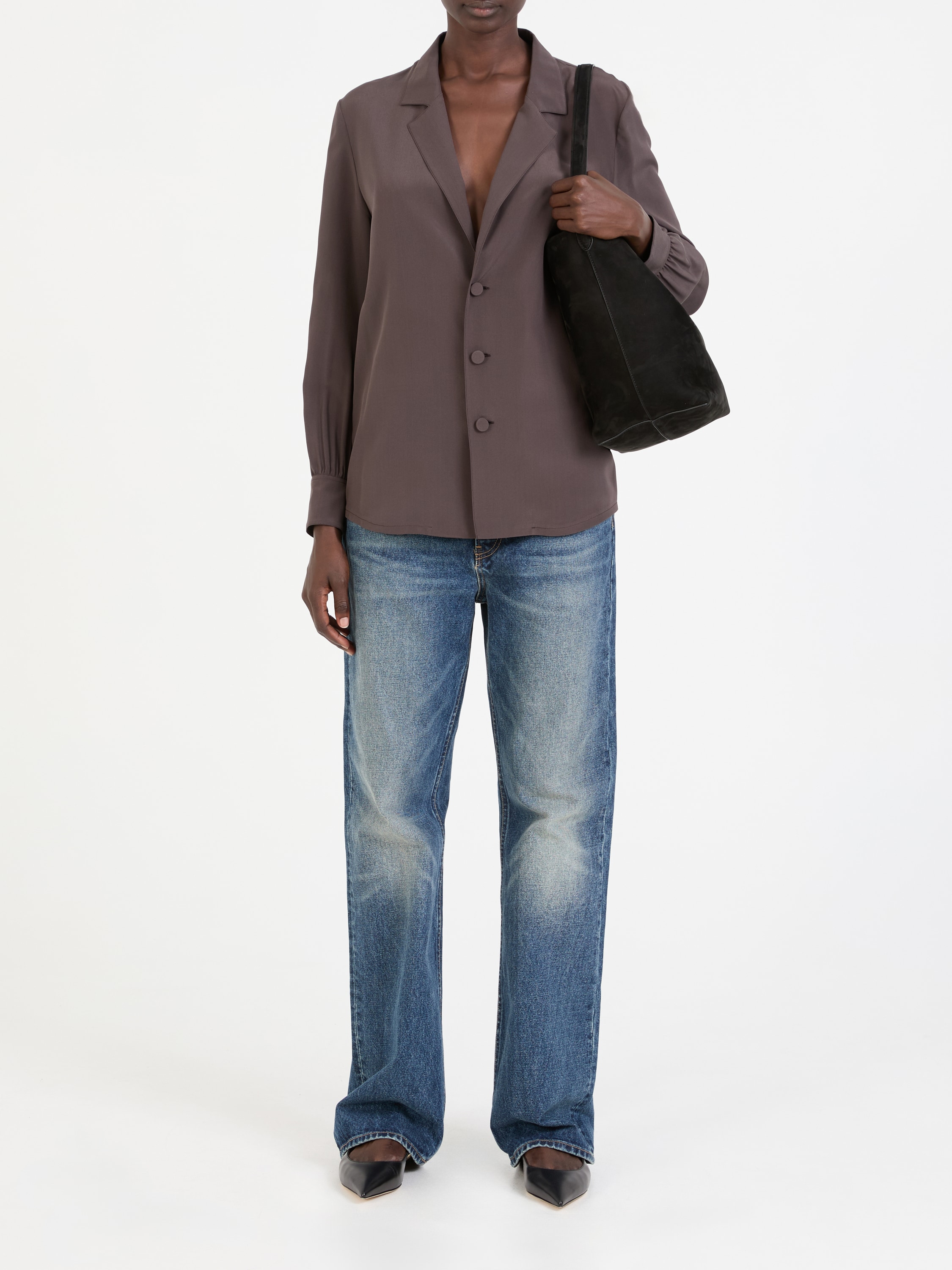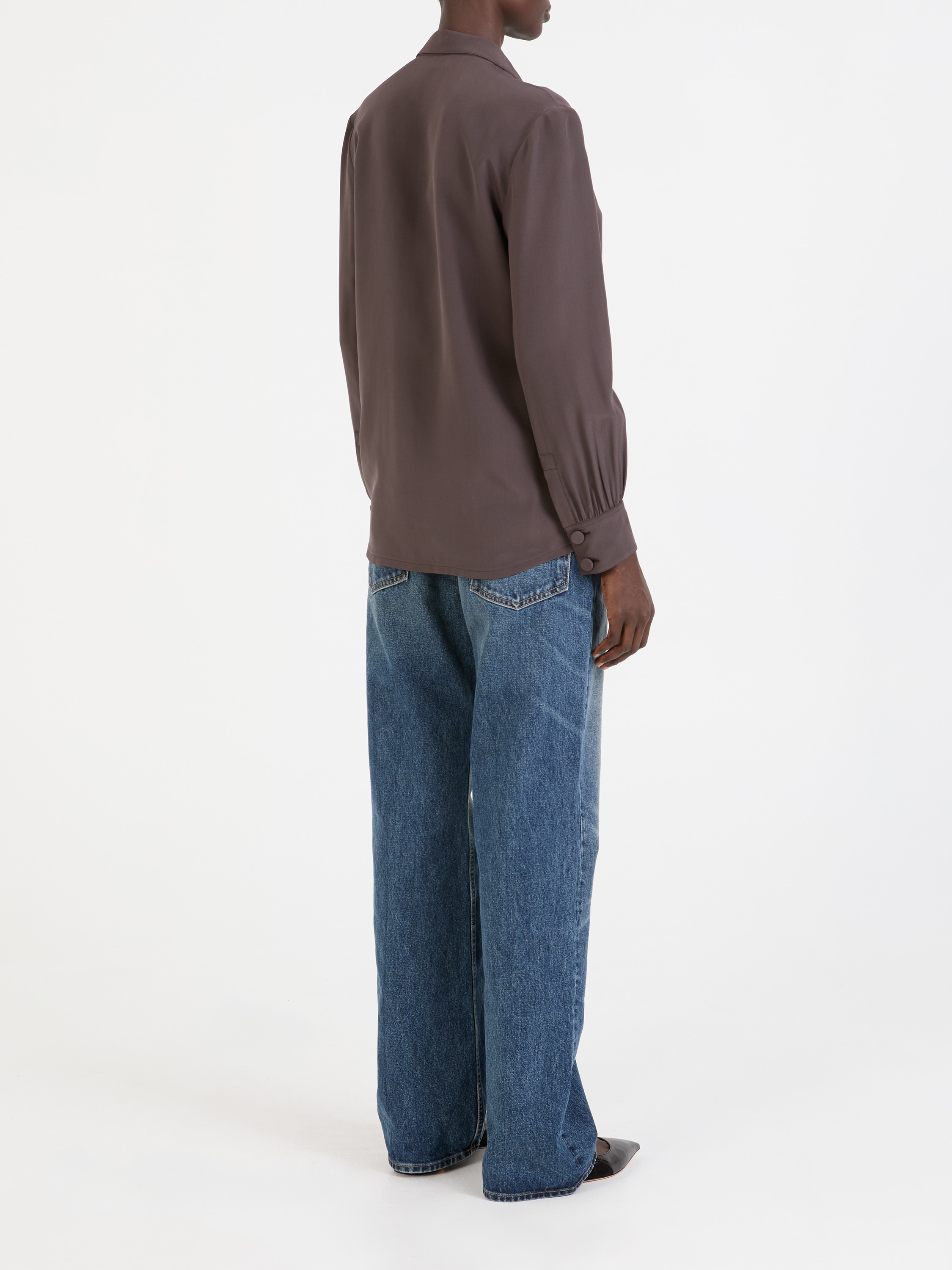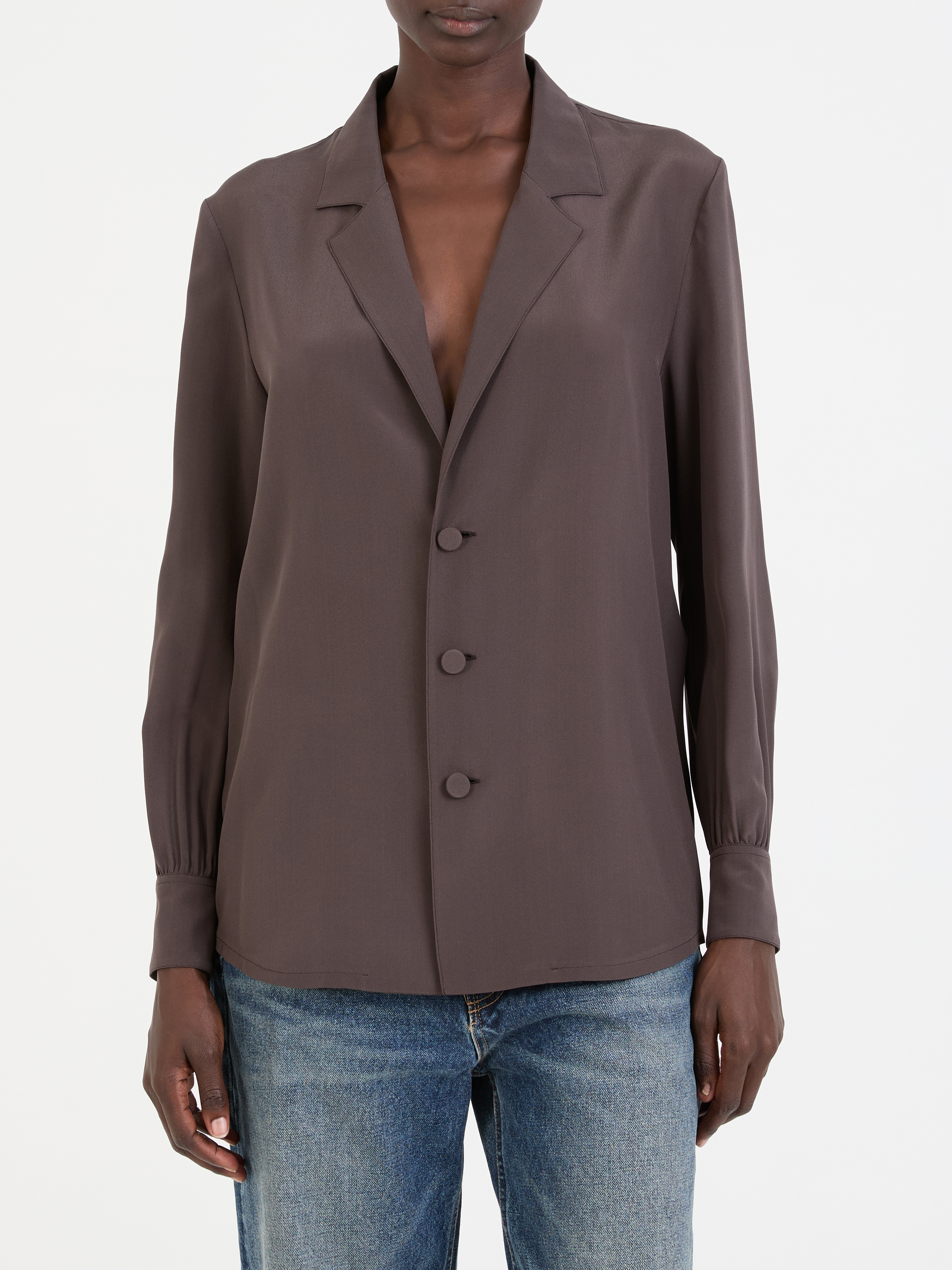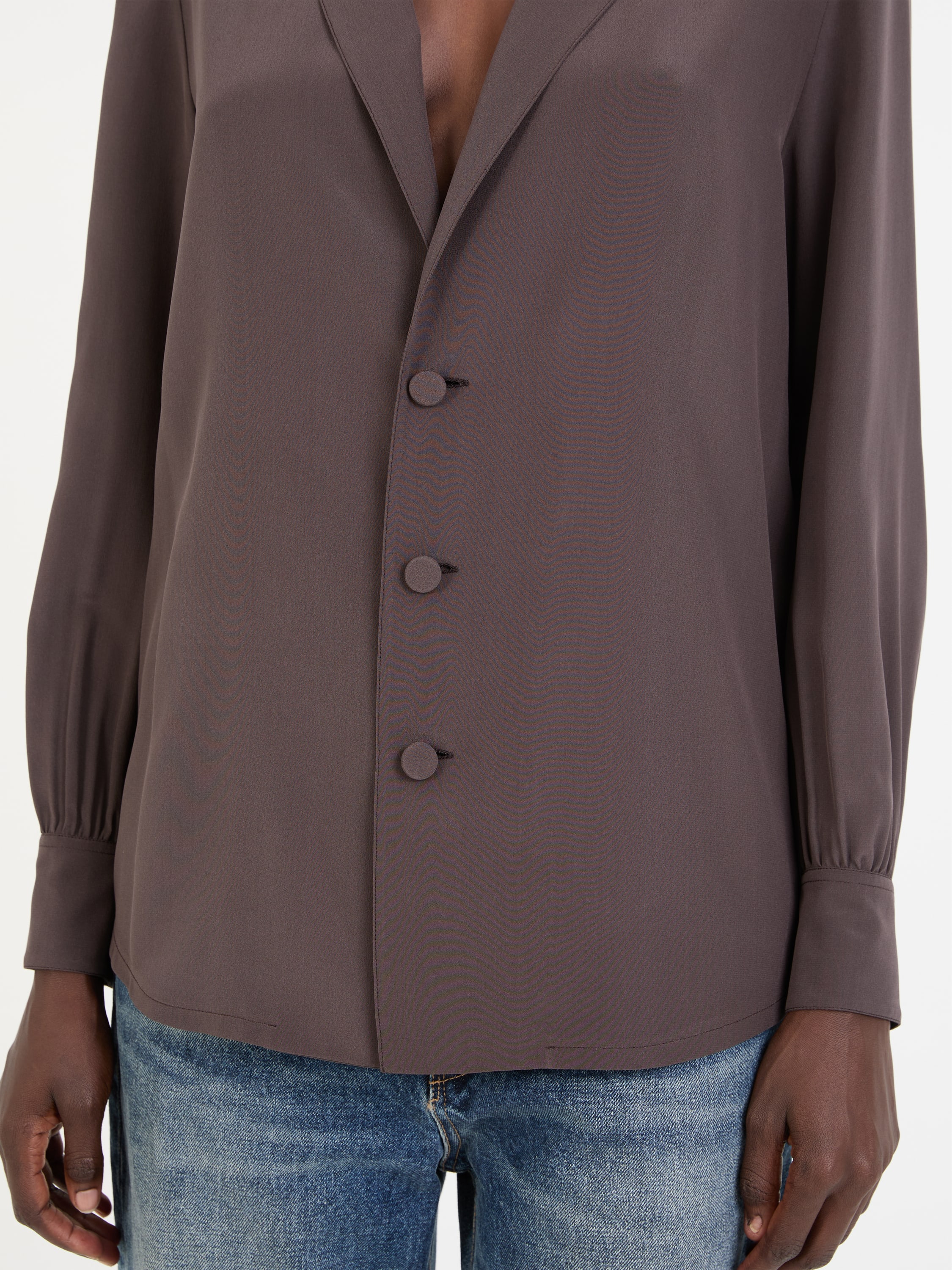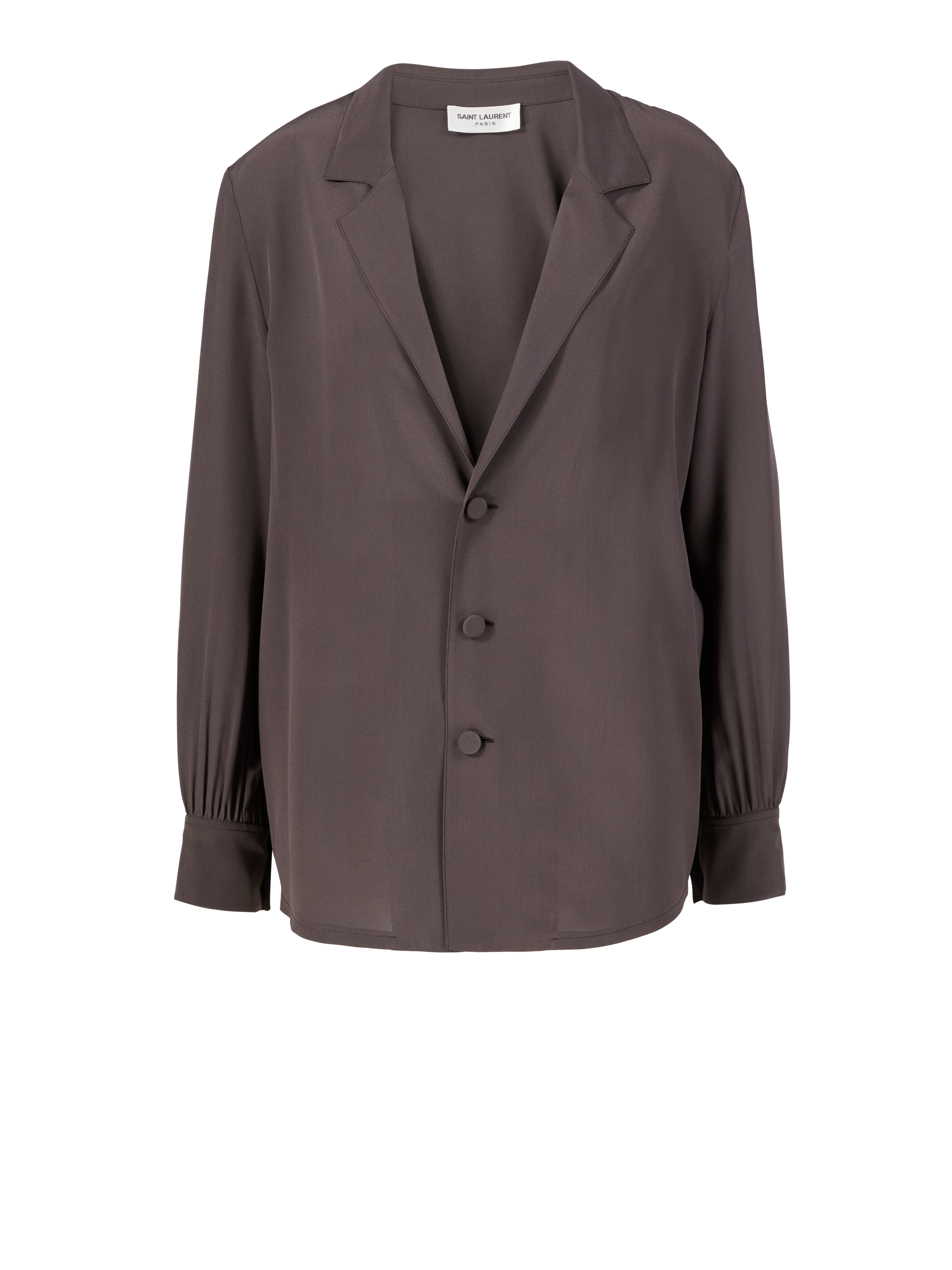 Diese Seidenbluse in Braun von Saint Laurent wurde aus hochwertiger Seide gefertigt und besticht durch das fließende Material. Die stoffbezogenen Knöpfe, die gerade Passform und die matte Optik zeichnen dieses hochwertige Modell aus.
