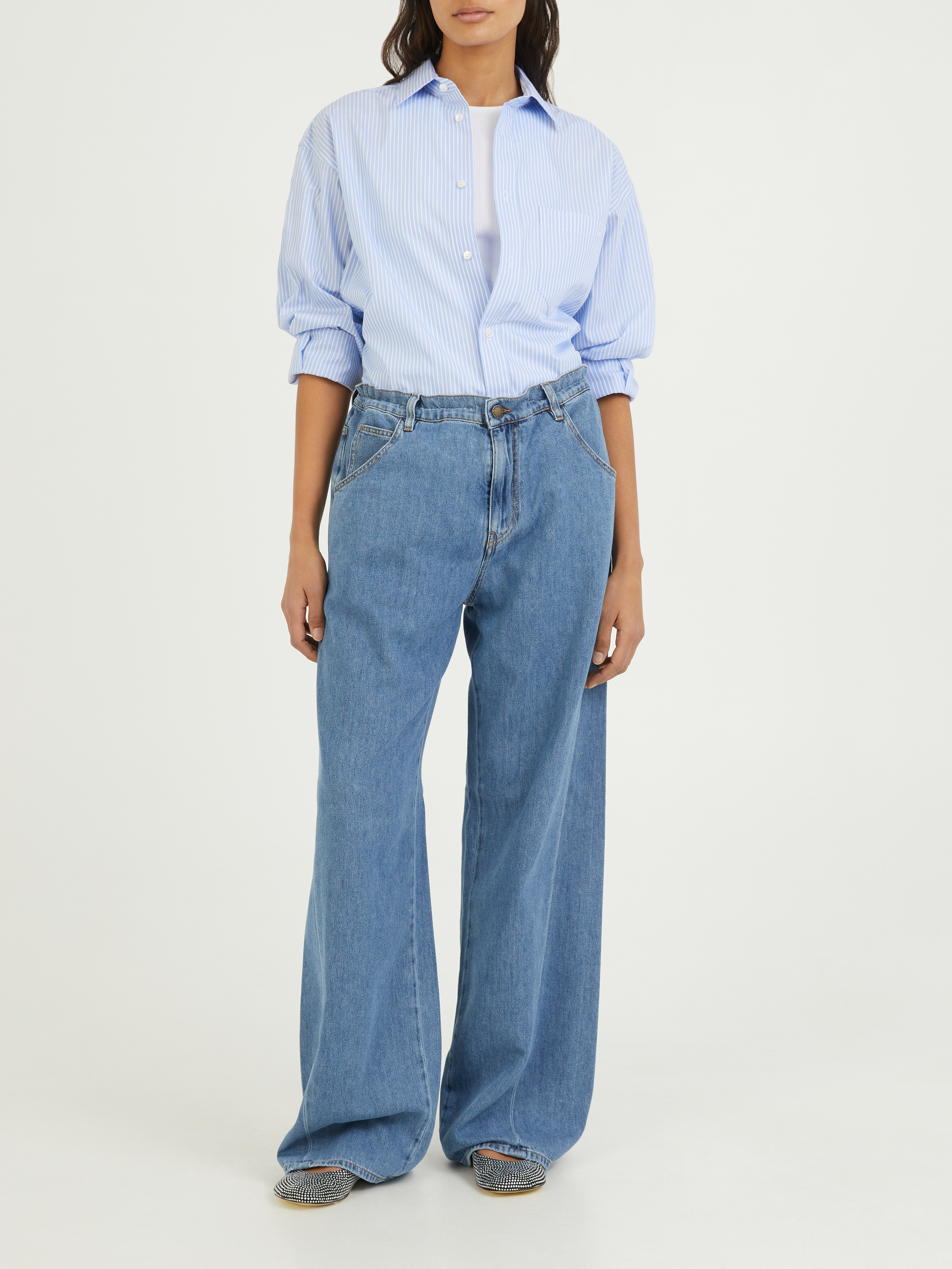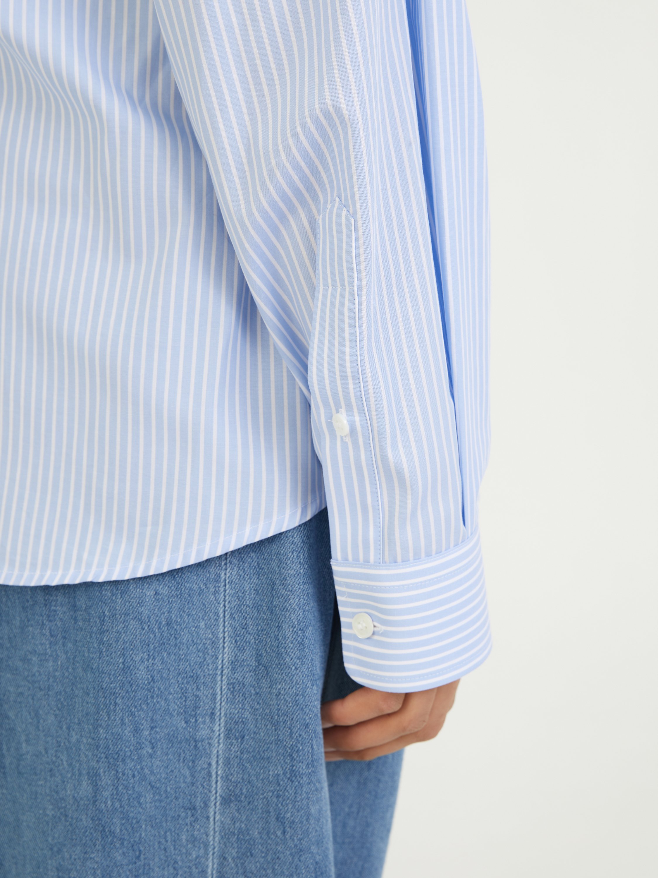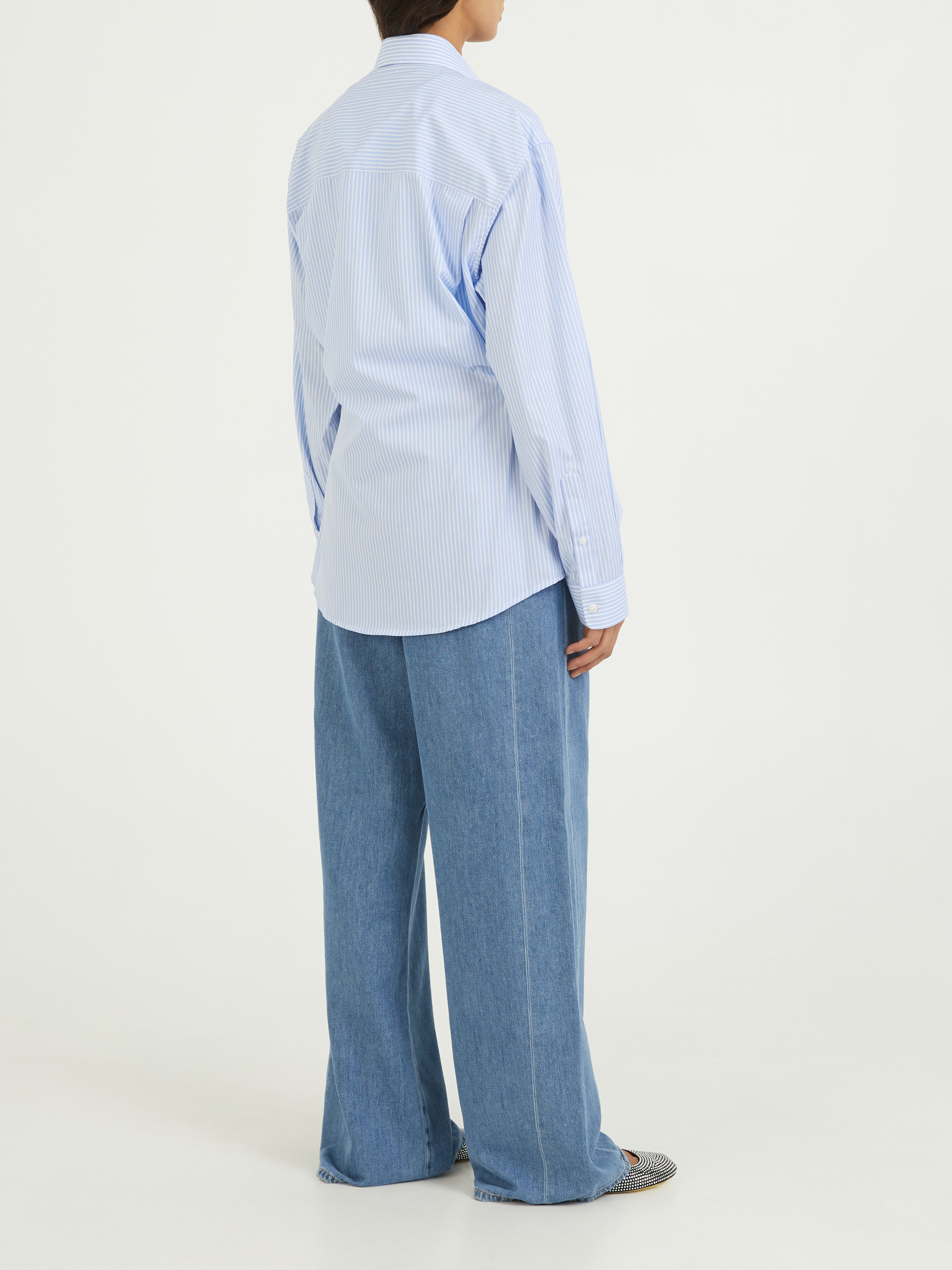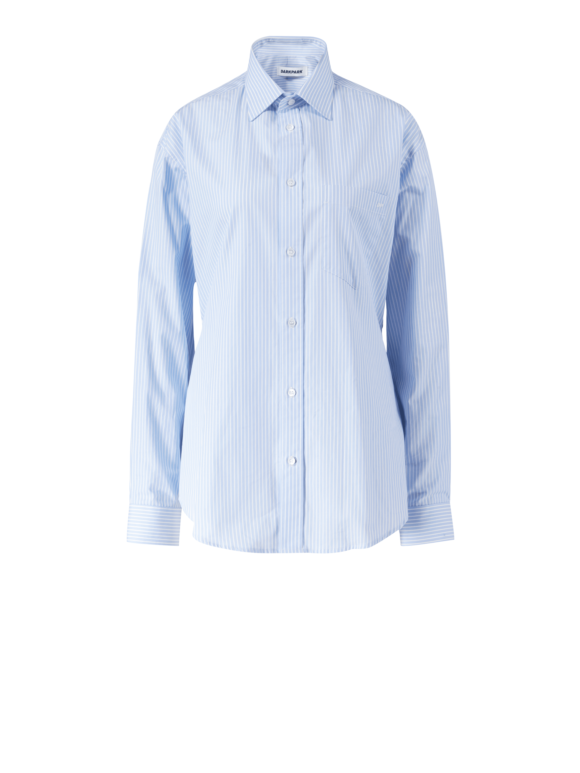 Das maßgeschneiderte Hemd 'Anne' in Hellblau von DARKPARK wurde aus hochwertiger Baumwolle gefertigt und besticht durch die übergroßen Schultern. Die langen Ärmel, die geknöpften Manschetten und die aufgesetzte Brusttasche machen dieses Modell zu einem echten Hingucker. Der klassische Button-Down-Kragen und die Brusttasche vollenden dieses Design.