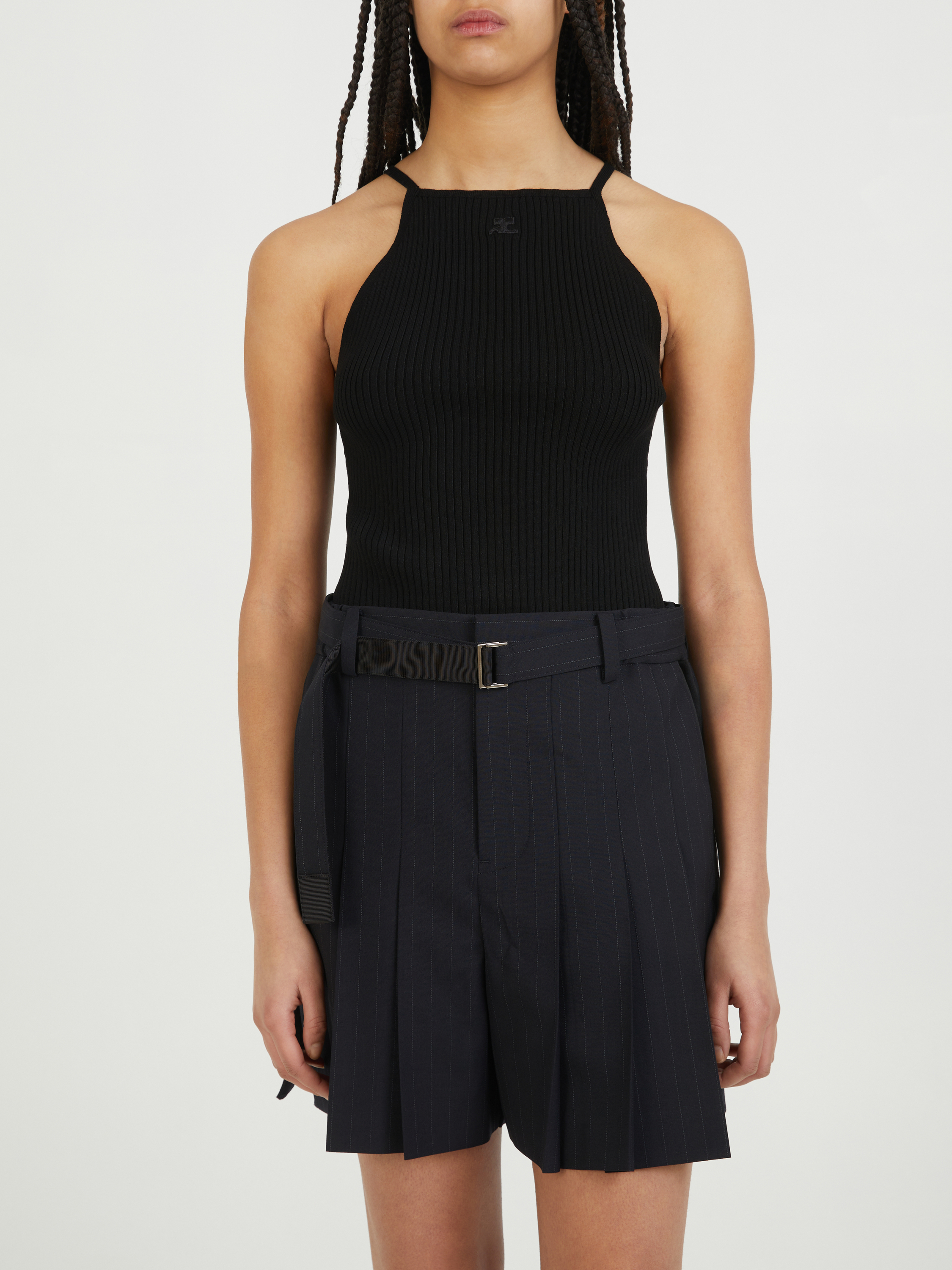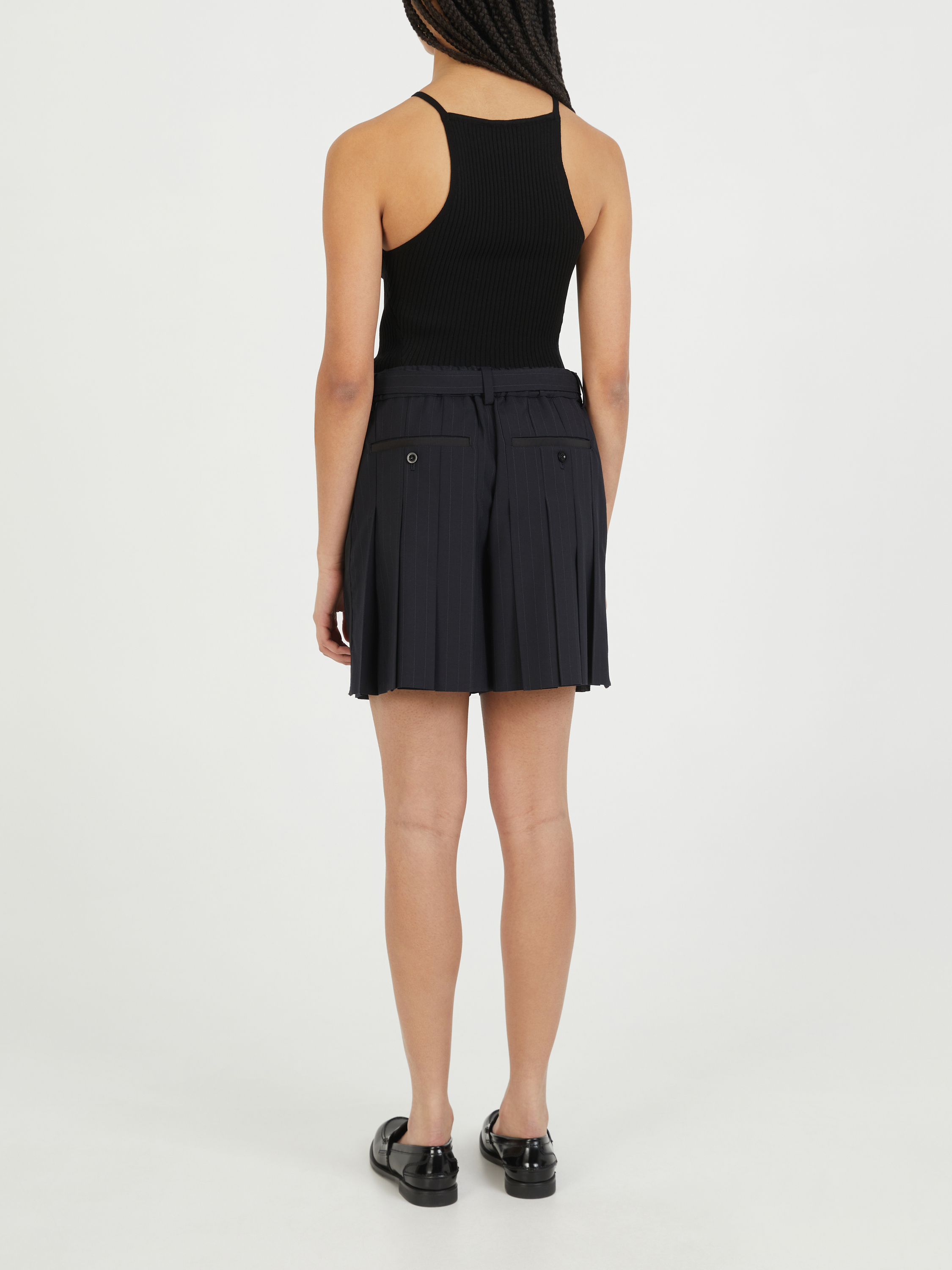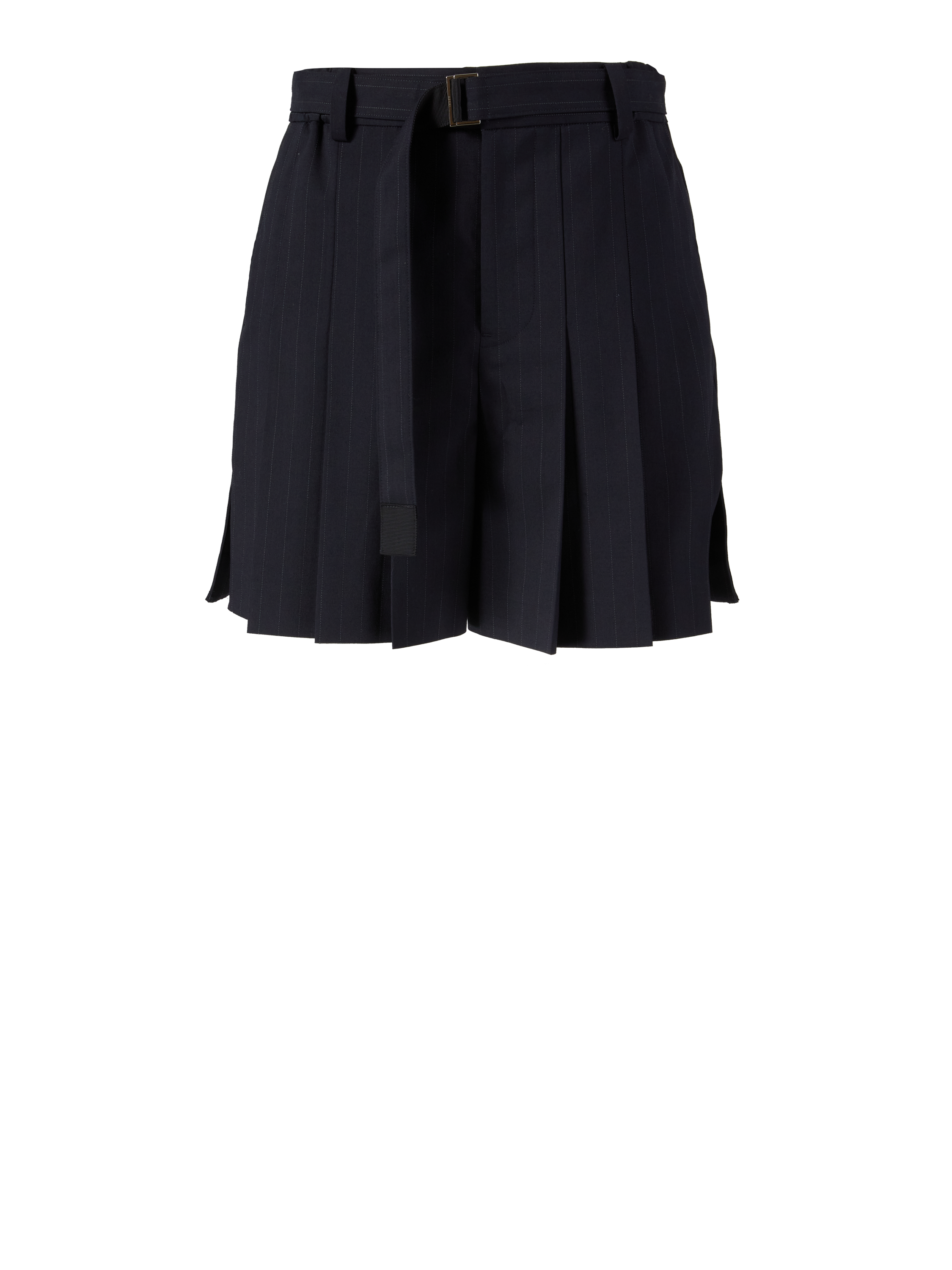 Diese Shorts in Marineblau von Sacai wurde aus hochwertigen Materialien gefertigt und besticht durch ein funktionales Design. Die seitlichen Eingriffstaschen und die Falten-Optik zeichnen dieses Modell aus. Der verstellbare Gürte, die Minilänge und die rückseitigen Paspeltaschen machen dieses besondere Design zu einem absoluten Hingucker.