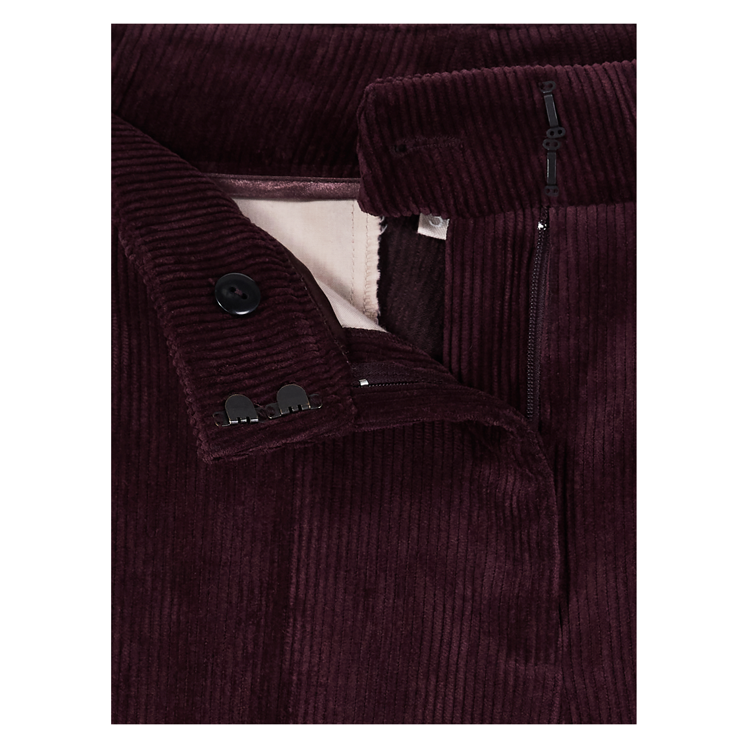 - Schließt mit Knopf, Haken und Reißverschluss