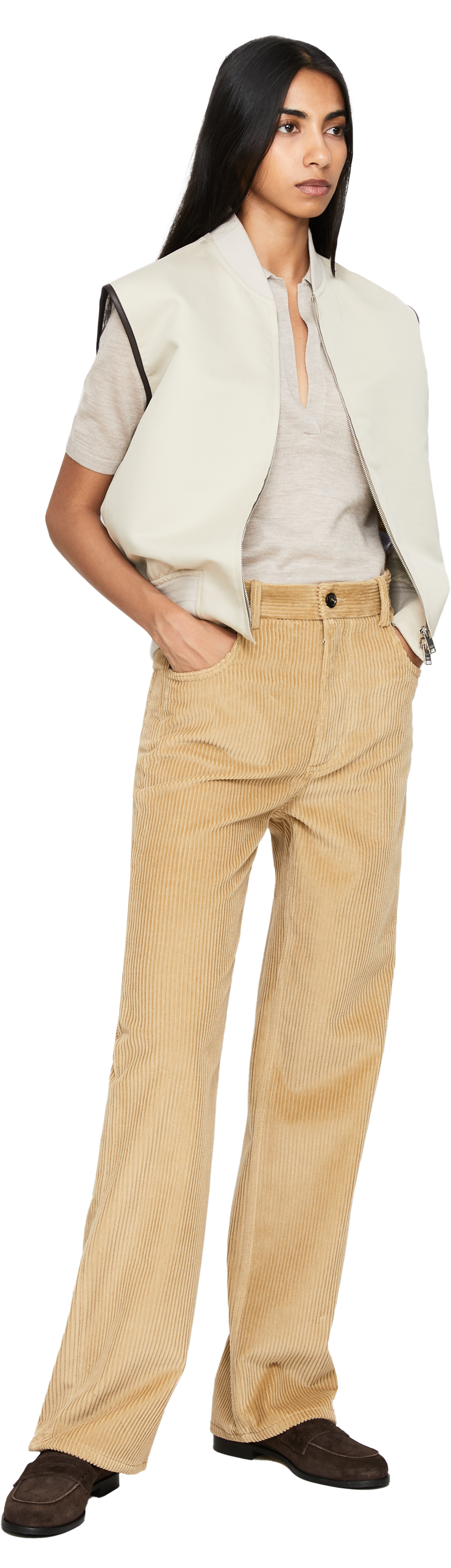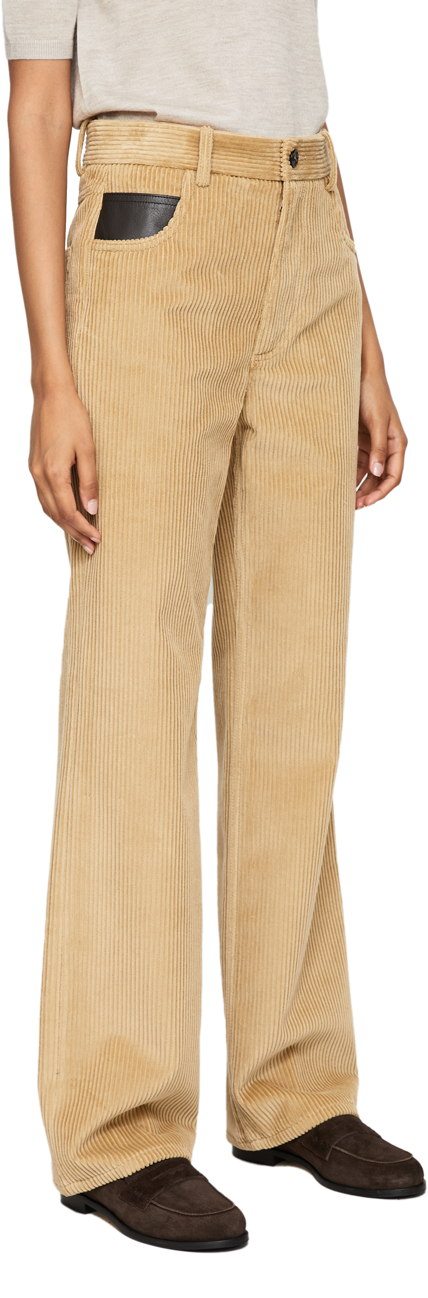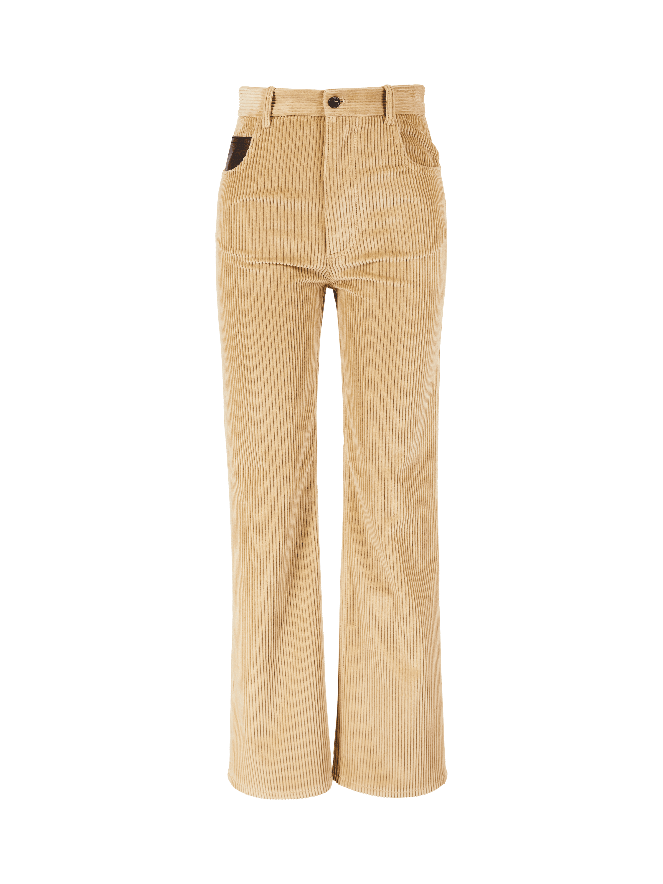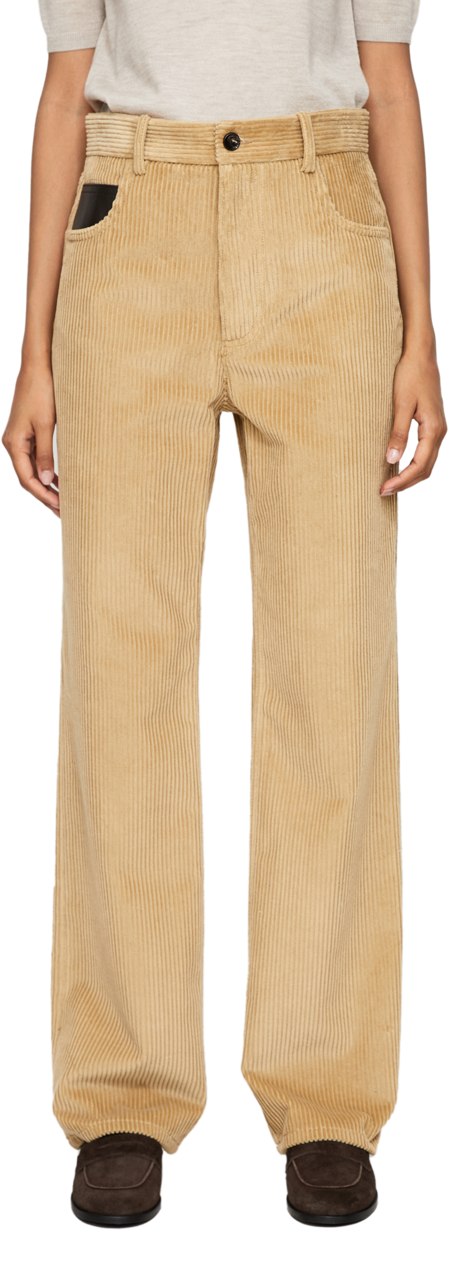 Diese Cordhose in Beige von Bottega Veneta wurde aus einem hochwertigem Baumwoll-Cord gefertigt und besticht mit einem weiten Bein. Die weiche Haptik und die kontrastierende Ledertasche vollenden dieses Design.