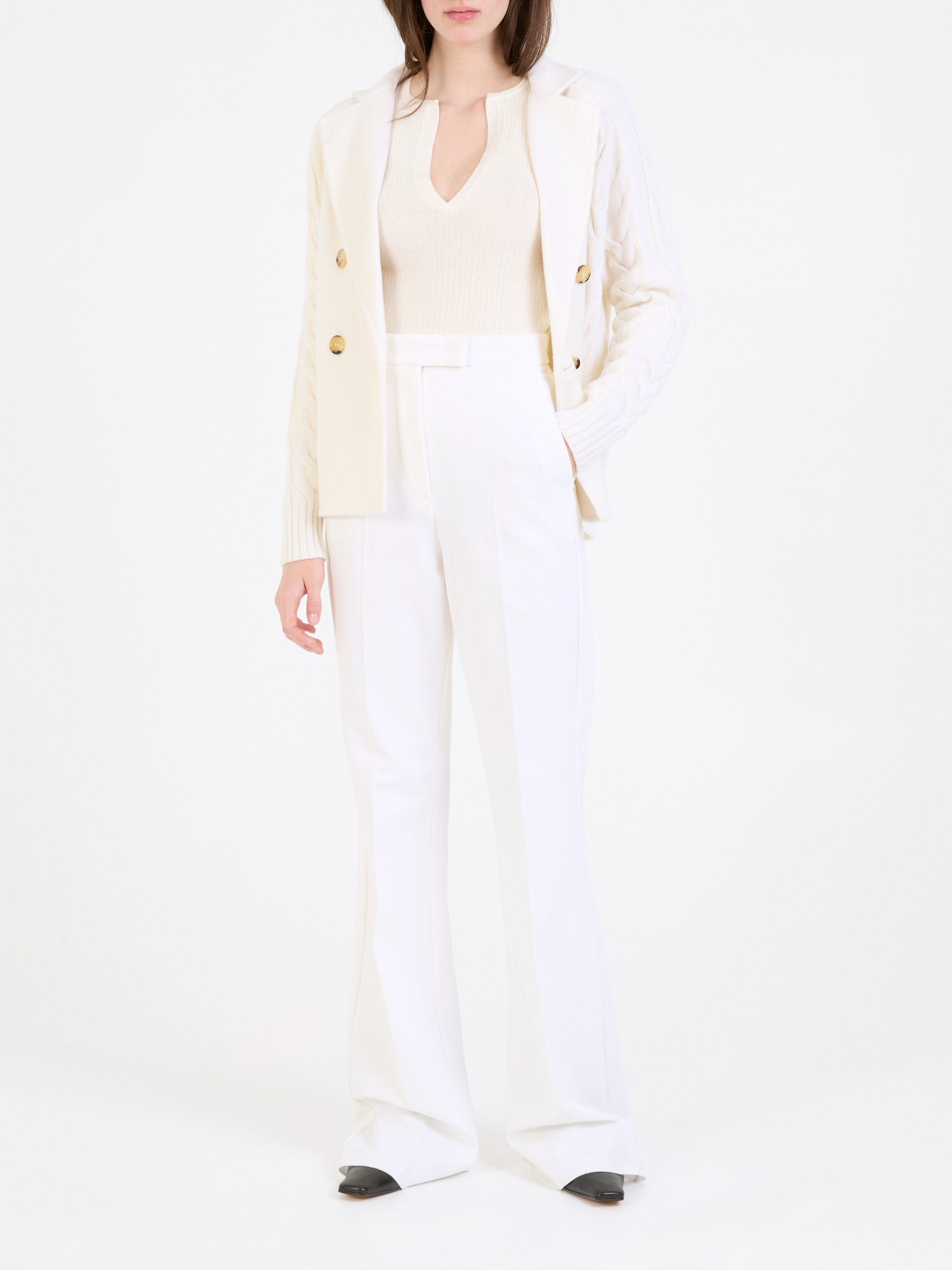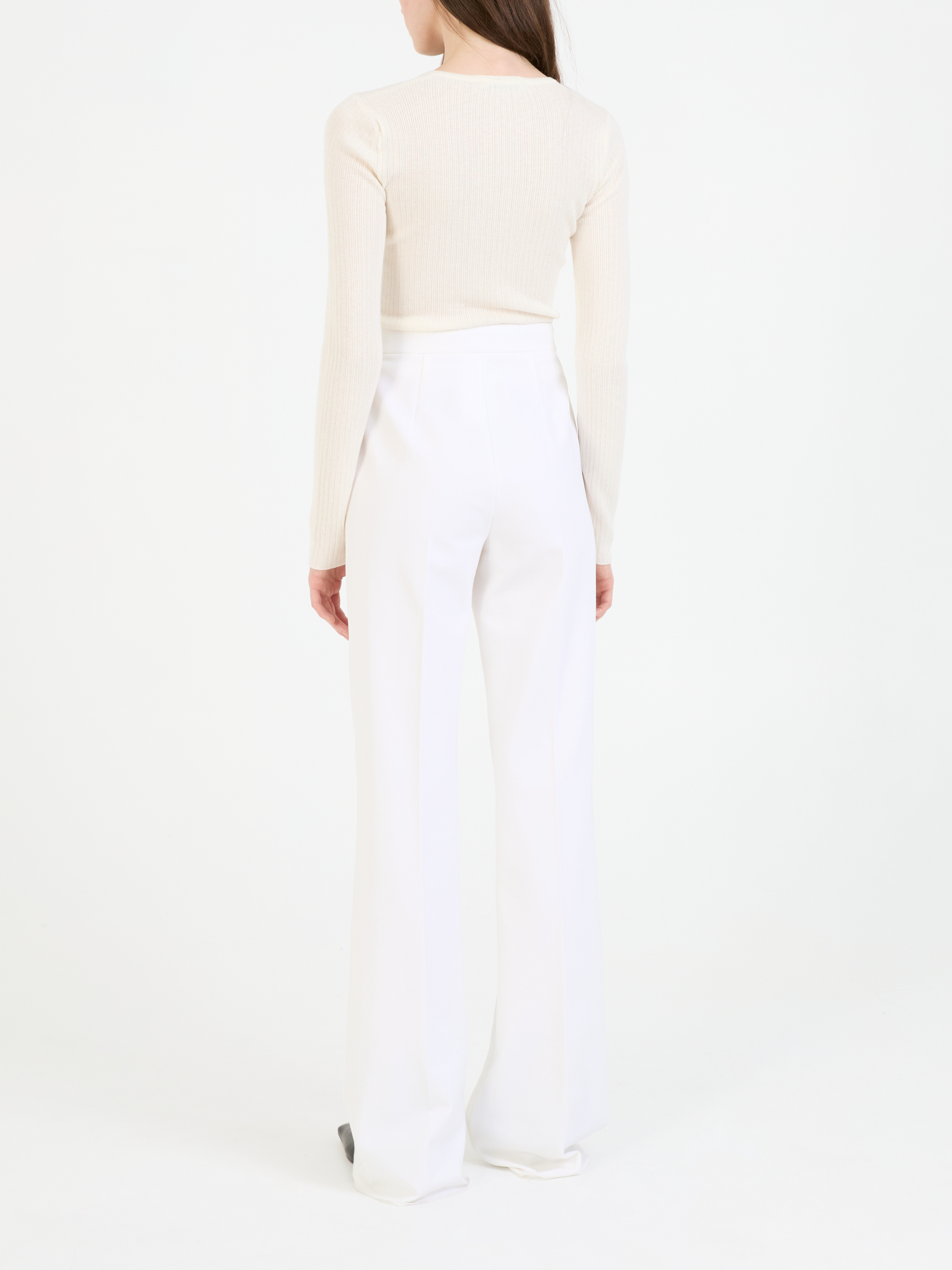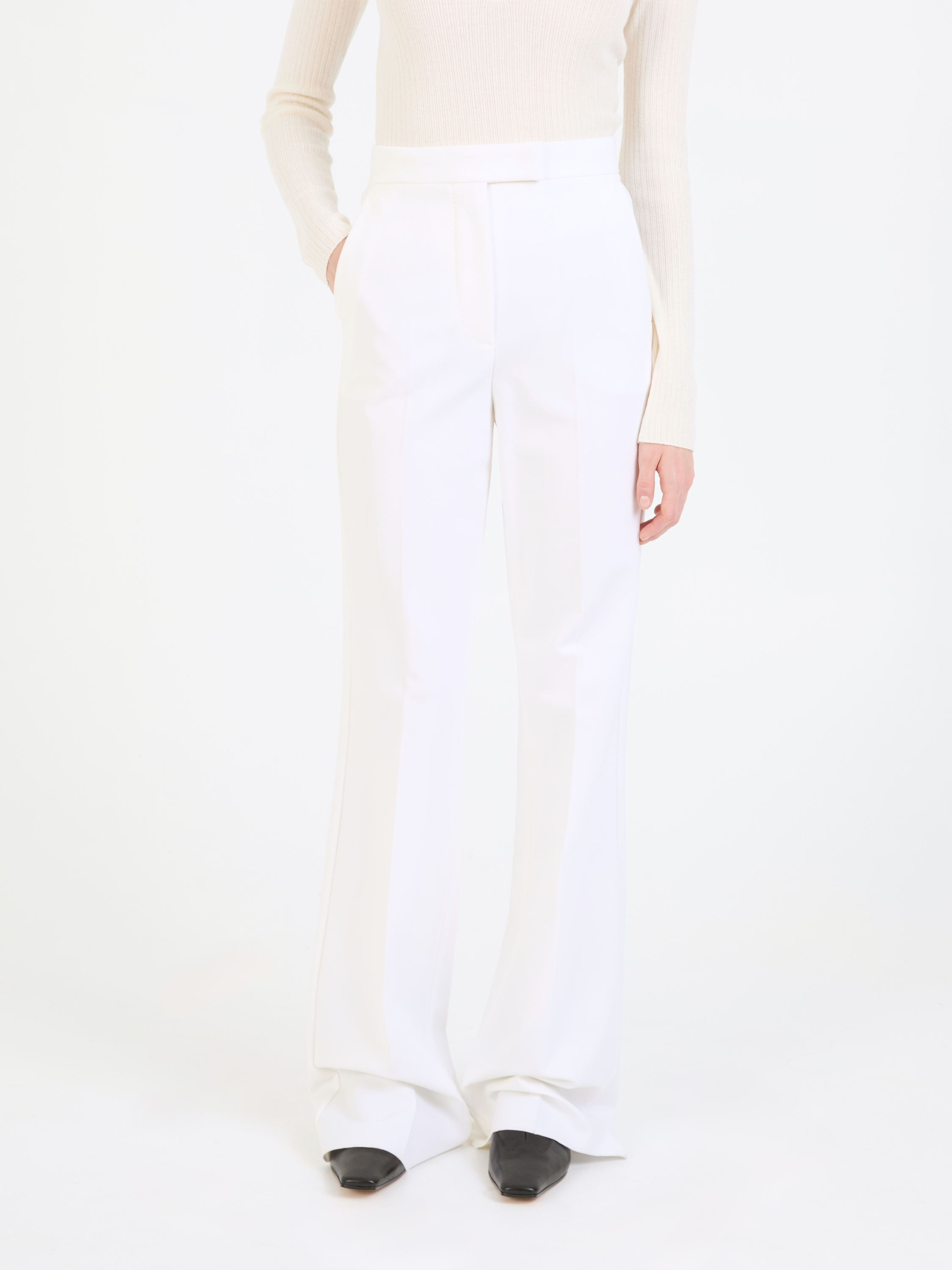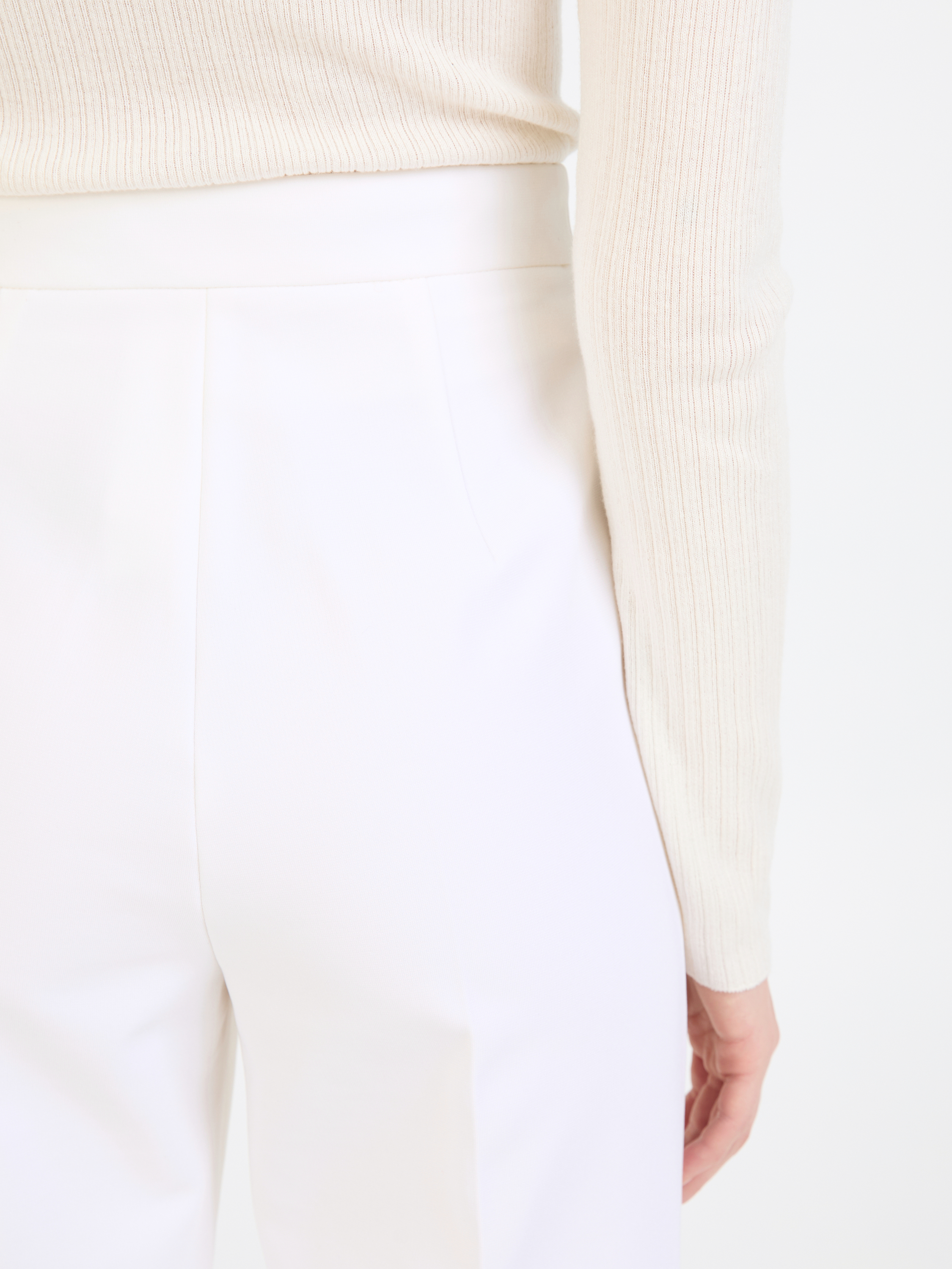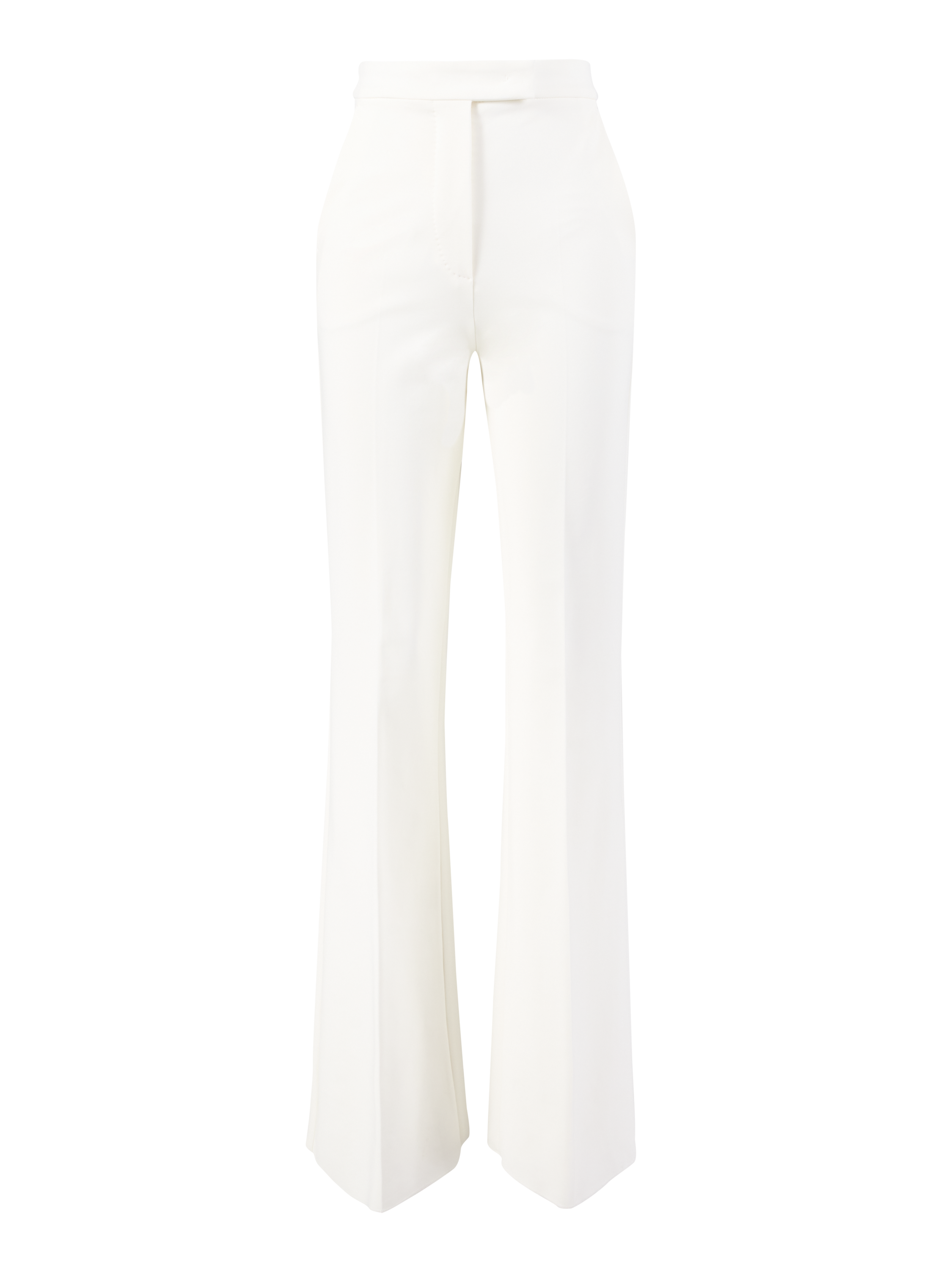 Die Hose 'Norcia' in Weiß von Max Mara wurde aus weichem, kompaktem Viskose-Jersey gefertigt und besticht durch ein gerades Bein. Abgerundet wird das Design durch leicht erhöhte Taille. Die Bügelfalte am Bein und schräg gesetzte Eingrifftasche zeichnen dieses Modell aus.