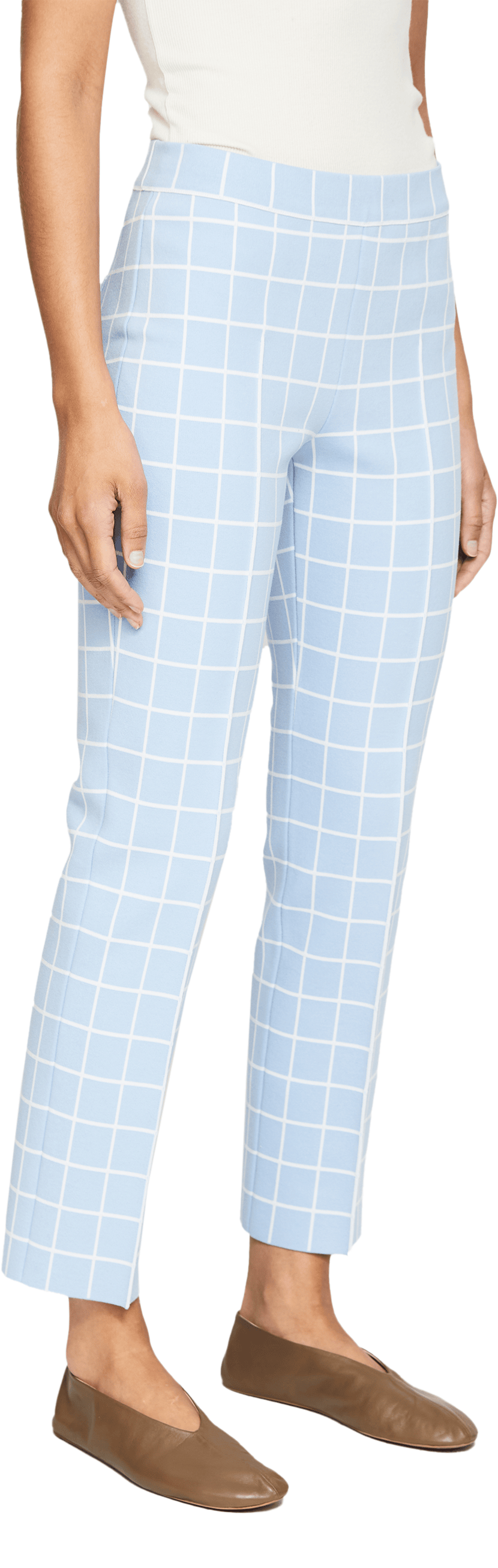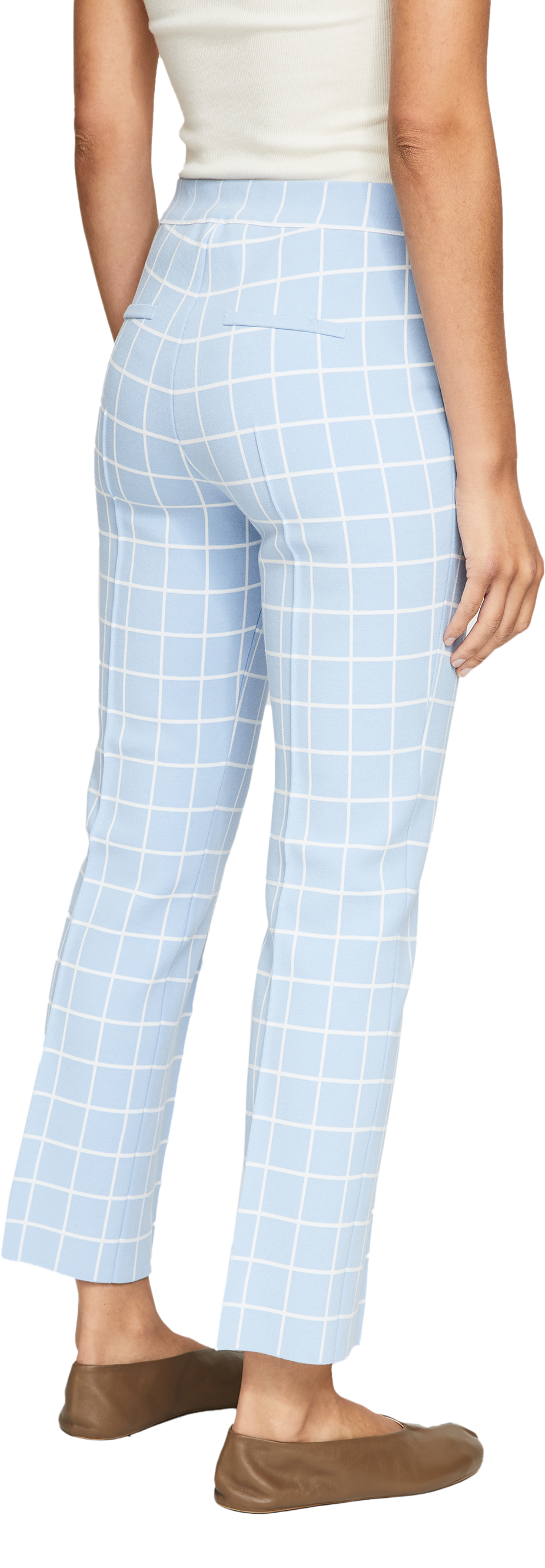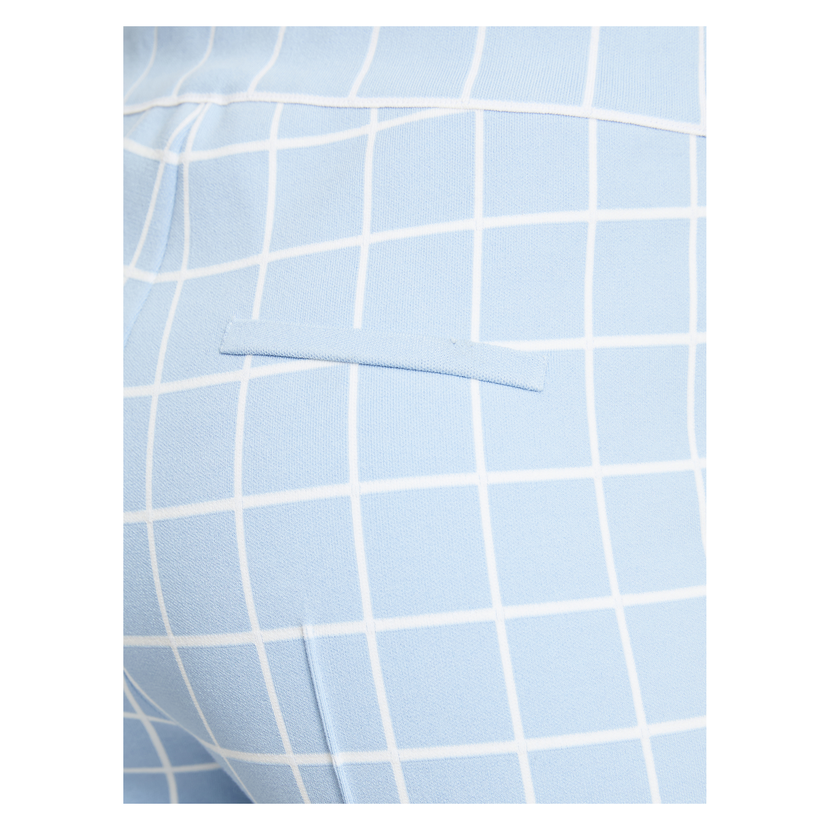 Die Hose 'Windowpane' in Hellblau von High Sport wurde aus einer hochwertigen Baumwollmischung gefertigt und besticht durch ihr elastisches Design, das sich perfekt der Silhouette anpasst. Das karierte Muster erhält durch die Biesenverzierungen auf Vorder- und Rückseite eine besonders raffinierte Note.