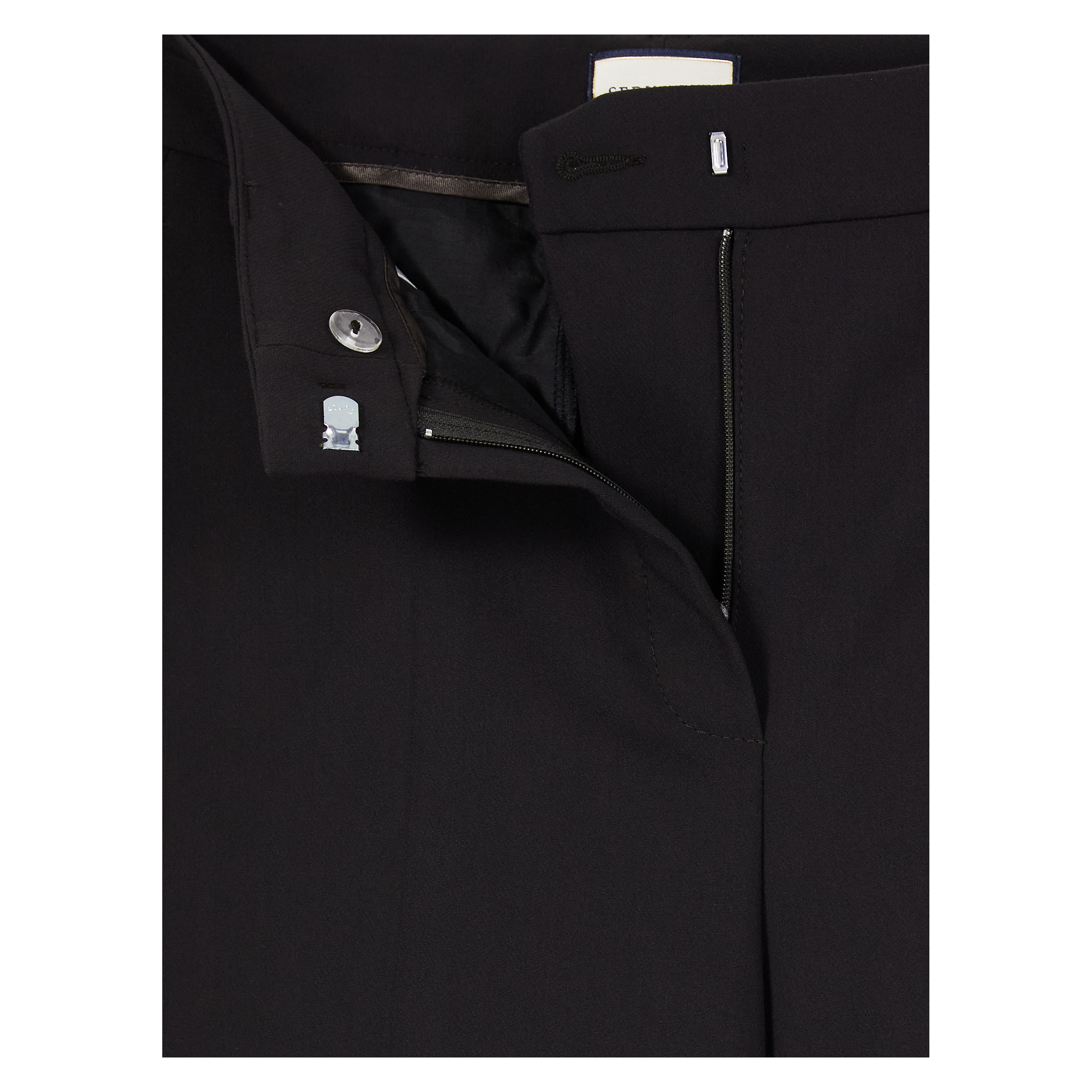 - Schließt mit Knopf, Haken und Reißverschluss