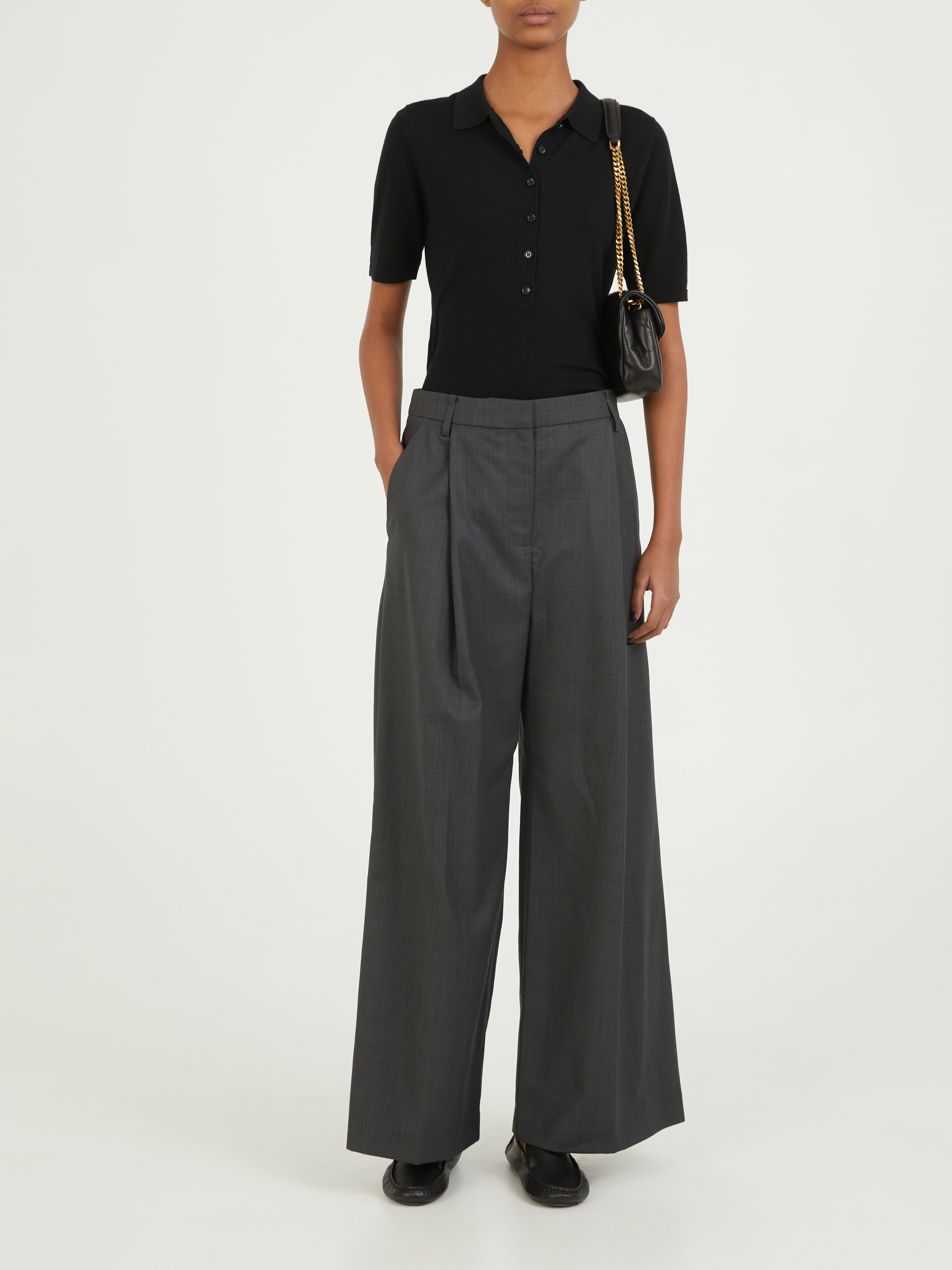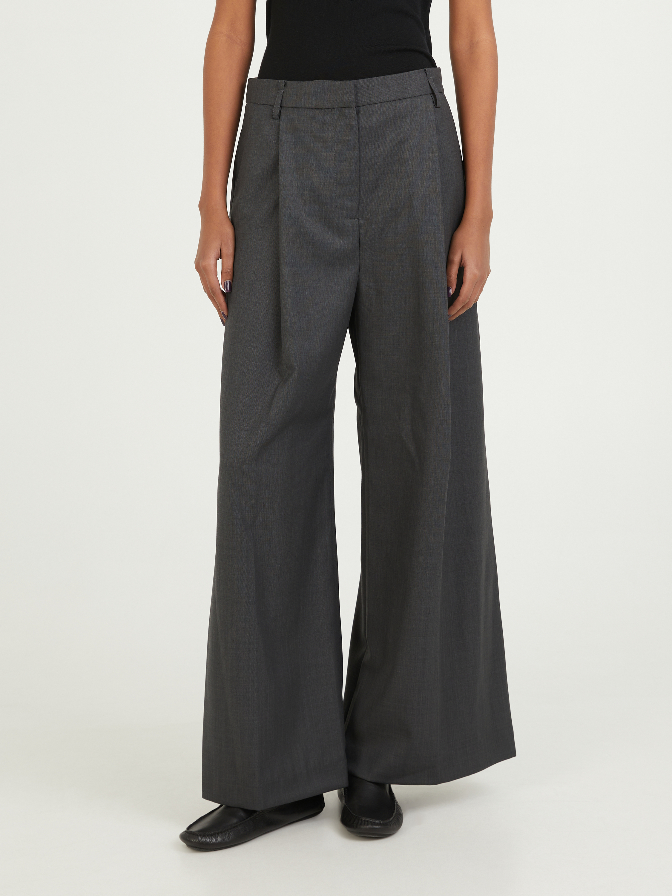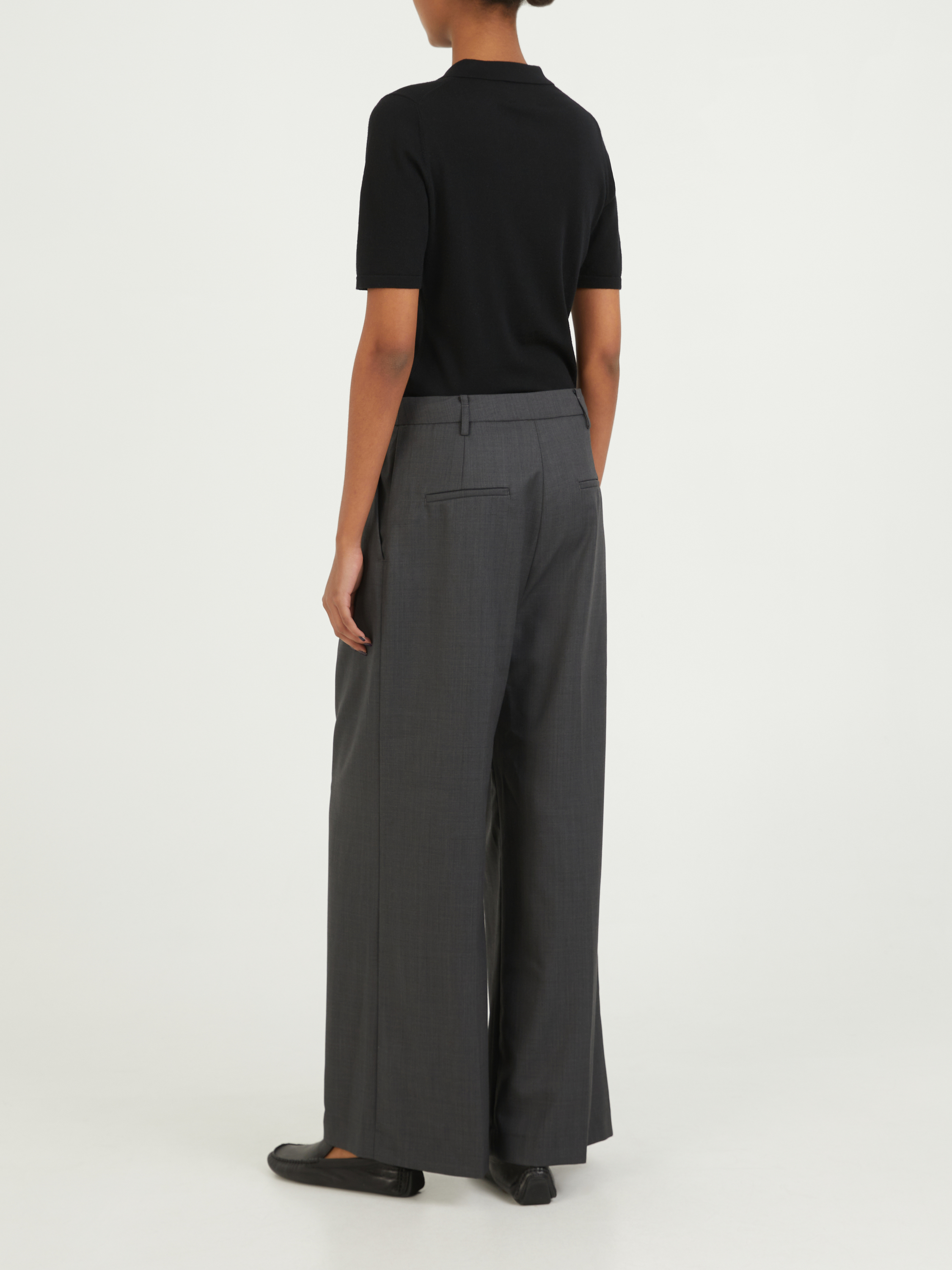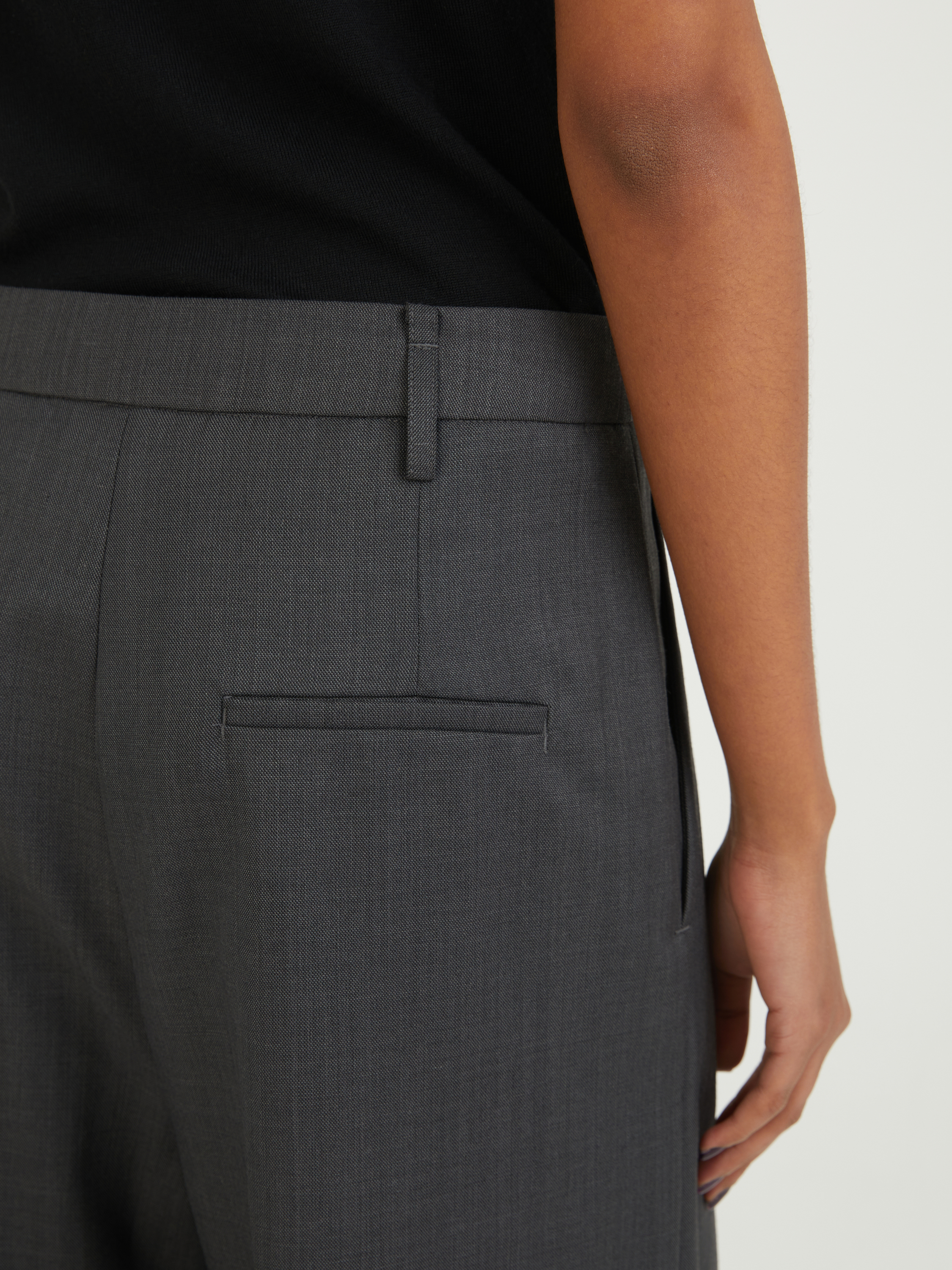 Die Hose 'Atlanta' in Anthrazit von CAMILLA AND MARC wurde aus einem Wollgemisch gefertigt und besticht durch eine Kreuzschraffur. Die hohe Leibhöhe, die seitlichen Eingrifftaschen und die permanenten Bügelfalten sorgen für einen optimalen Look für den Alltag.