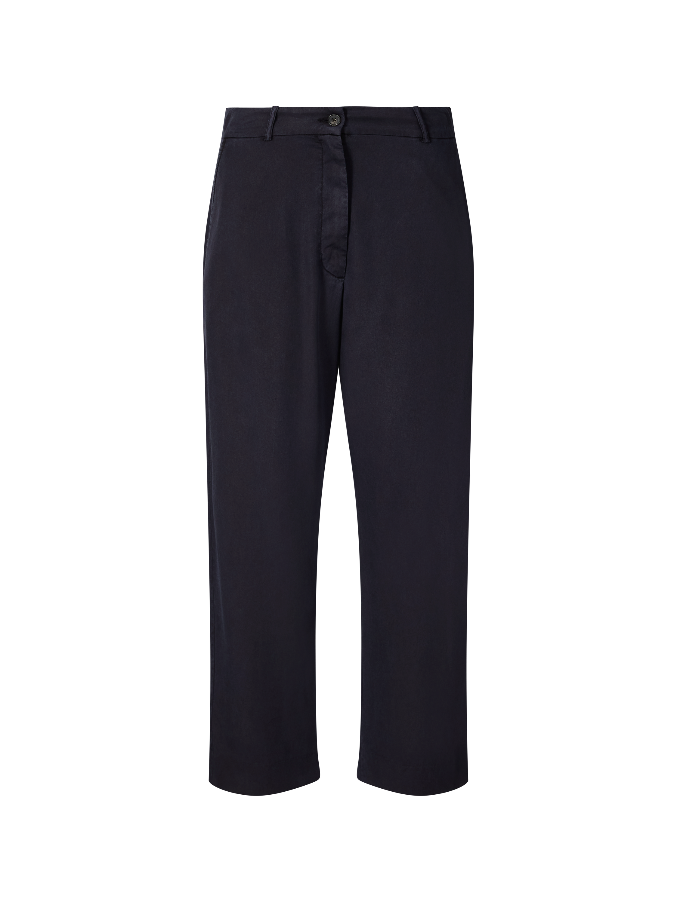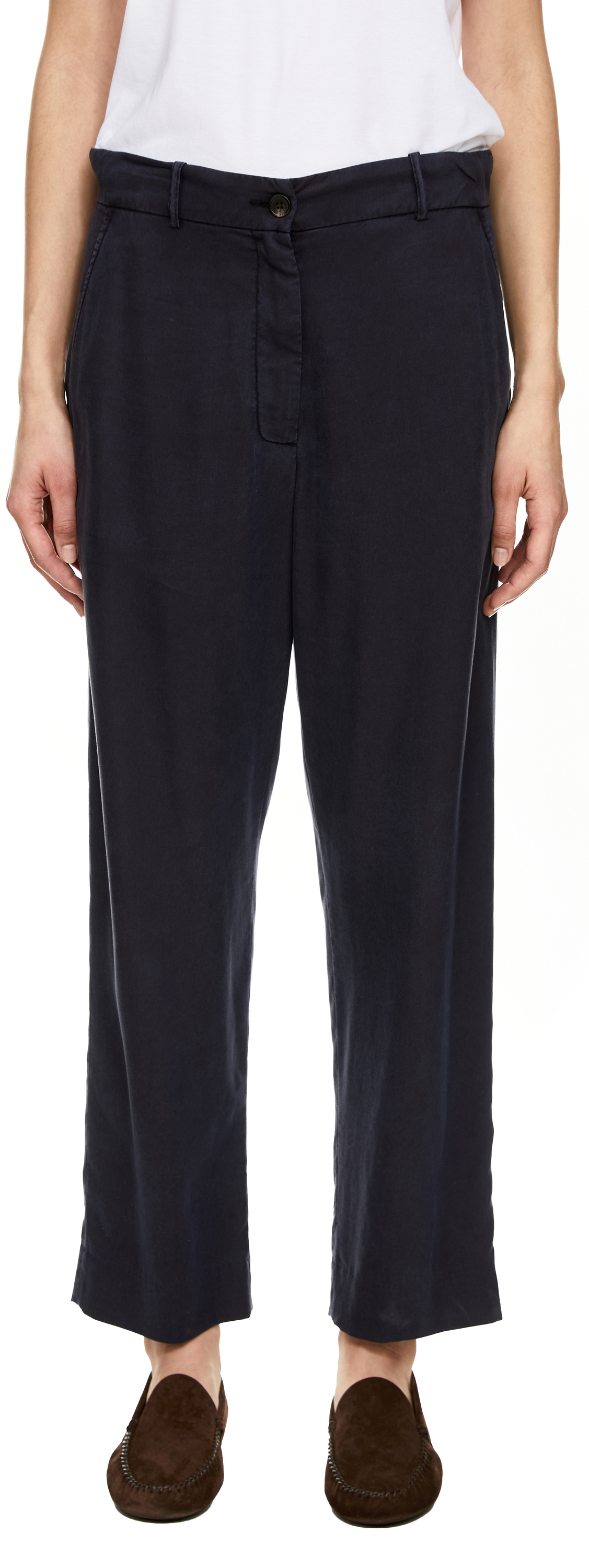 Die Hose 'Karsten' in Marineblau von The Row wurde aus Lyocell gefertigt und besticht durch das leicht verkürzte, gerade Bein. Die mittlere Leibhöhe, die seitlichen Eingrifftaschen sowie die Gesäßtaschen verleihen dem Modell eine zeitlose Silhouette.